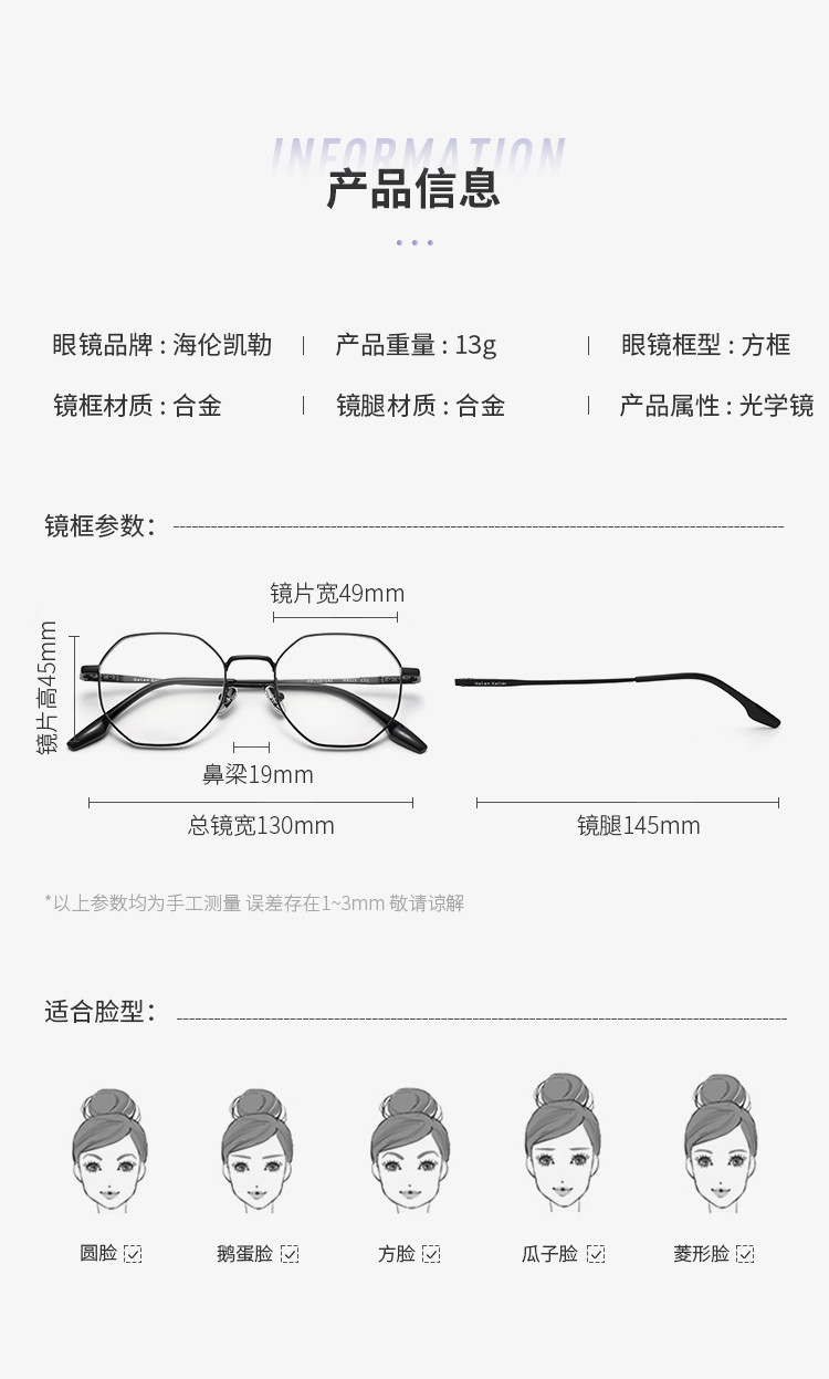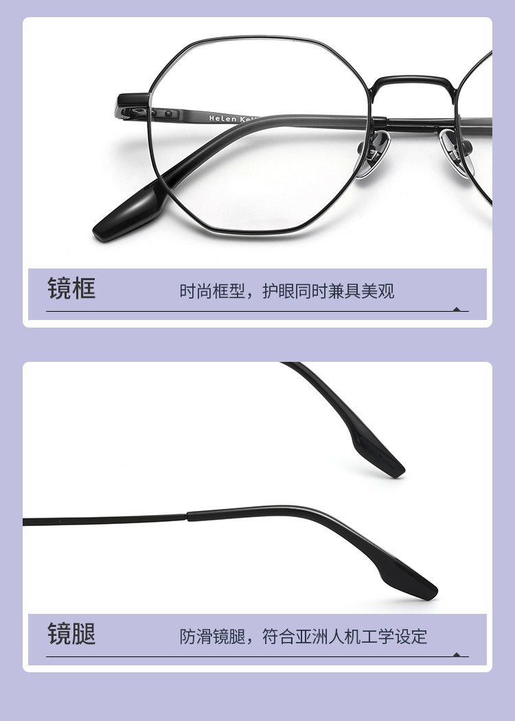 商品名称:海伦凯勒近视眼镜女合金高度素颜光学眼镜框男 068891