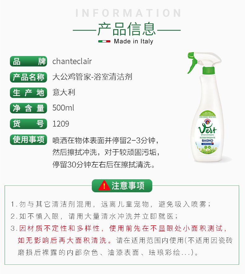 商品名称:大公鸡管家 浴室清洁剂500ml*2瓶