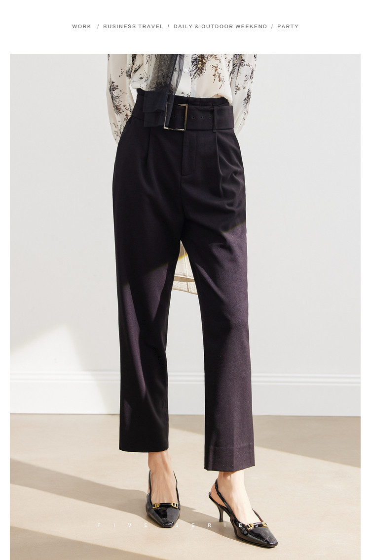商品名称:简约职业通勤黑色休闲裤女百搭休闲显瘦职业高腰铅笔裤女 330179