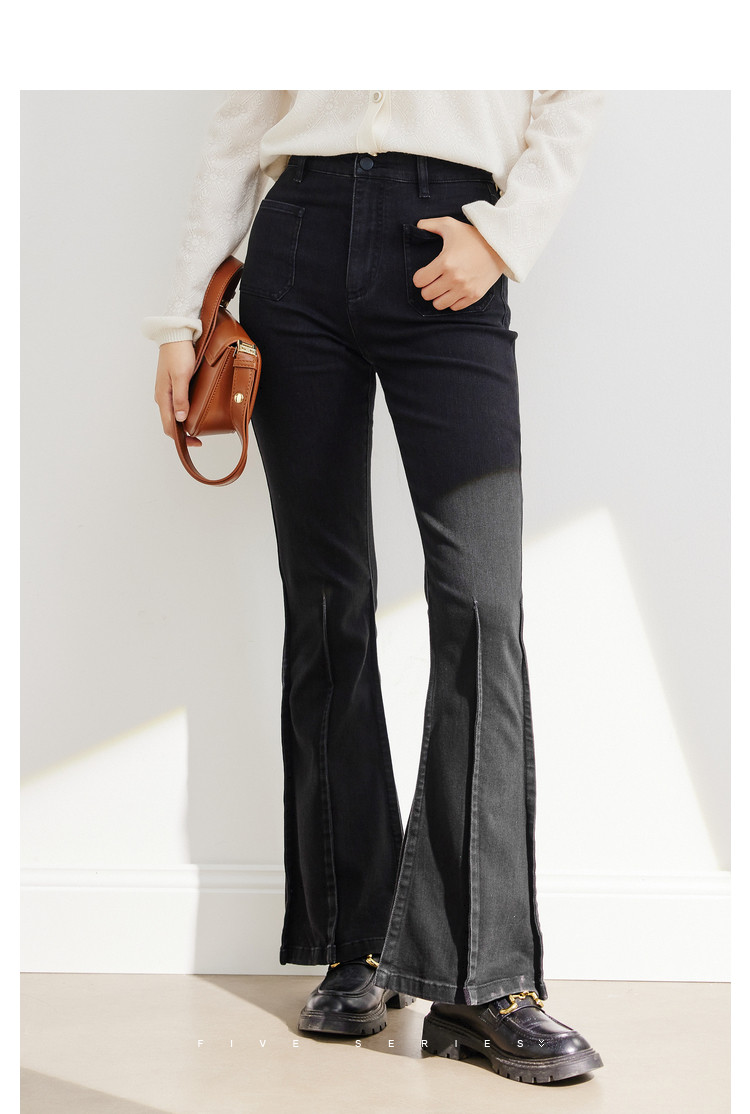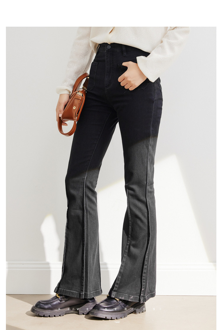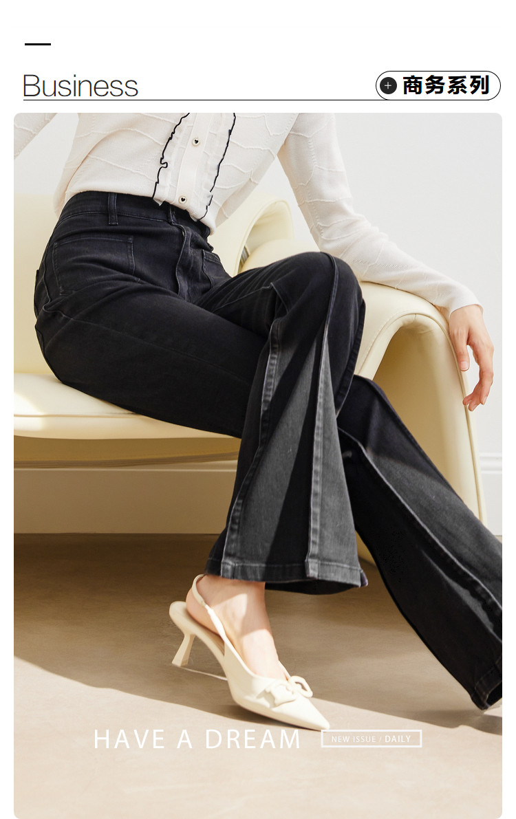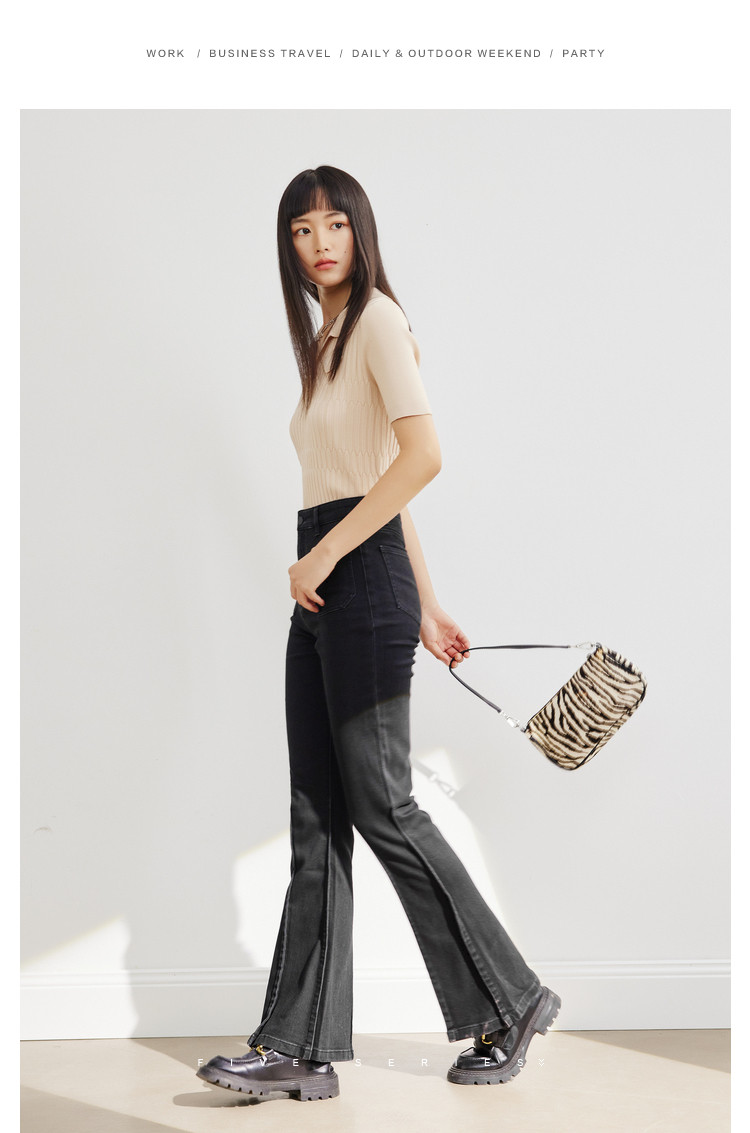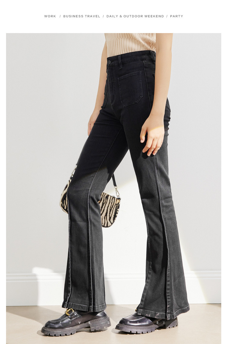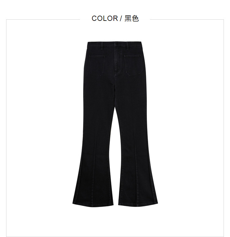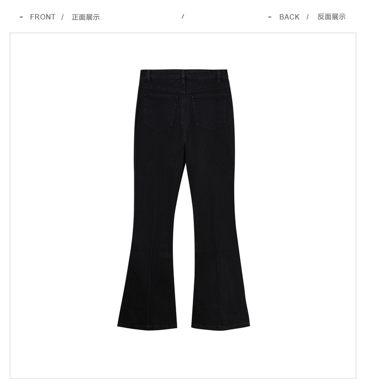 商品名称:黑色牛仔喇叭裤女春秋时尚高腰显瘦开叉牛仔裤显瘦百搭长裤女 536579