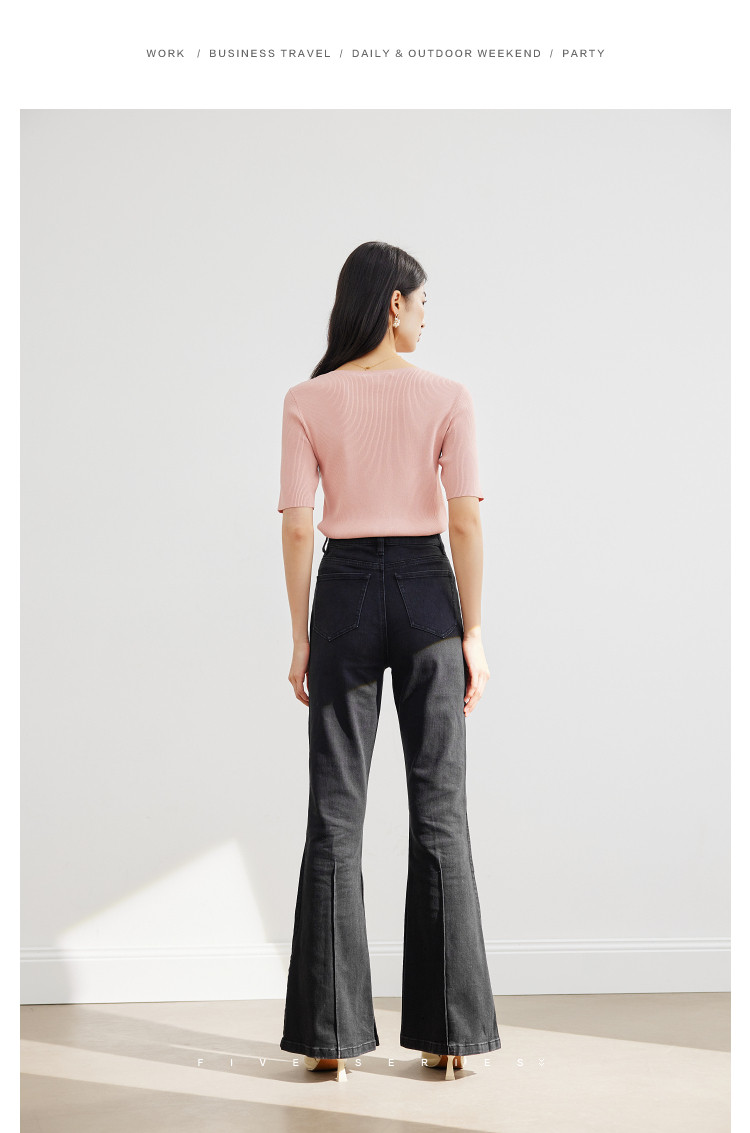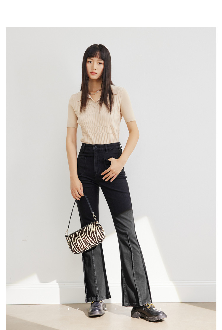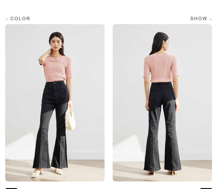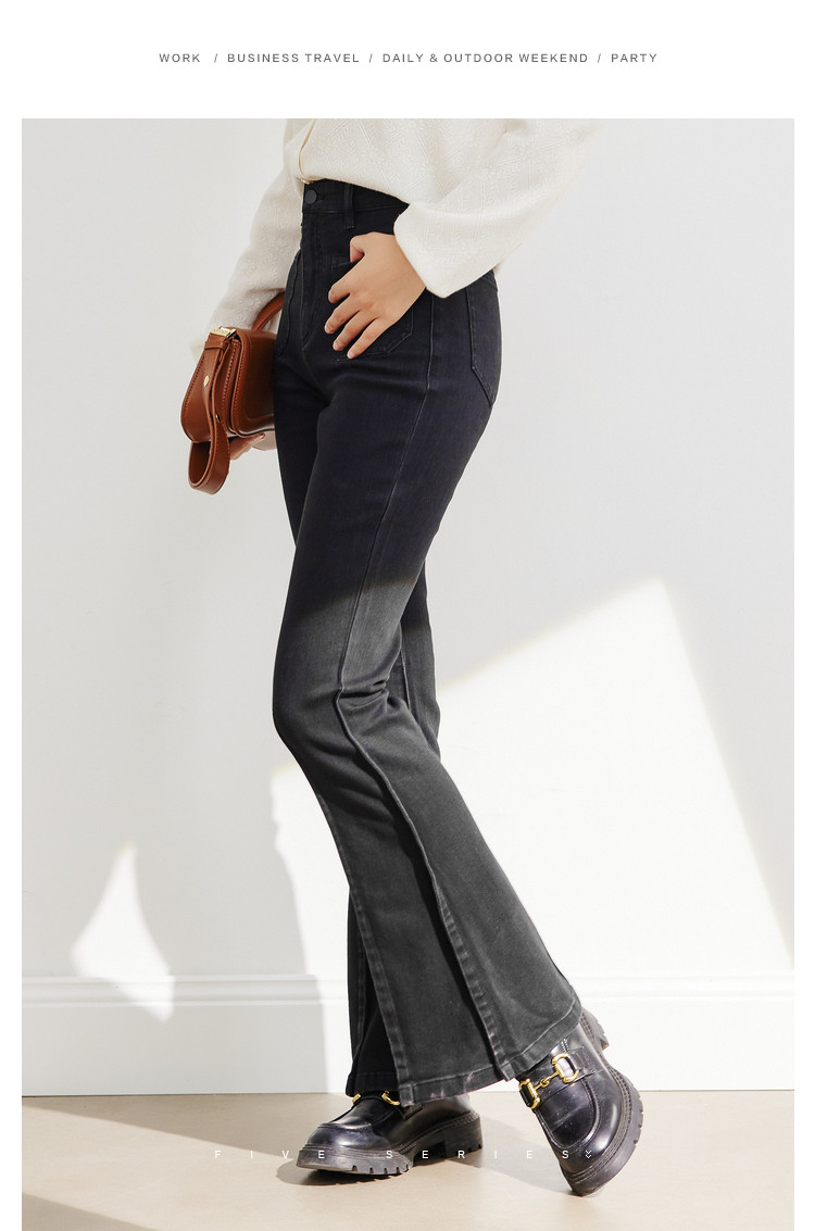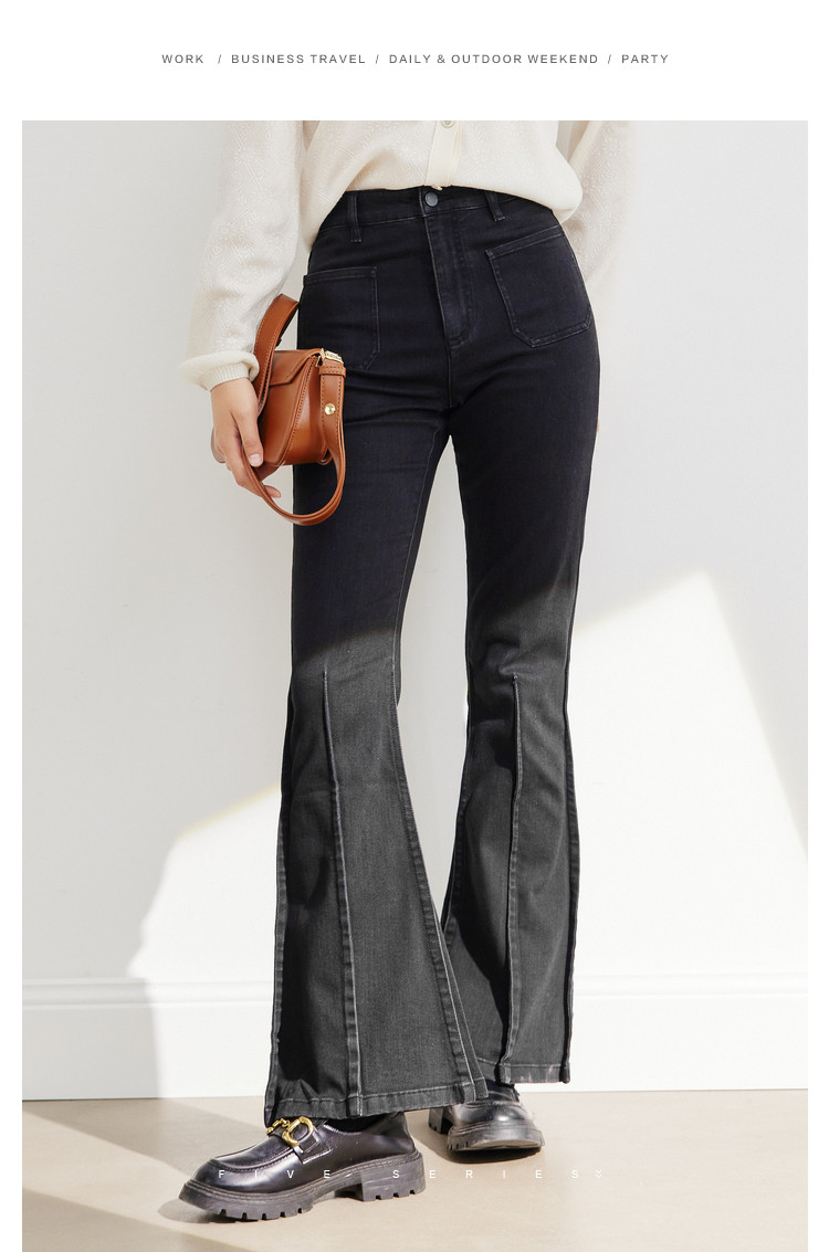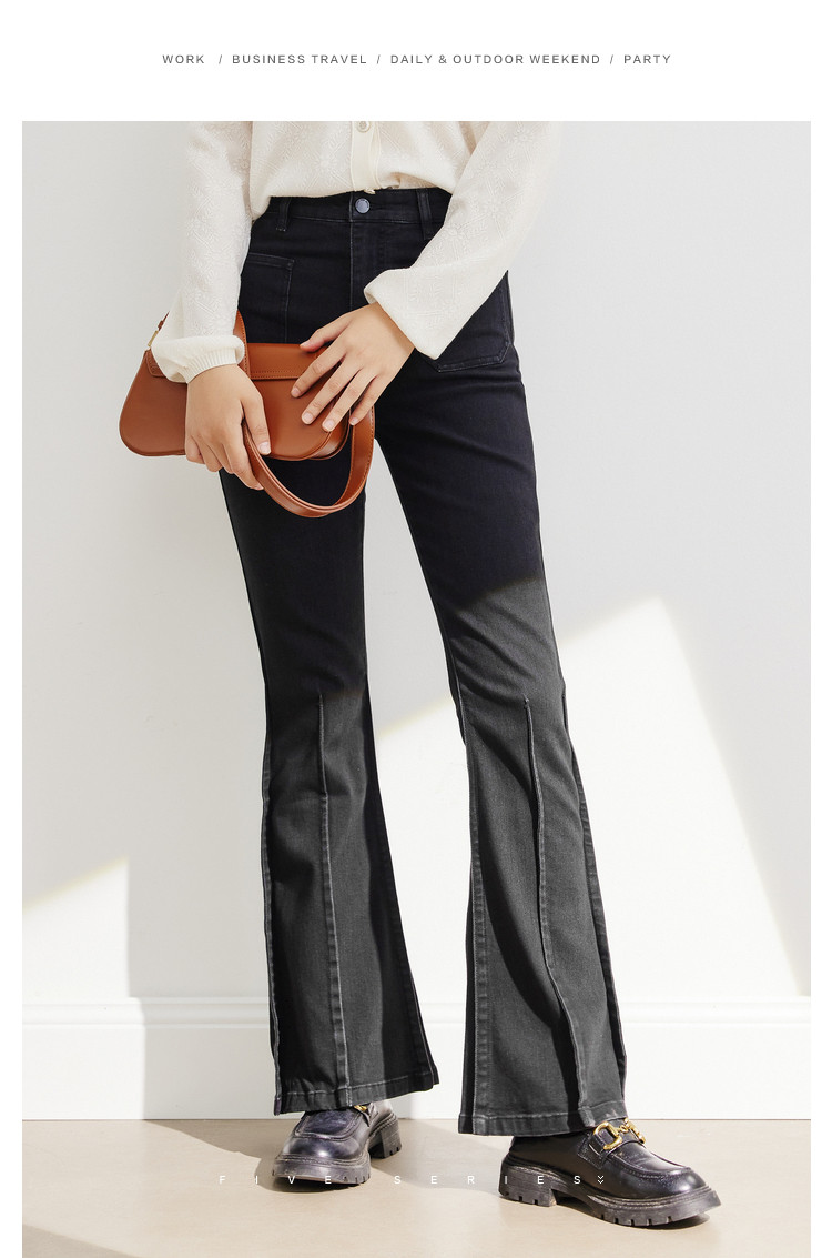 商品名称:黑色牛仔喇叭裤女春秋时尚高腰显瘦开叉牛仔裤显瘦百搭长裤女 536579