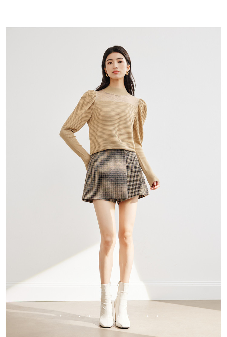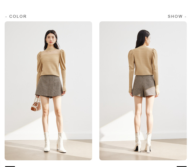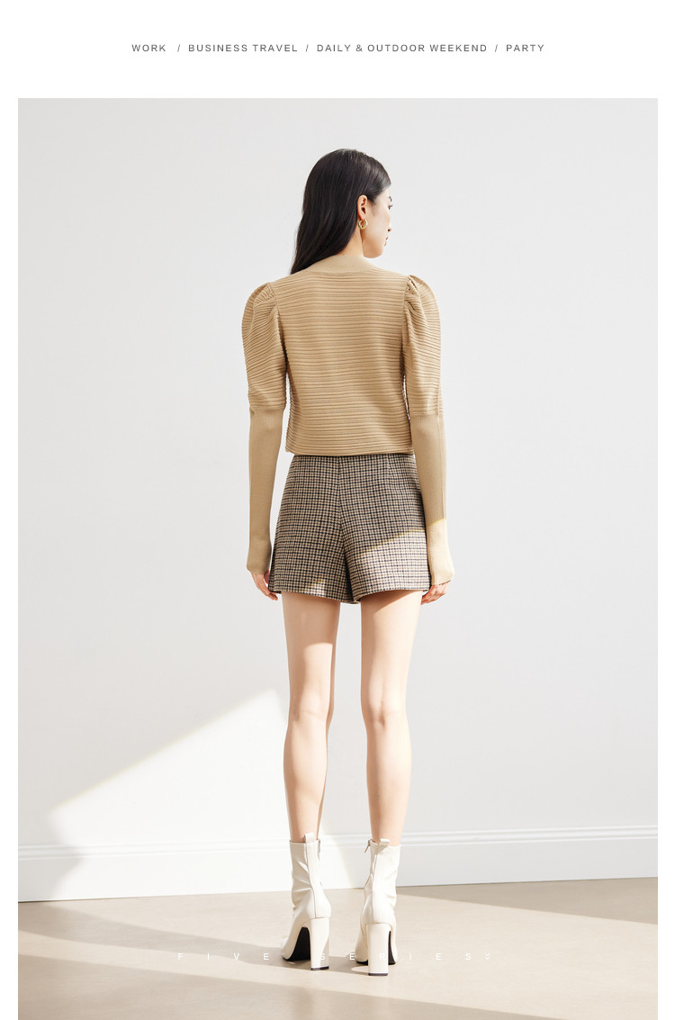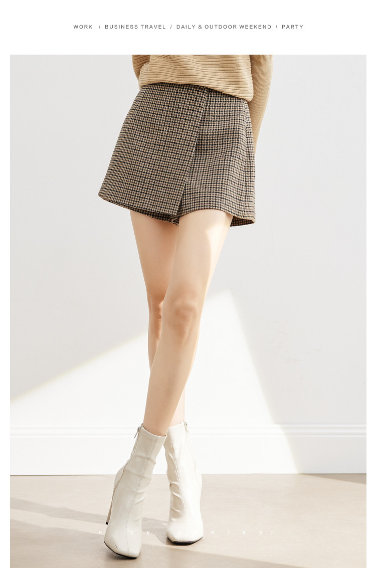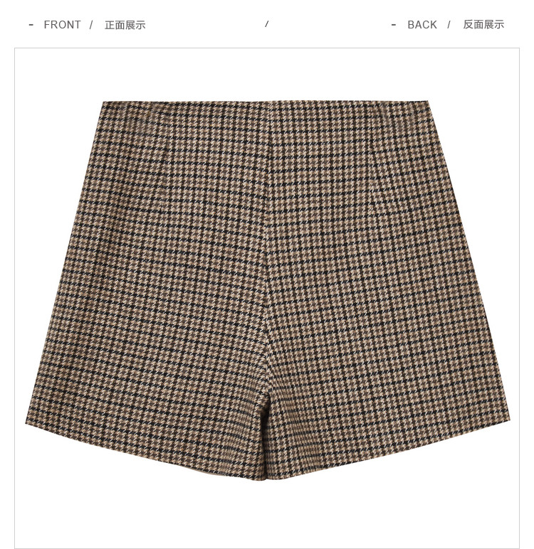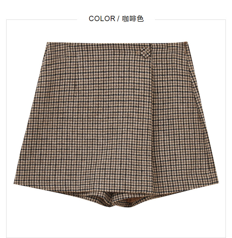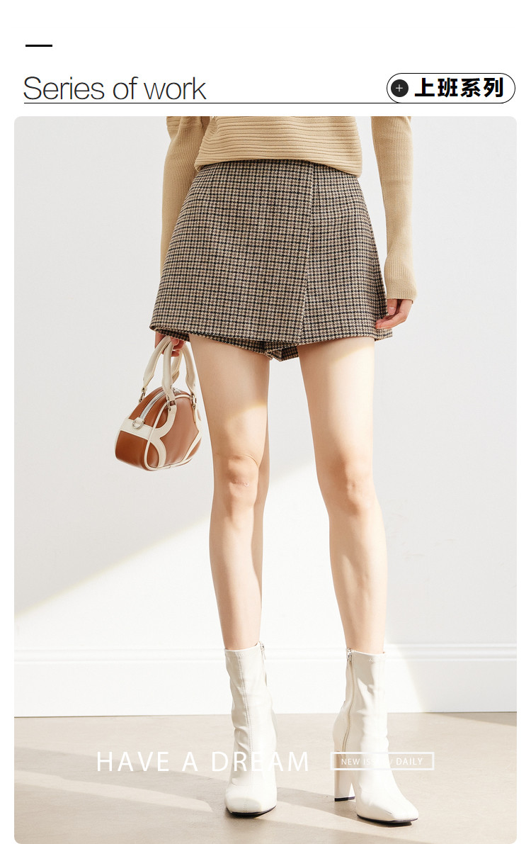 商品名称:千鸟格毛呢裙裤女春秋小个子不规则设计感复古洋气百搭短裤女 140547