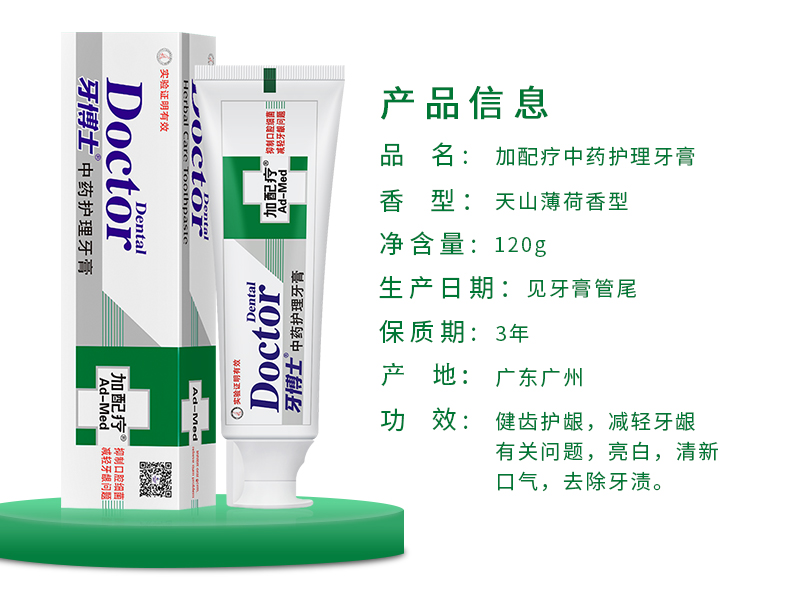 商品名称:牙博士新中药牙膏 125g*2+牙刷*2+牙线棒*1