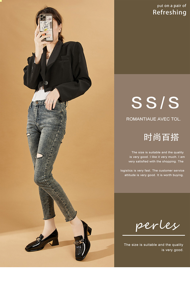 【显瘦粗跟】夏季单鞋高跟鞋女乐福鞋日常通勤鞋JK制服鞋厚底女鞋 006743