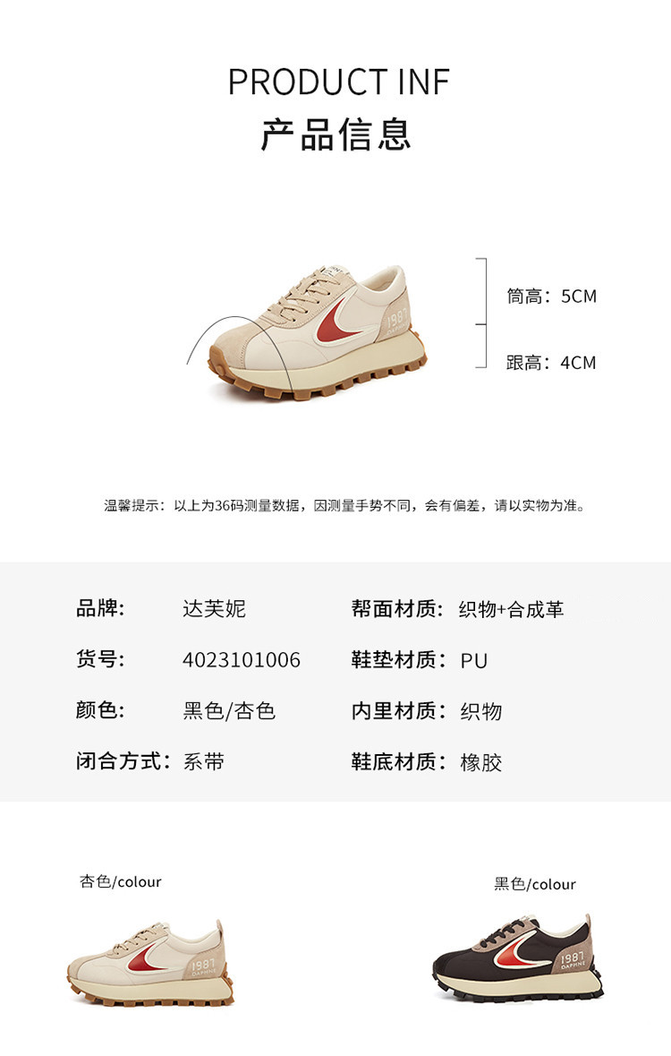 商品名称:德训鞋女夏季时尚健步鞋轻便百搭女休闲运动鞋透气通勤鞋厚底女鞋 020183