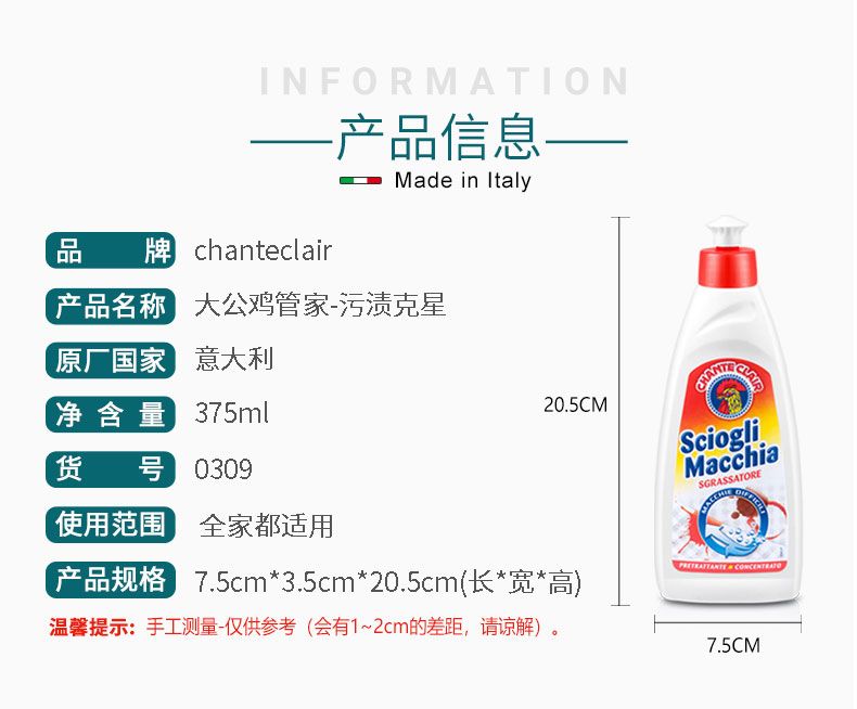 商品名称:大公鸡管家 去污去渍衣领净375ml