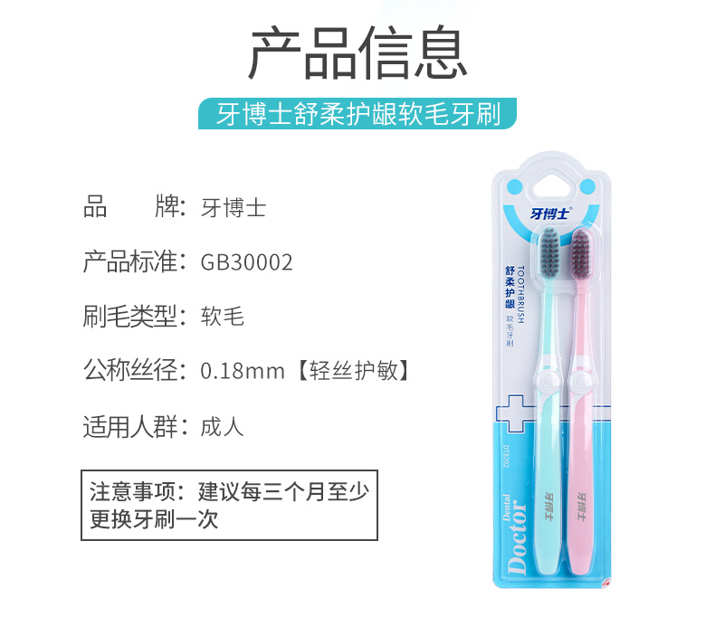 牙博士舒柔护龈软毛牙刷*5卡