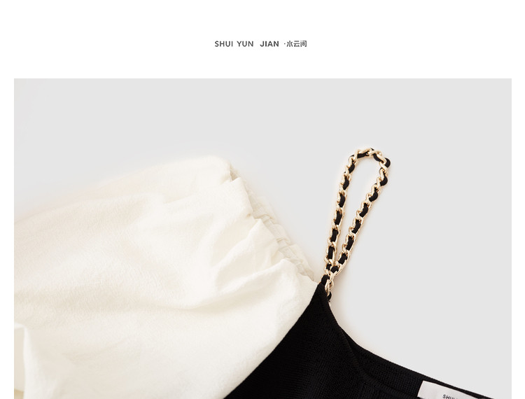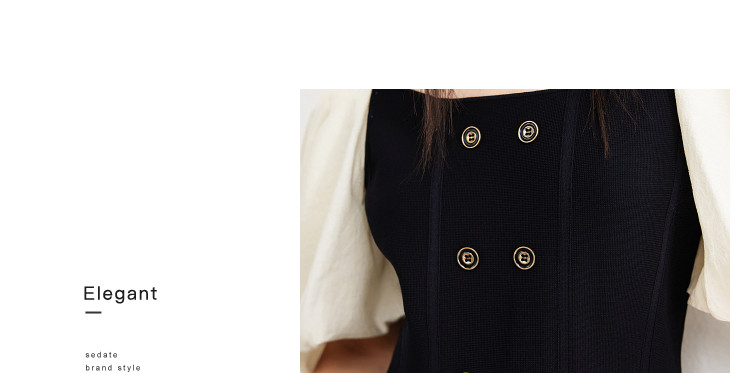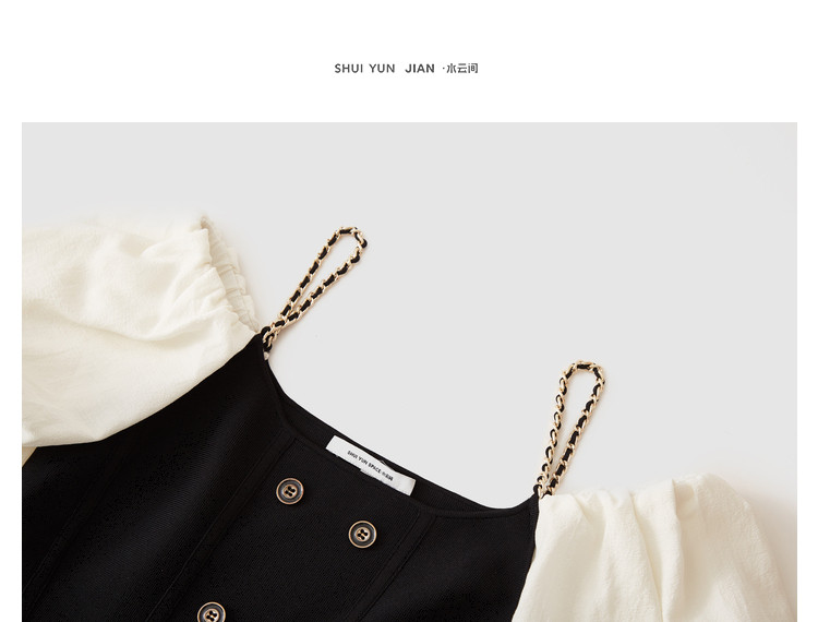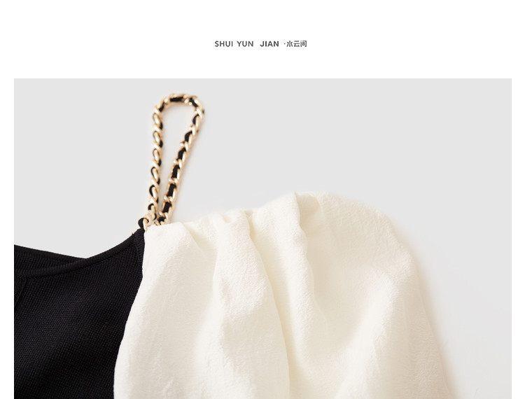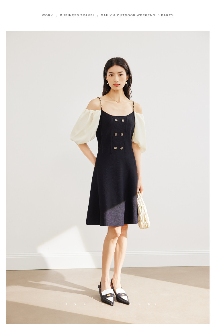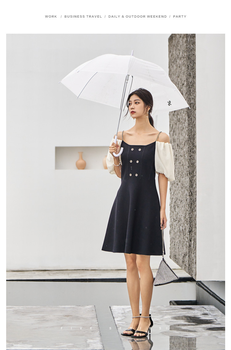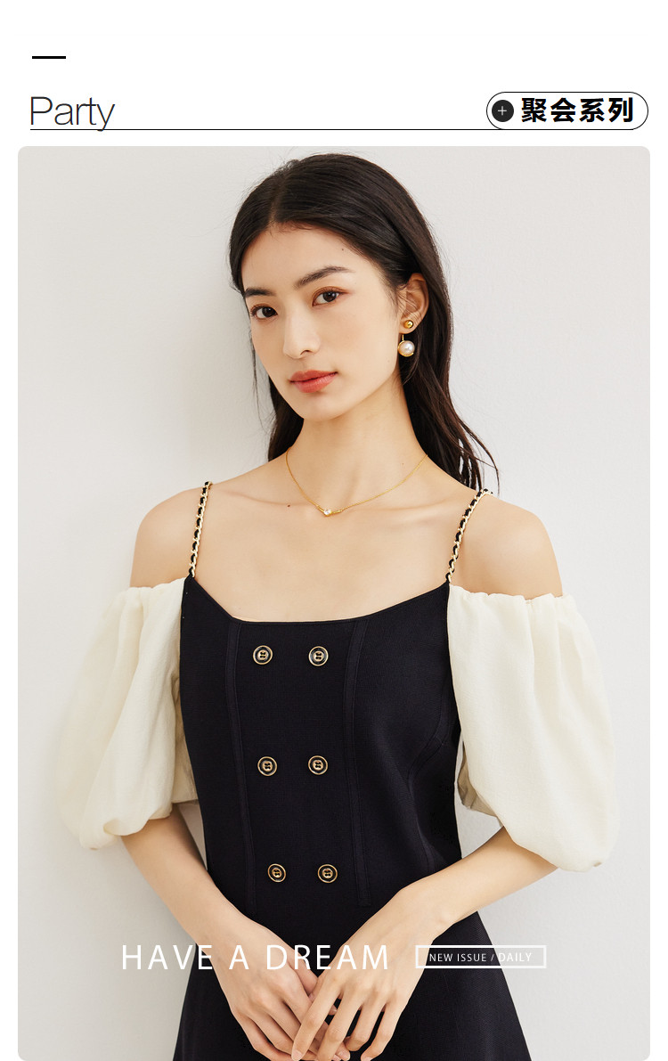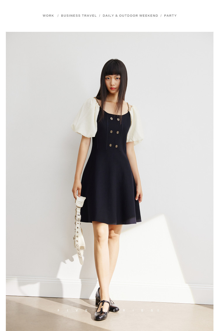 商品名称:泡泡袖连衣裙女撞色拼接气质收腰显瘦露背小礼服a字连衣裙 307203