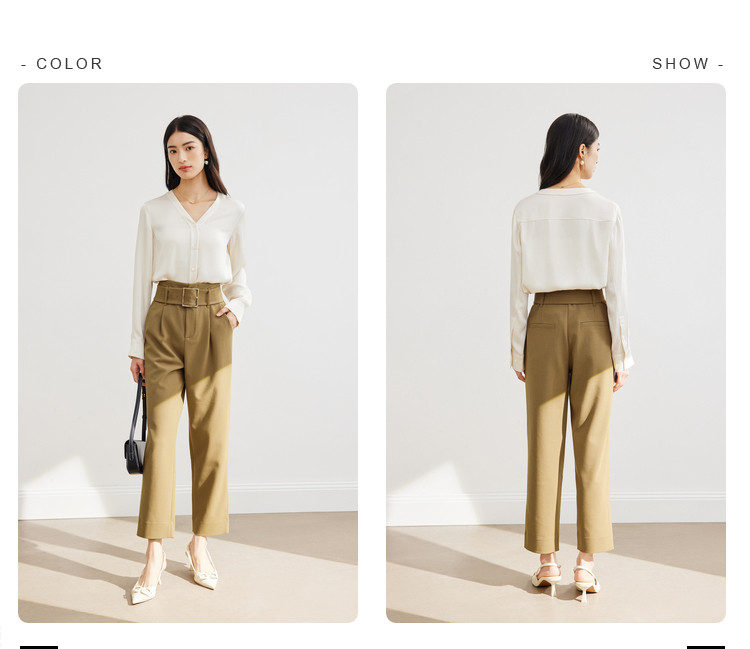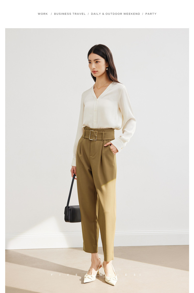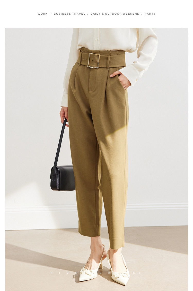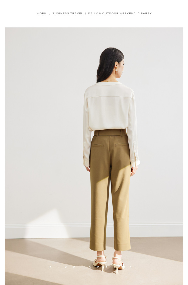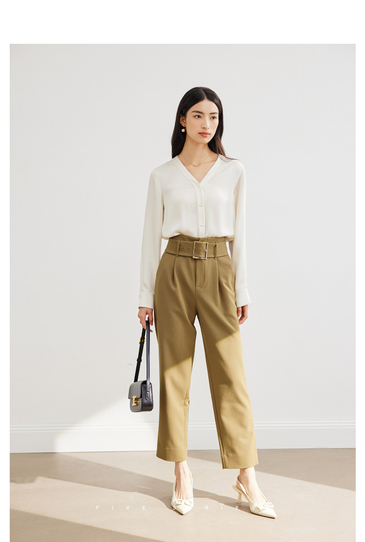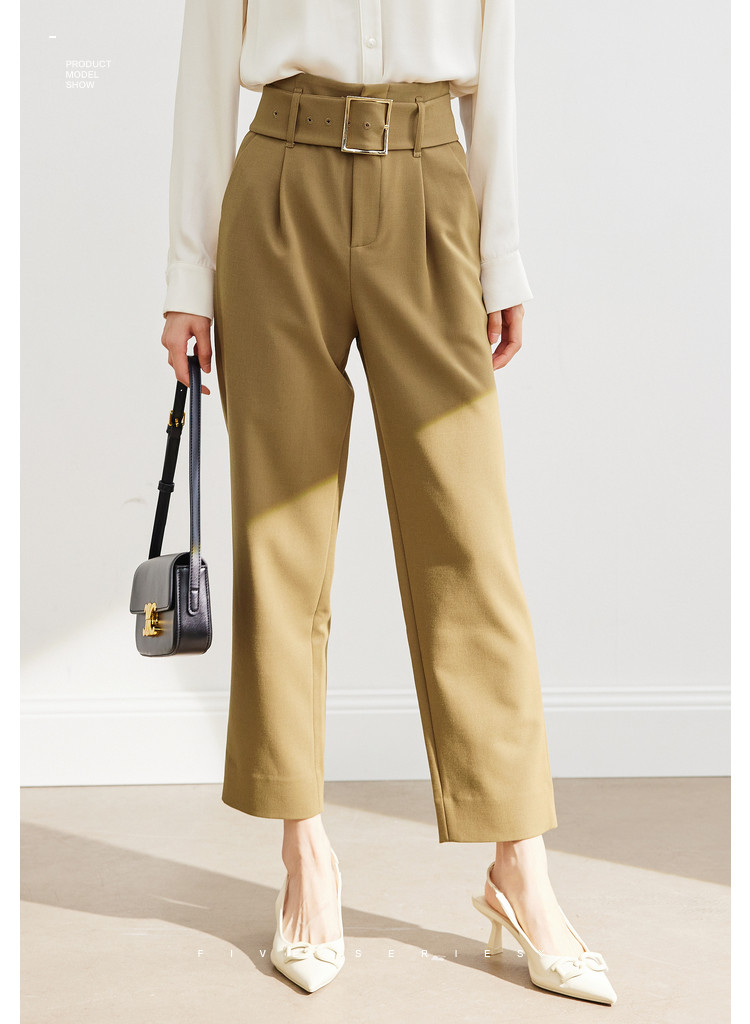 商品名称:高腰纯色休闲裤女夏季通勤百搭直筒宽松长裤女洋气简约显瘦女裤 314755