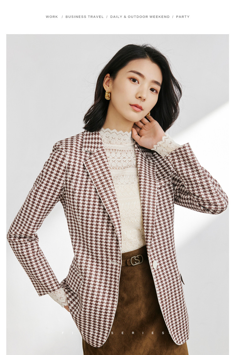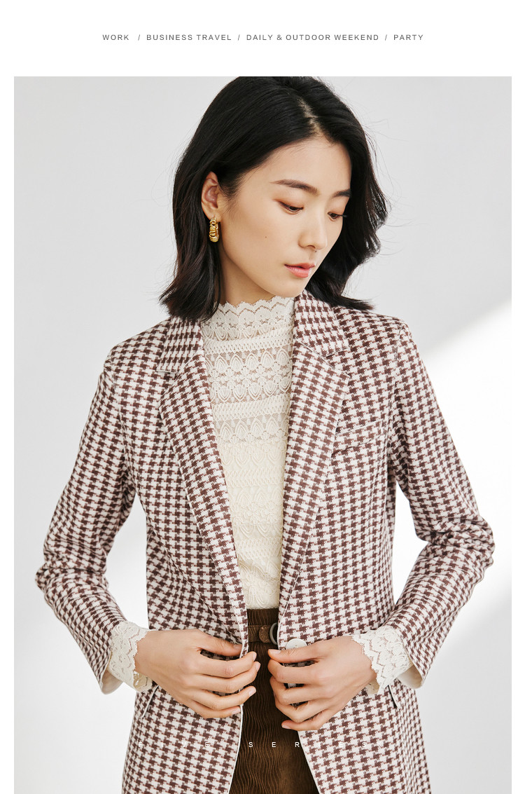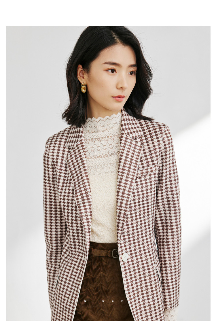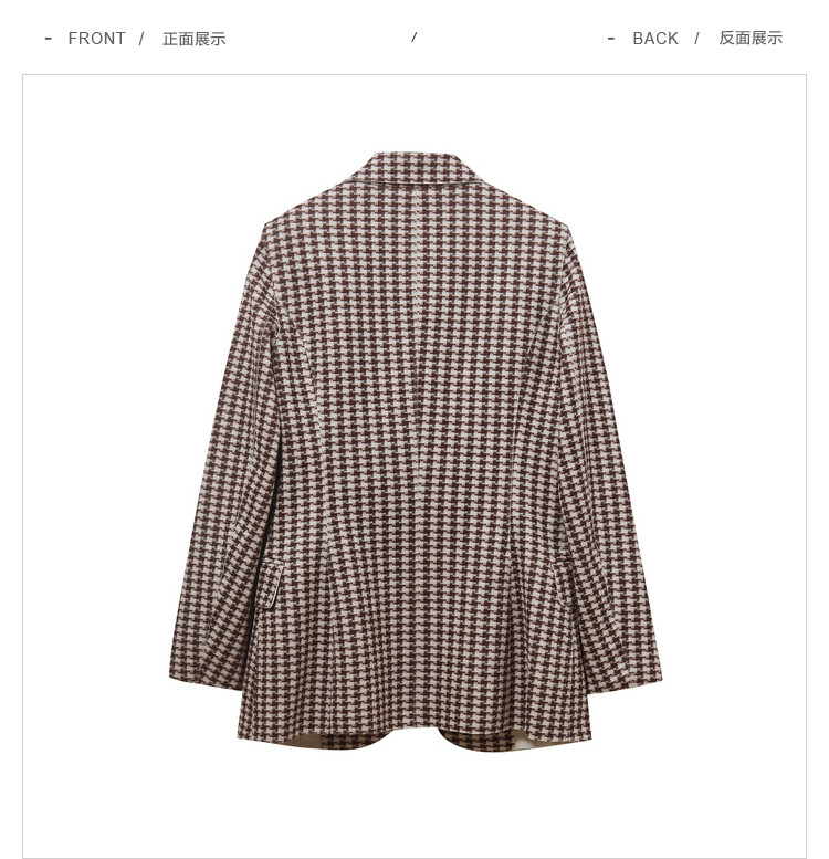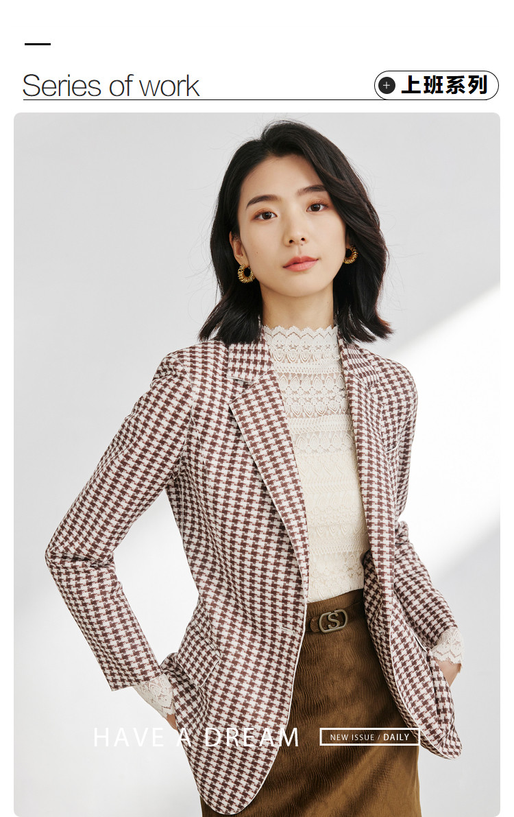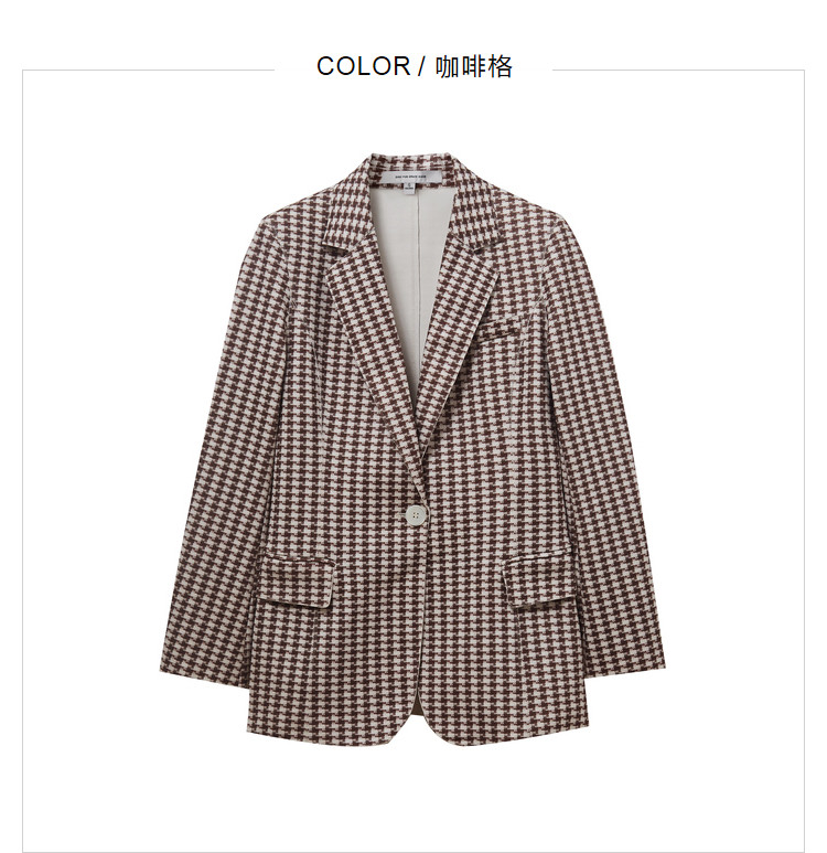 商品名称:时尚复古格纹西装女春秋气质通勤百搭职业一粒扣小西装外套女 918659