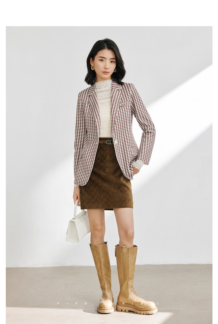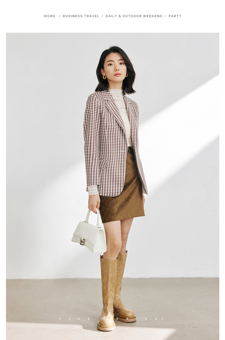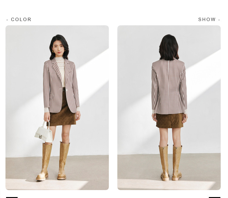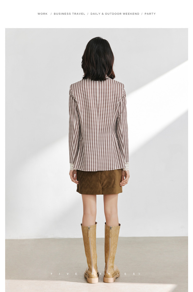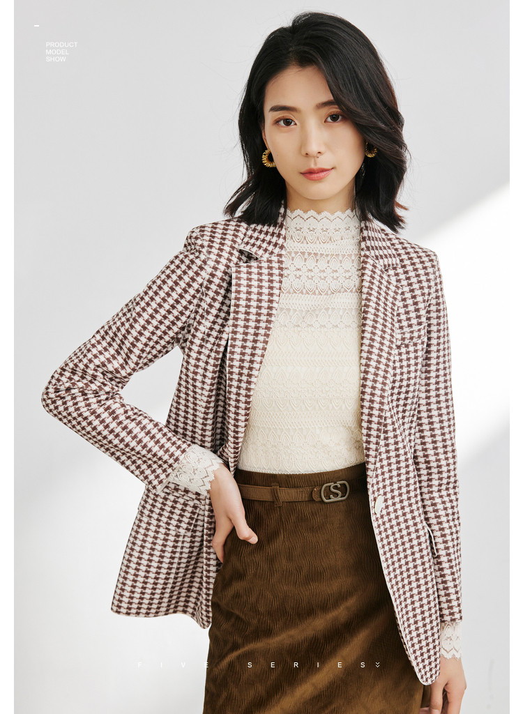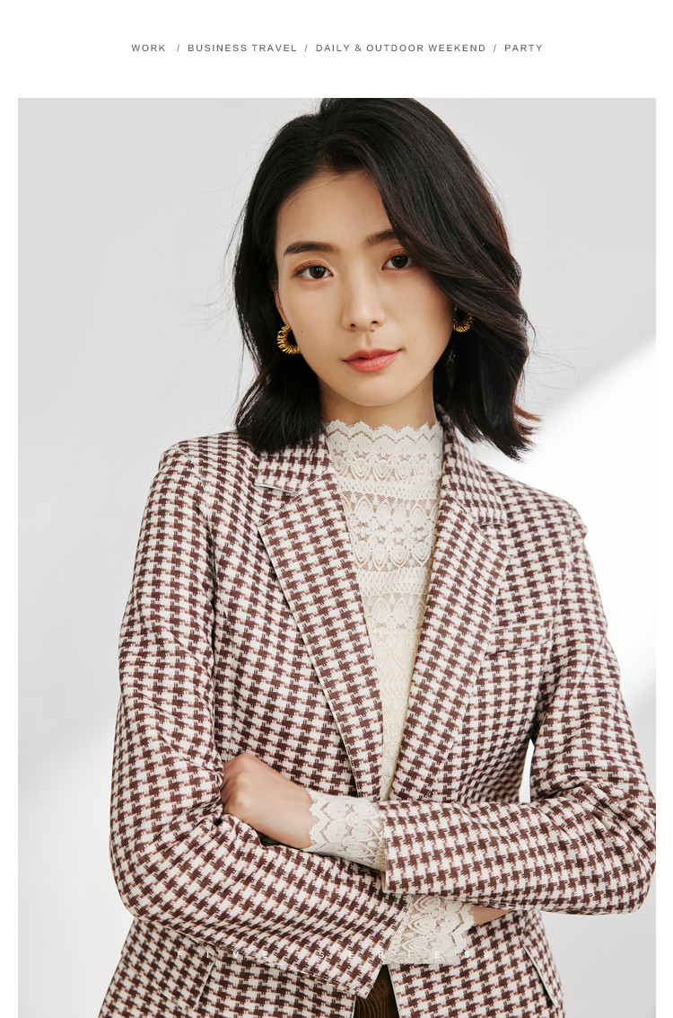 商品名称:时尚复古格纹西装女春秋气质通勤百搭职业一粒扣小西装外套女 918659