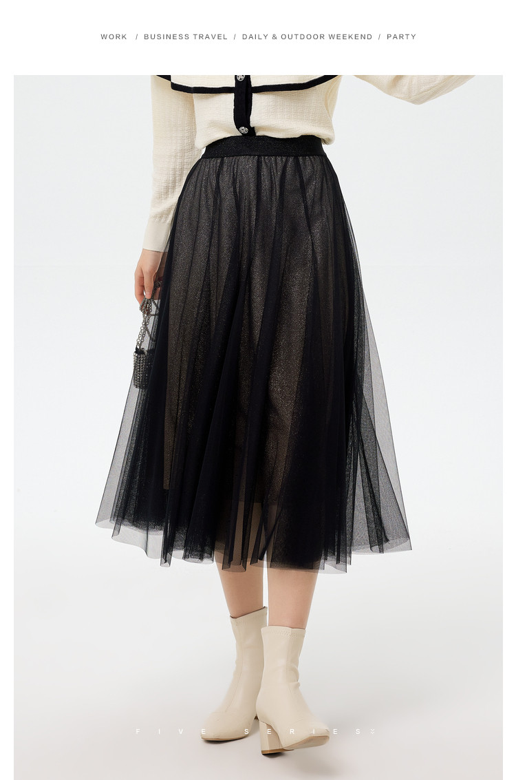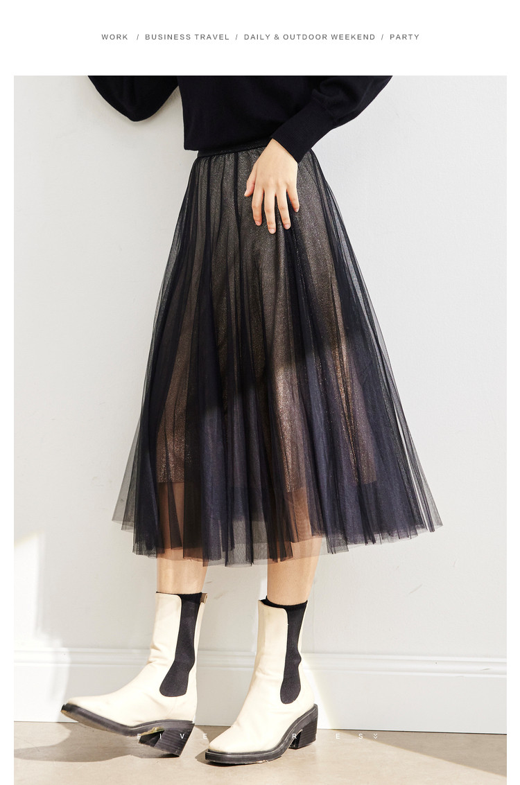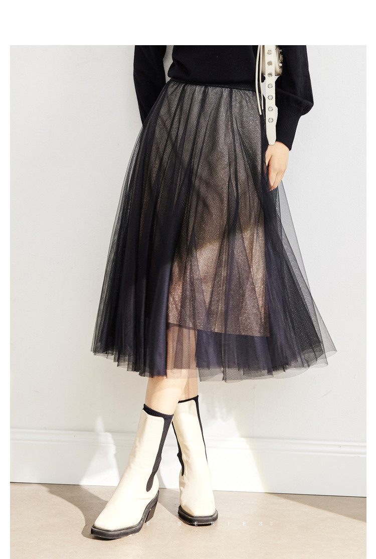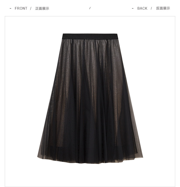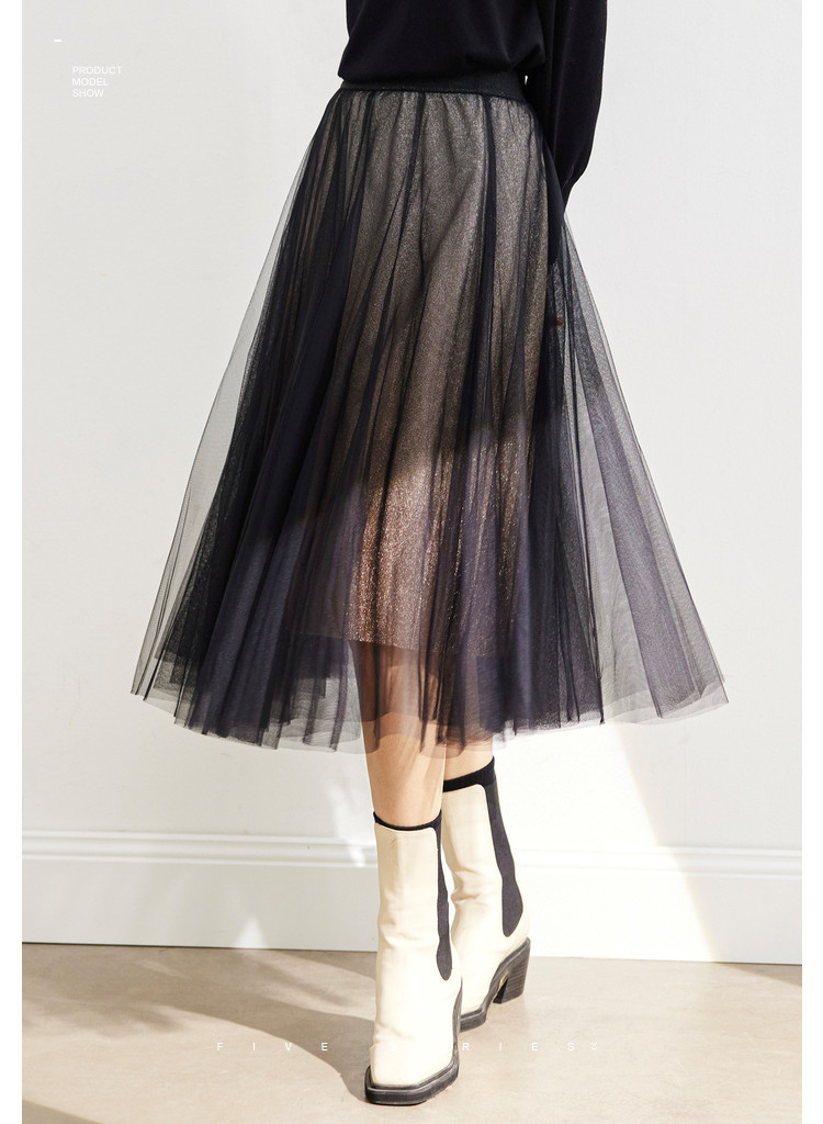 商品名称:中长网纱半身裙女春秋百搭A字裙女气质渐变色艺术感时尚伞裙女 454723