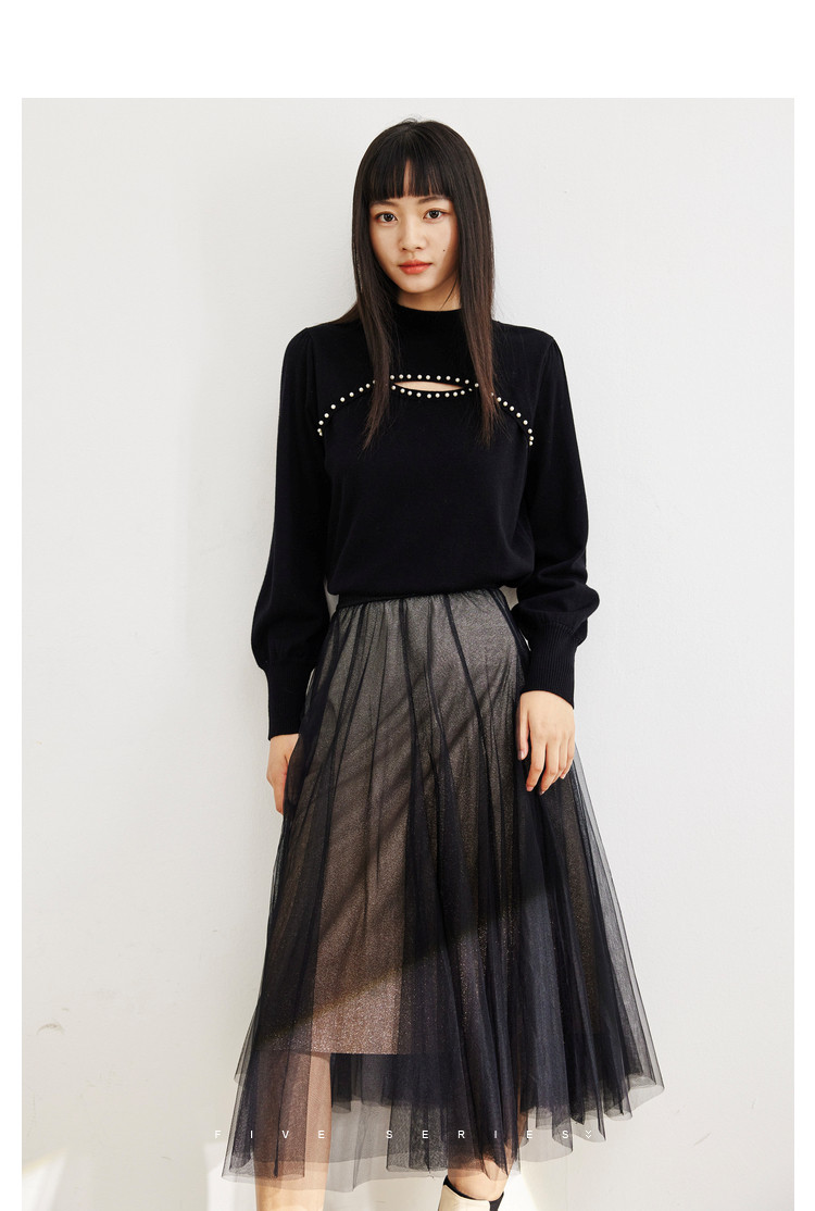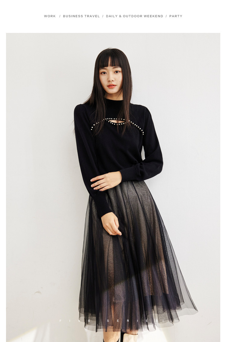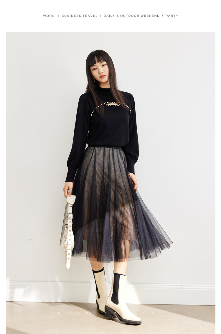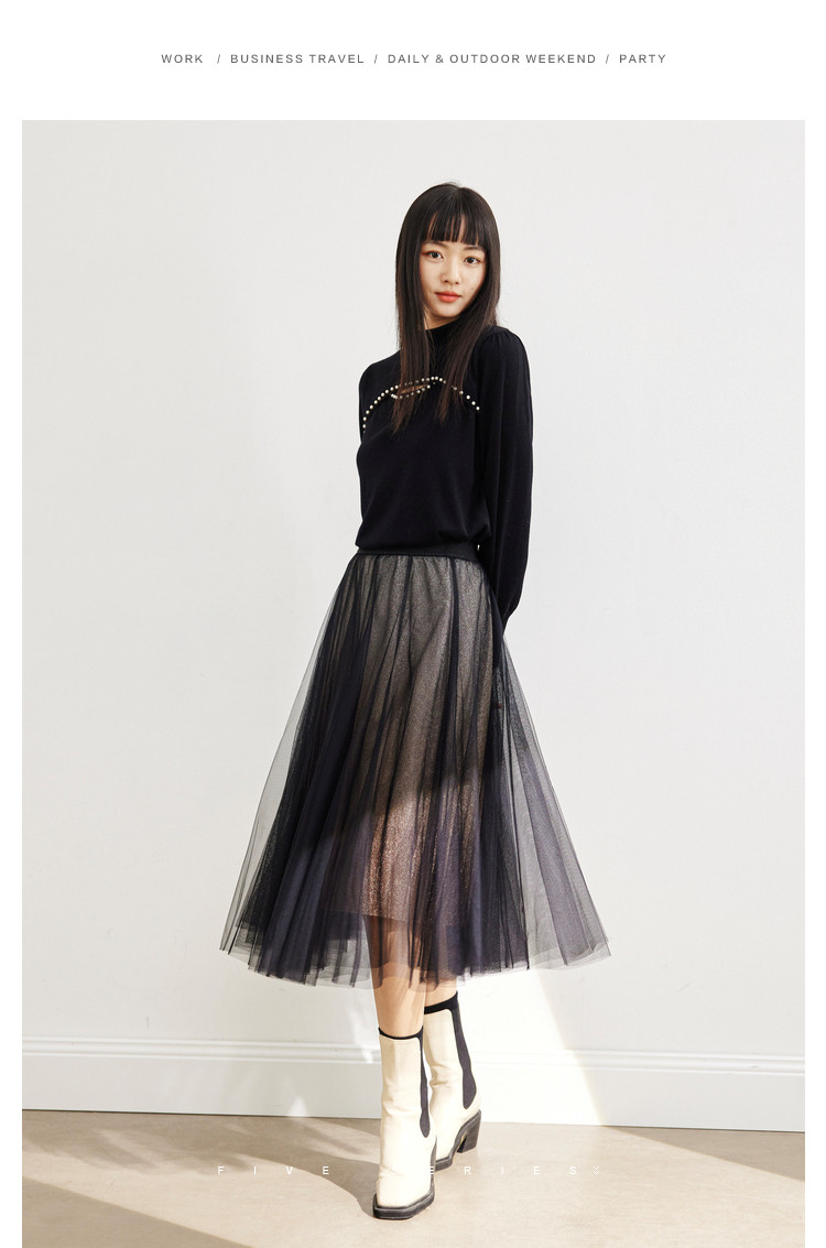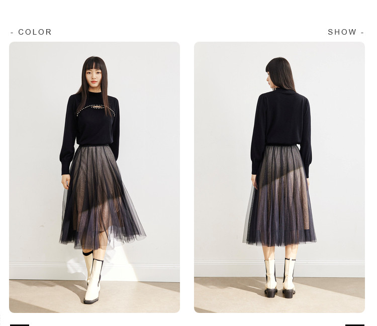 商品名称:中长网纱半身裙女春秋百搭A字裙女气质渐变色艺术感时尚伞裙女 454723