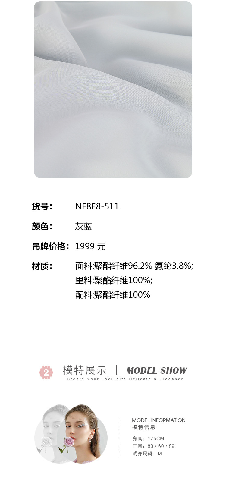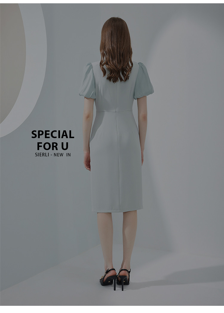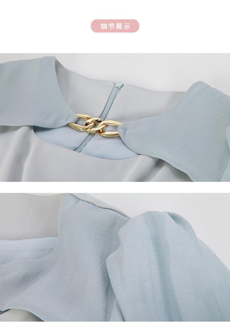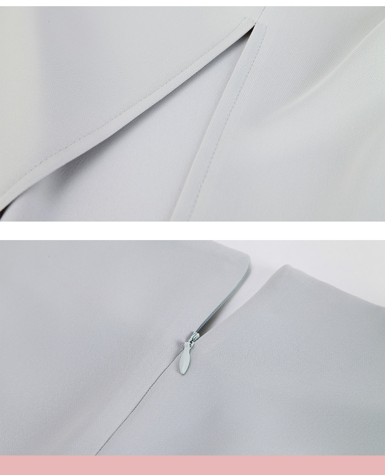 商品名称:夏季腰间收褶合体显瘦前开叉装饰链条OL气质通勤连衣裙 647007
