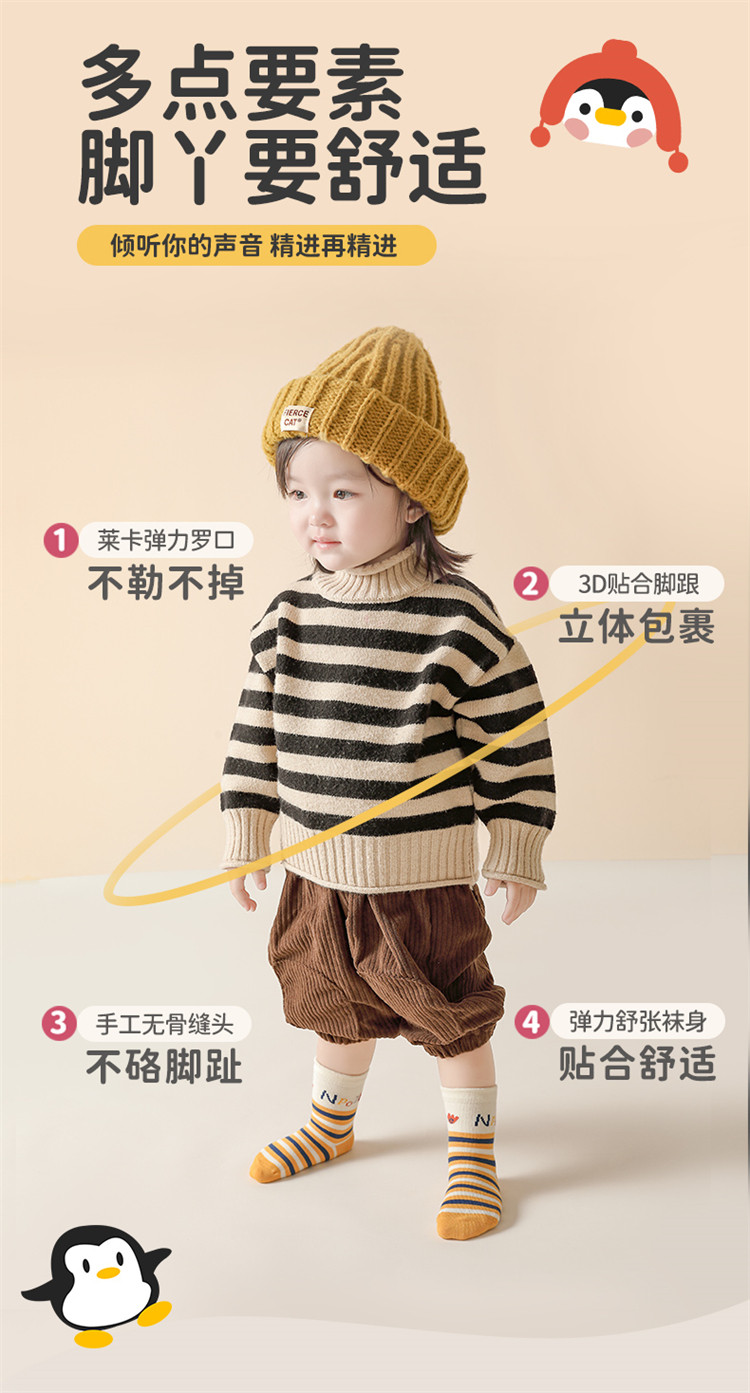 商品名称:【4双装婴童袜】新生儿袜子婴儿亲肤袜子小童舒适宝宝儿童袜子 932303