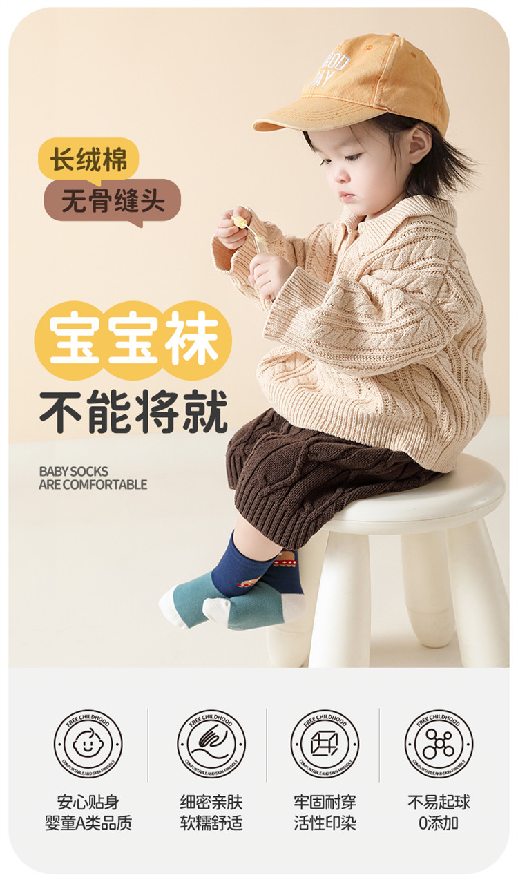 商品名称:【4双装婴童袜】新生儿袜子婴儿亲肤袜子小童舒适宝宝儿童袜子 206735