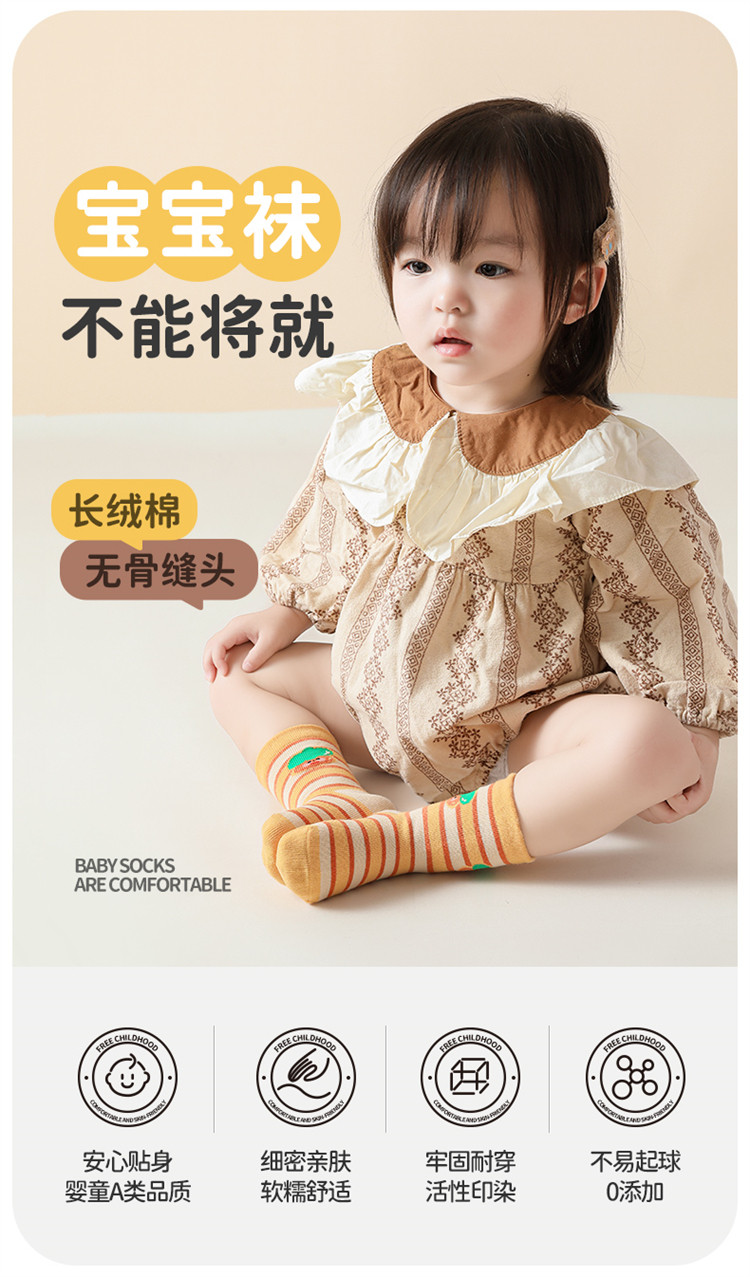 商品名称:【4双装婴童袜】新生儿袜子婴儿亲肤袜子小童舒适宝宝儿童袜子 768463