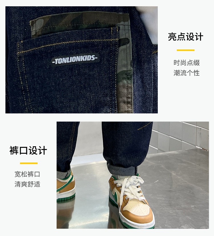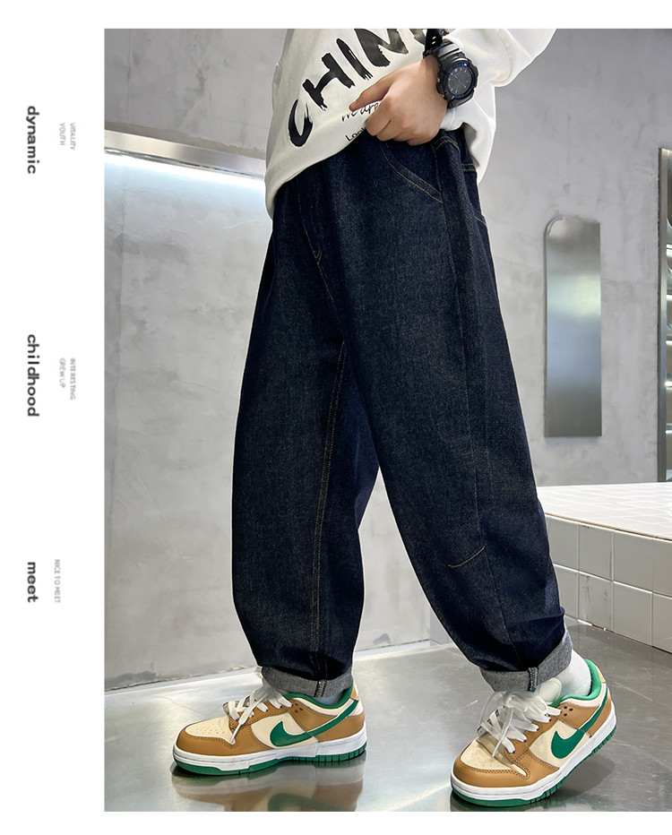 商品名称:男童牛仔裤秋装儿童水洗牛仔长裤中大童休闲百搭宽松秋款潮 657423