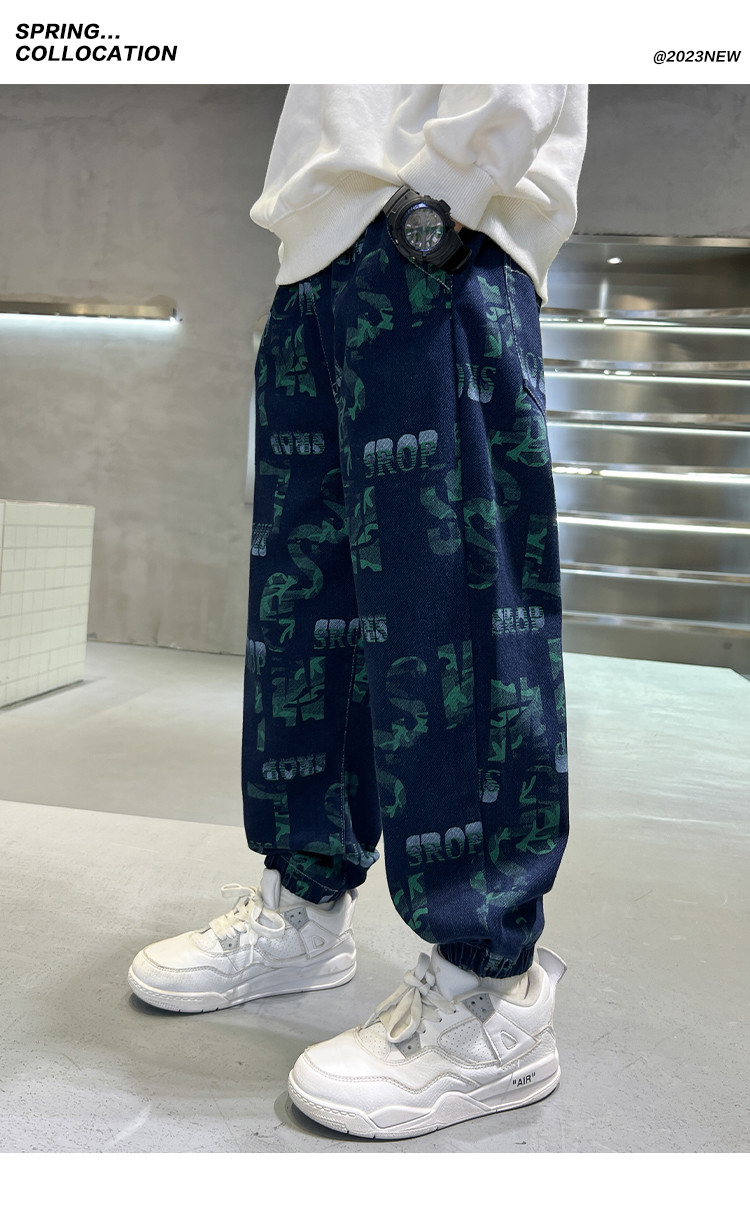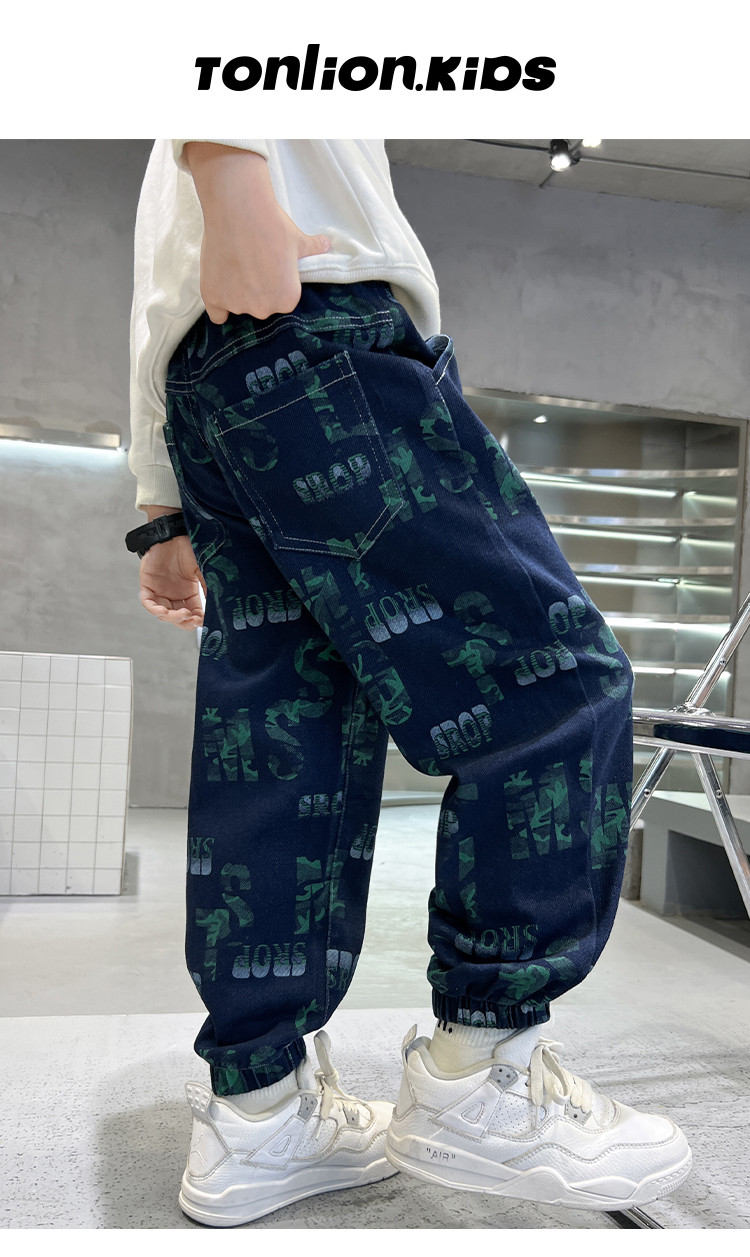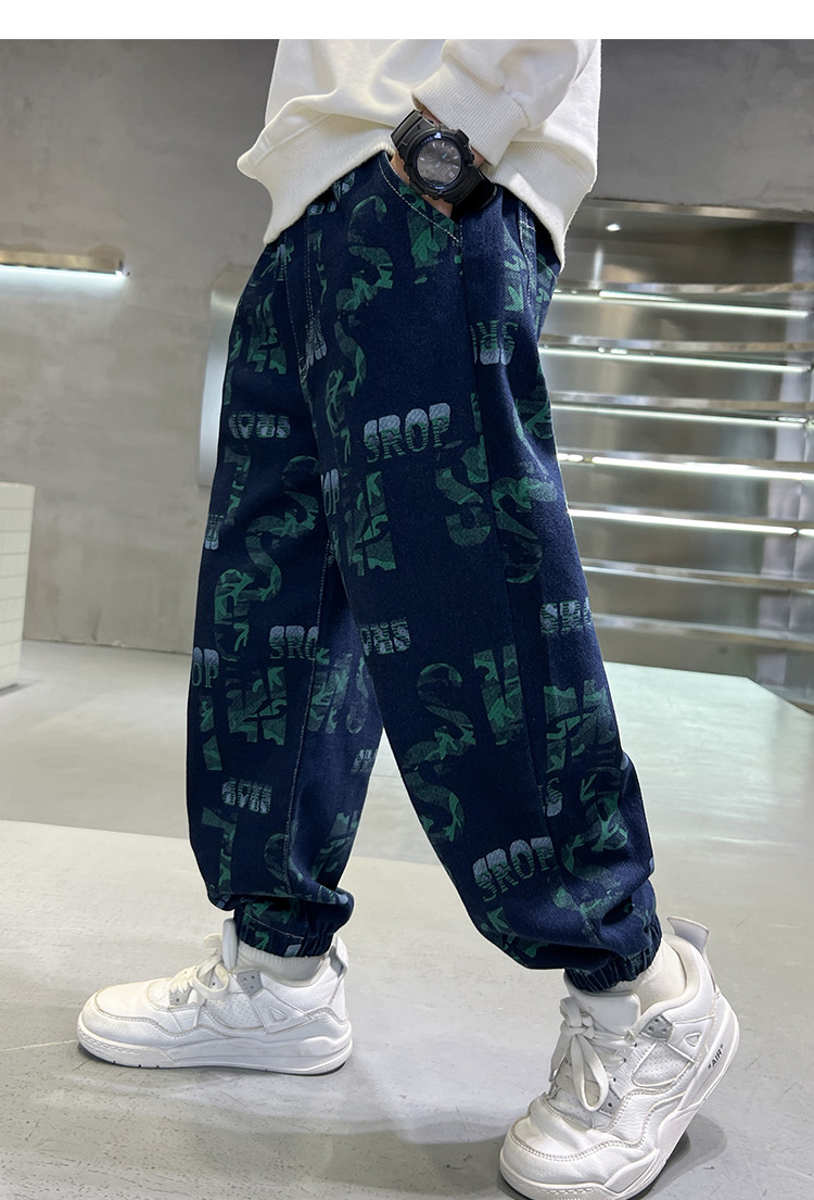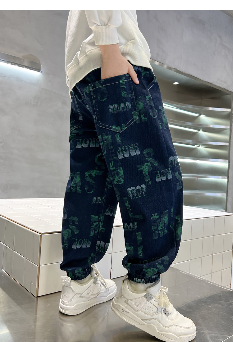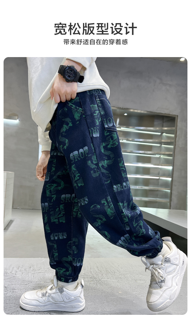 商品名称:男童牛仔裤秋儿童中大童男孩宽松弹力休闲裤长裤 675407