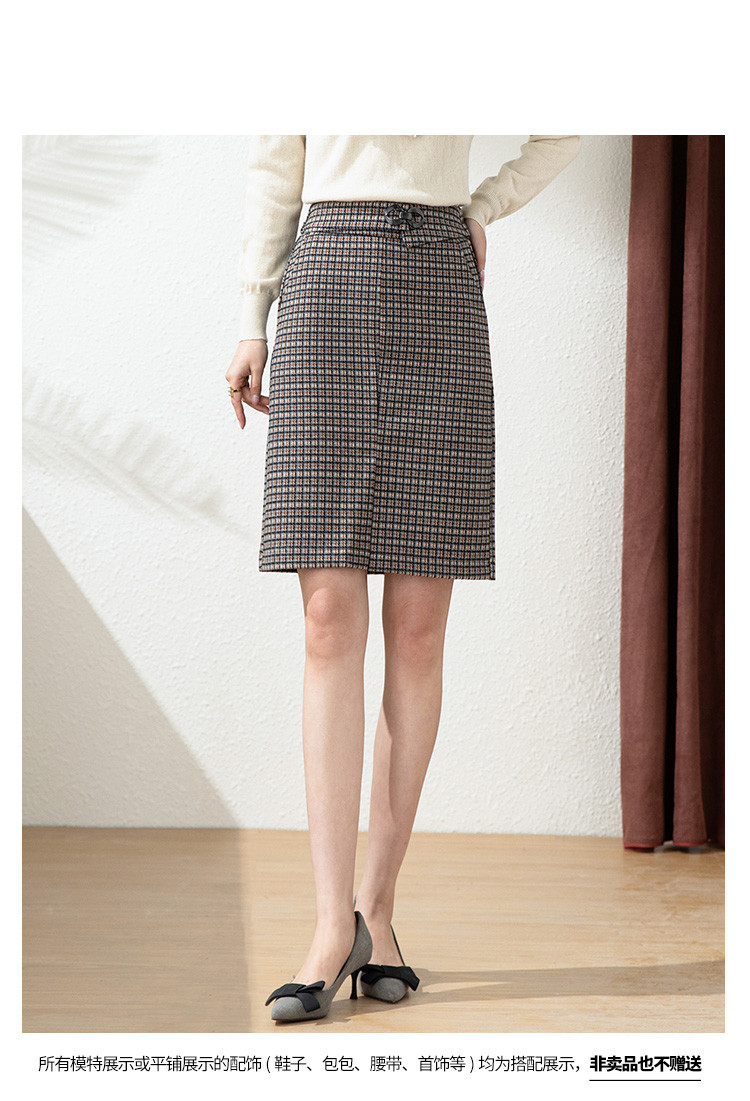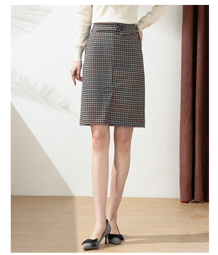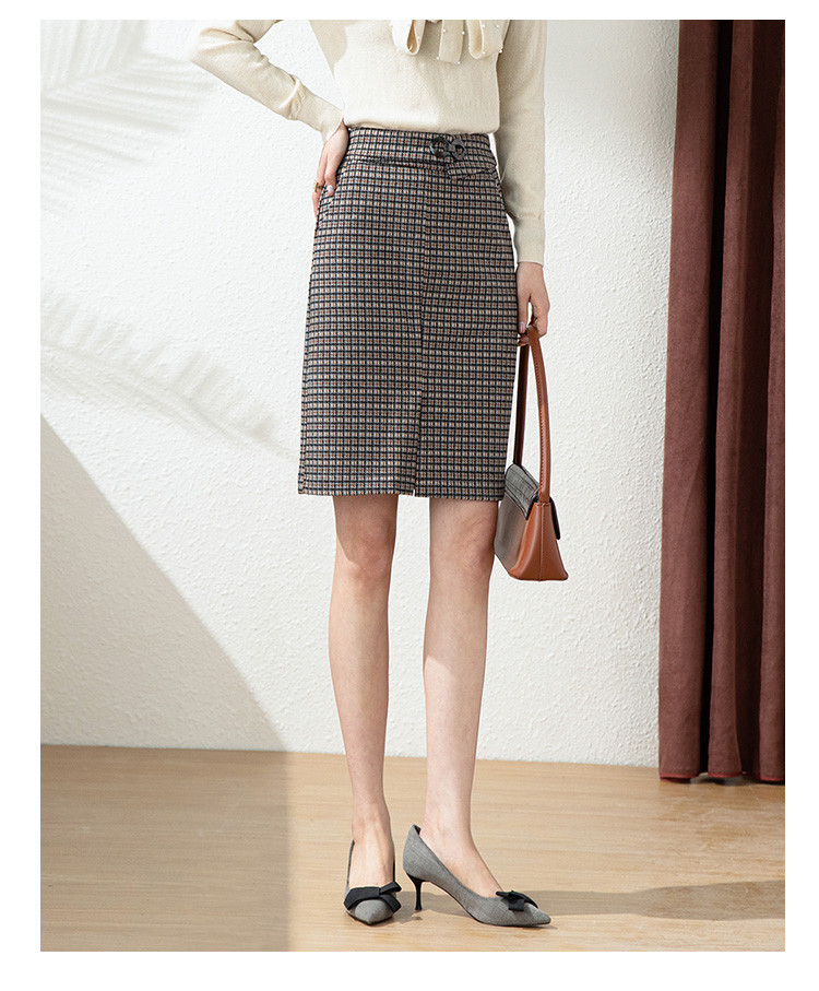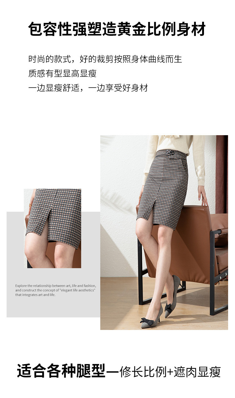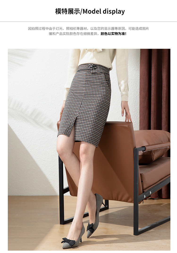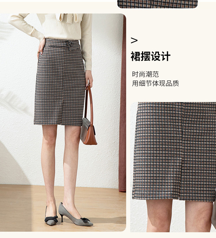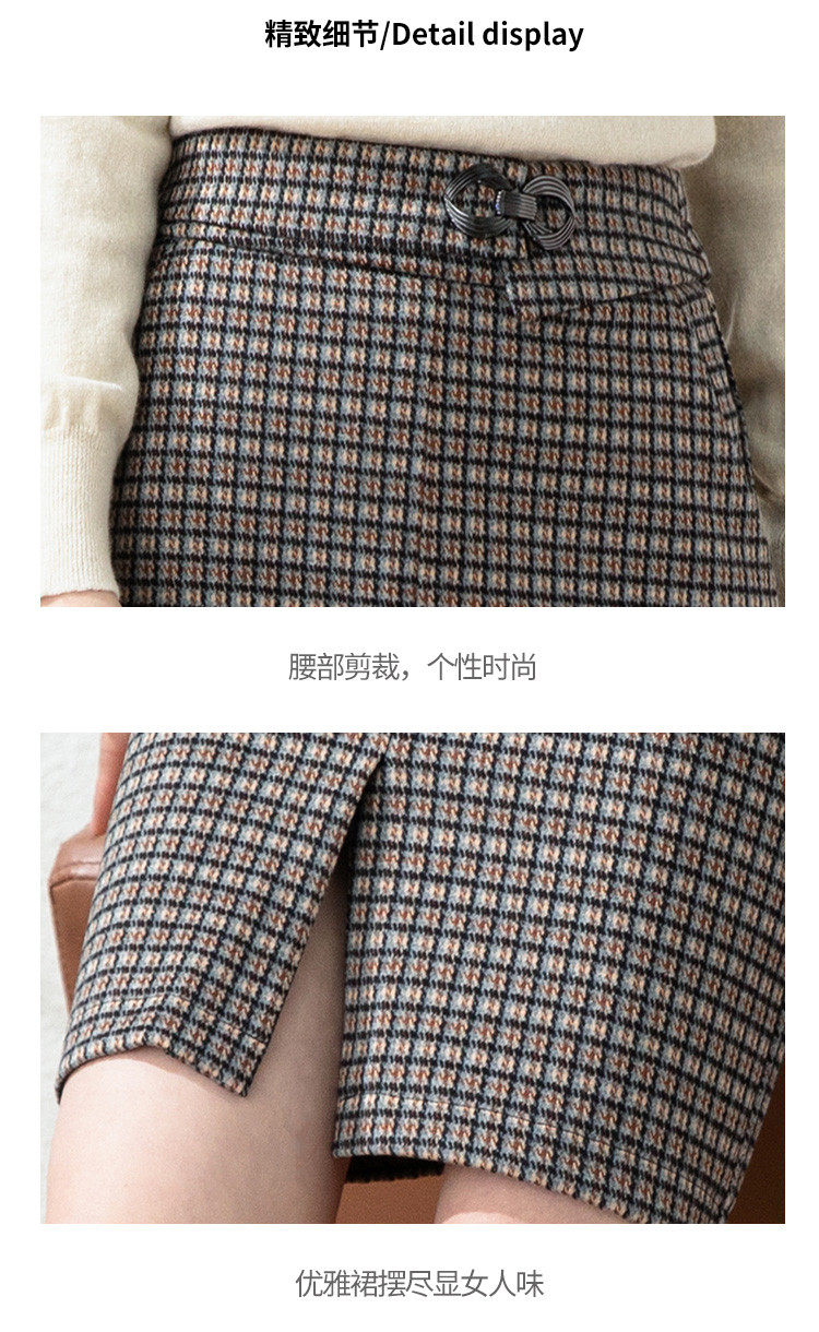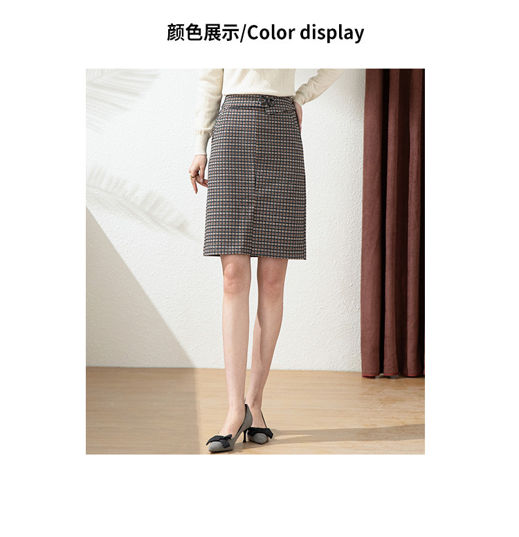 商品名称:【时尚格纹撞色】春秋气质修身包臀裙女式中长款简约半身裙 936415