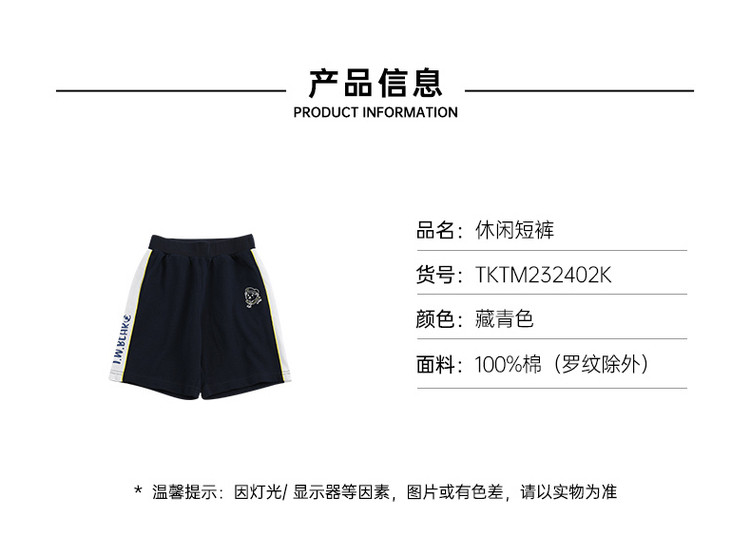 商品名称:小熊童装男童夏季宽松休闲运动短裤 113729