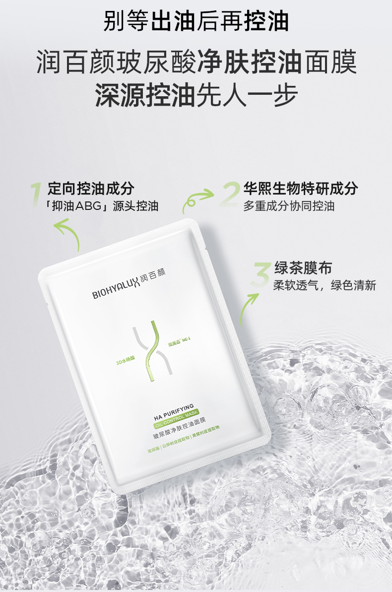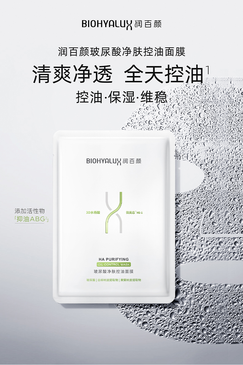 商品名称:润百颜 玻尿酸净肤控油面膜 5片/盒 华熙生物