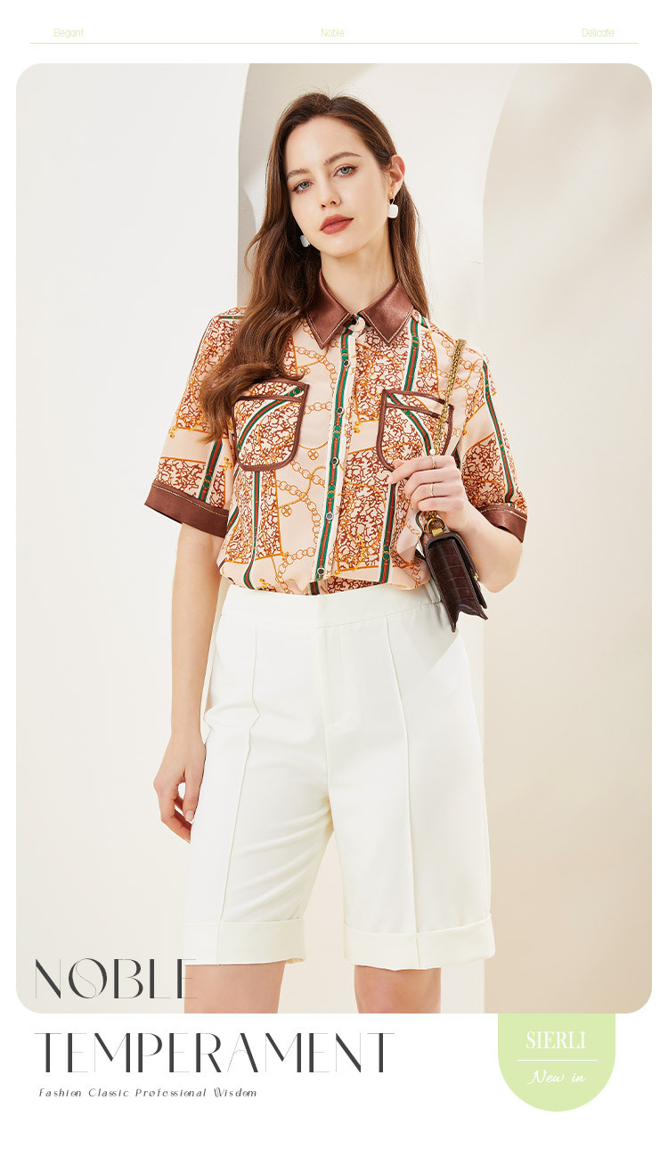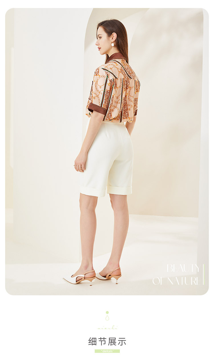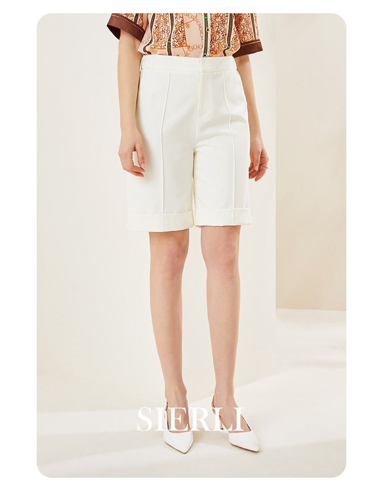 夏季时尚干练OL气质休闲翻边五分裤通勤女式休闲裤 784351