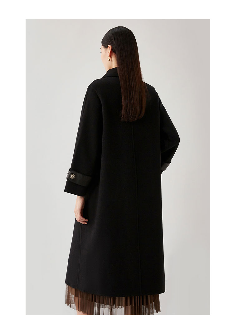 【100%绵羊毛】秋冬休闲百搭大衣女双面呢羊毛长款外套 302175