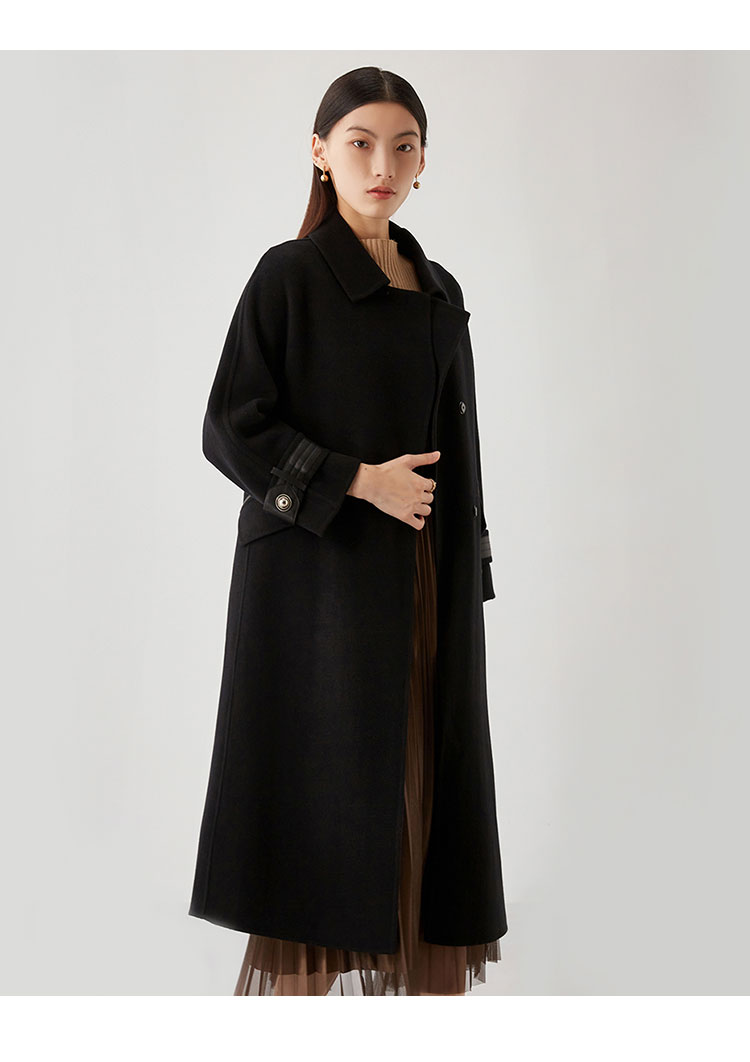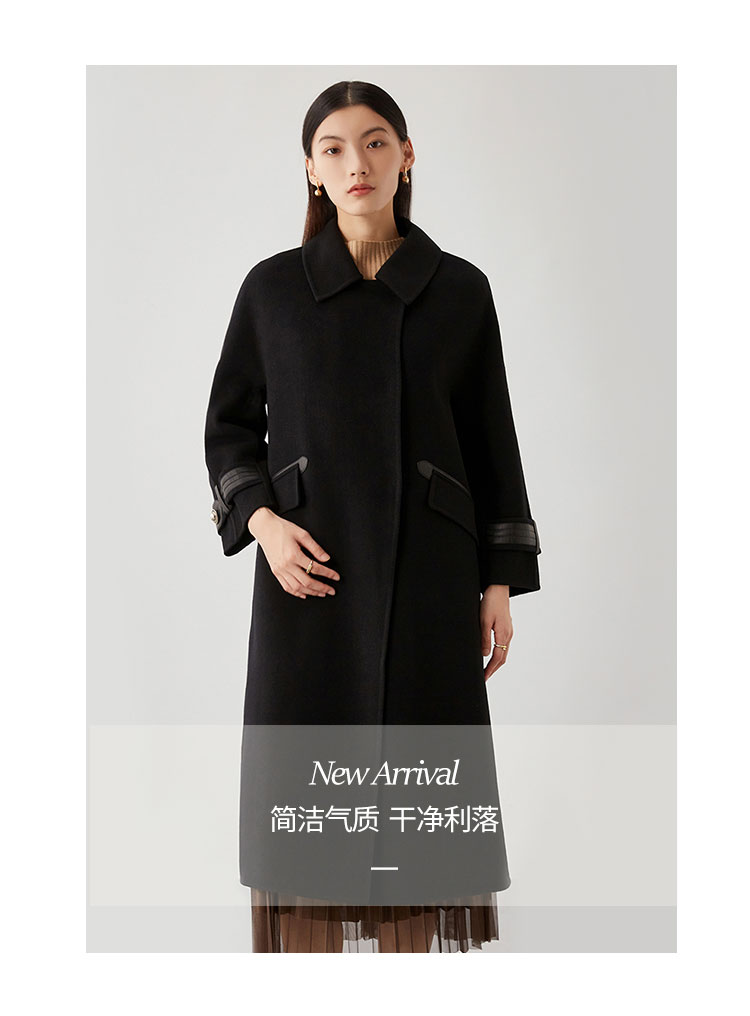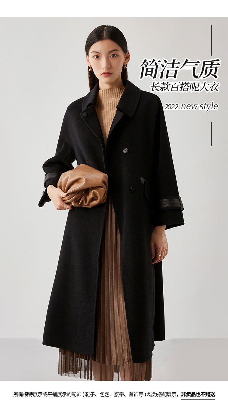 商品名称:【100%绵羊毛】秋冬休闲百搭大衣女双面呢羊毛长款外套 302175