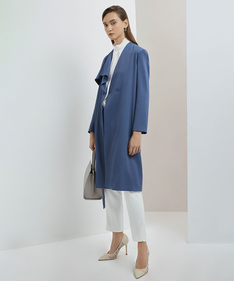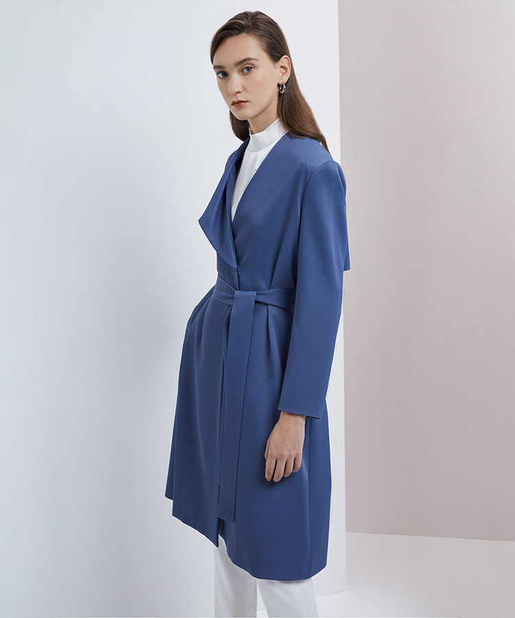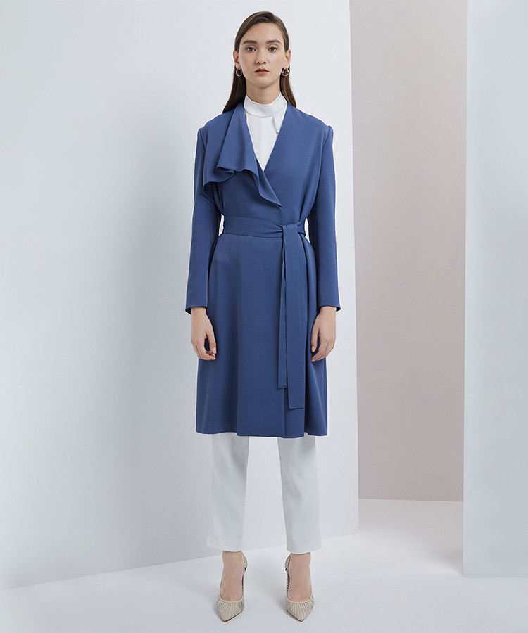 商品名称:PORTS宝姿女装V领系带收腰修身显瘦长袖中长风衣 781770