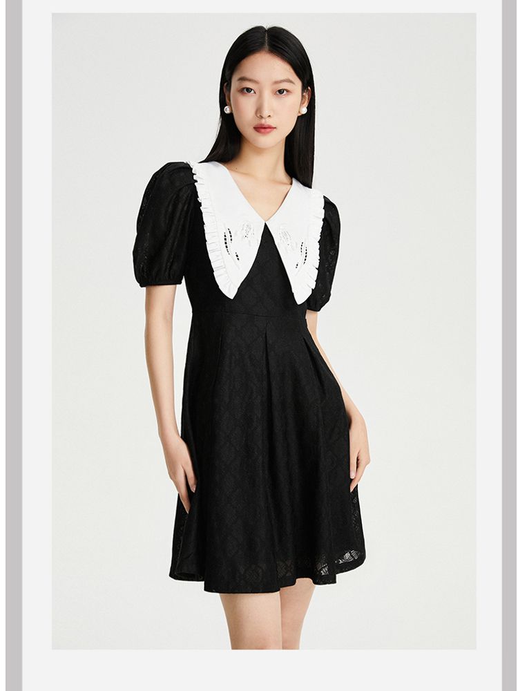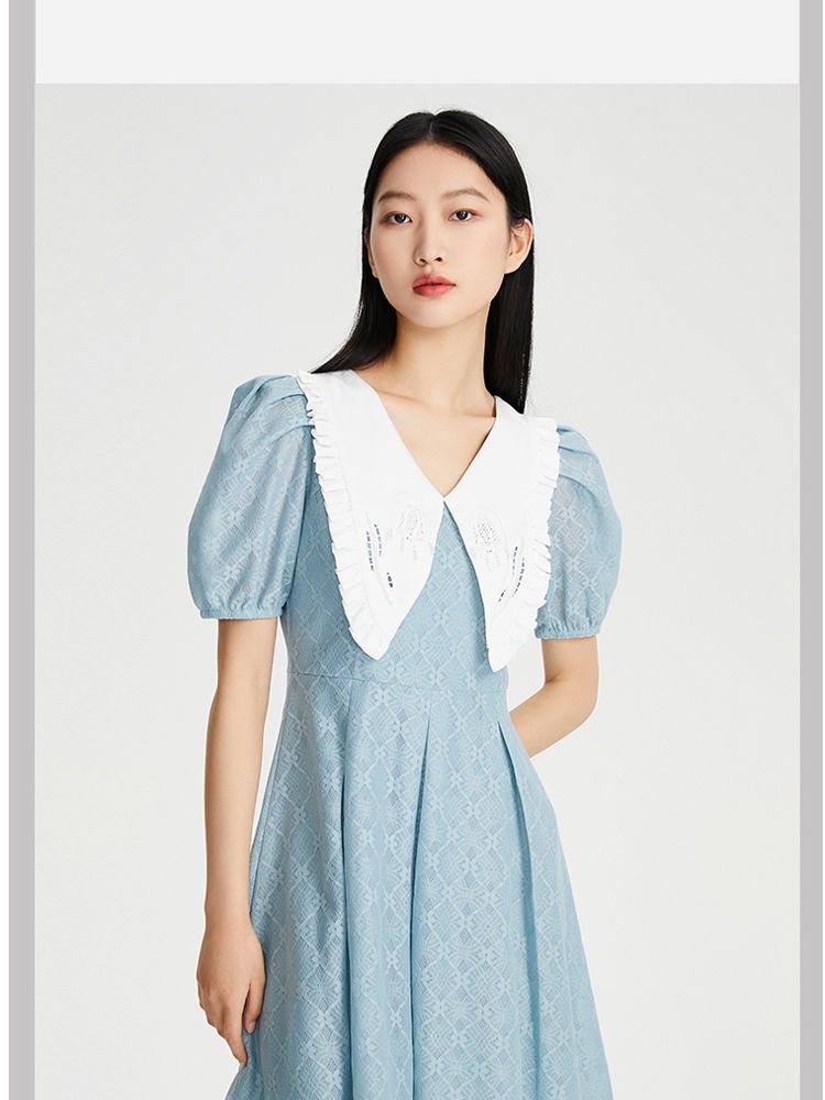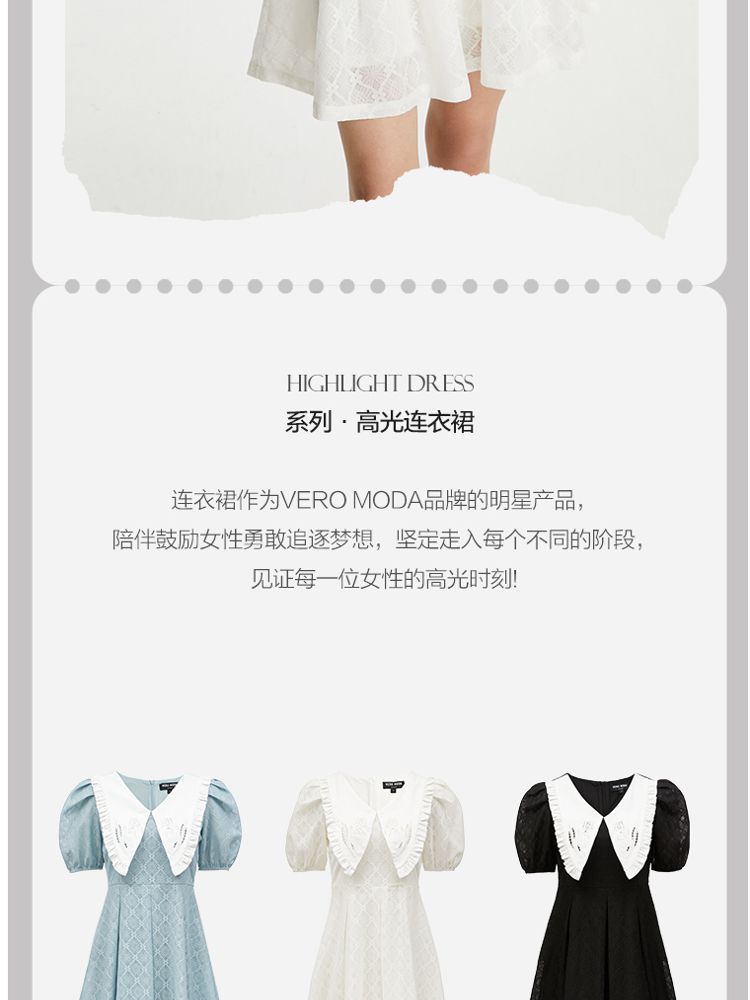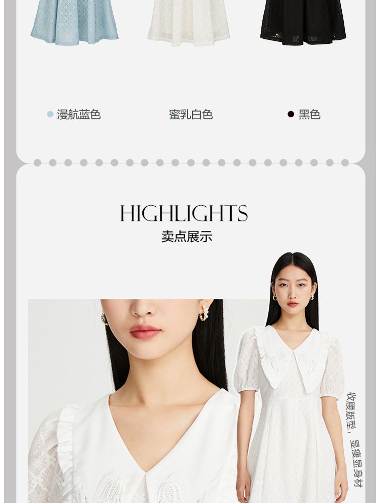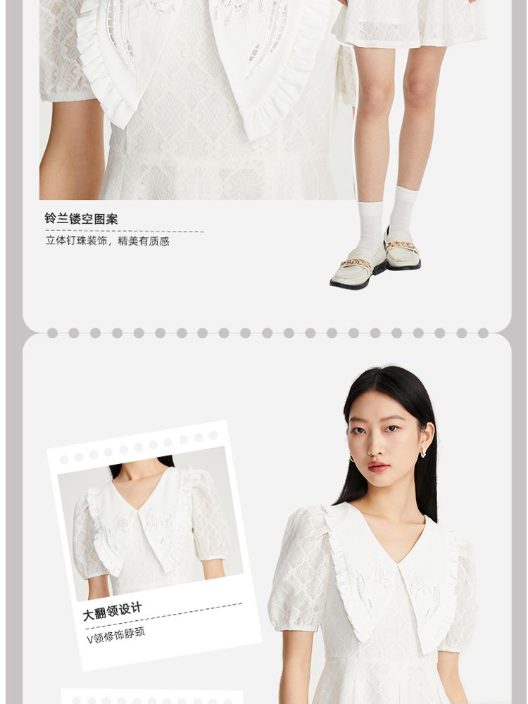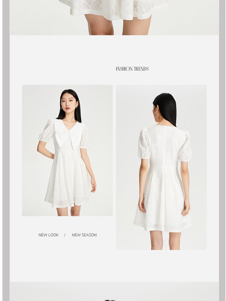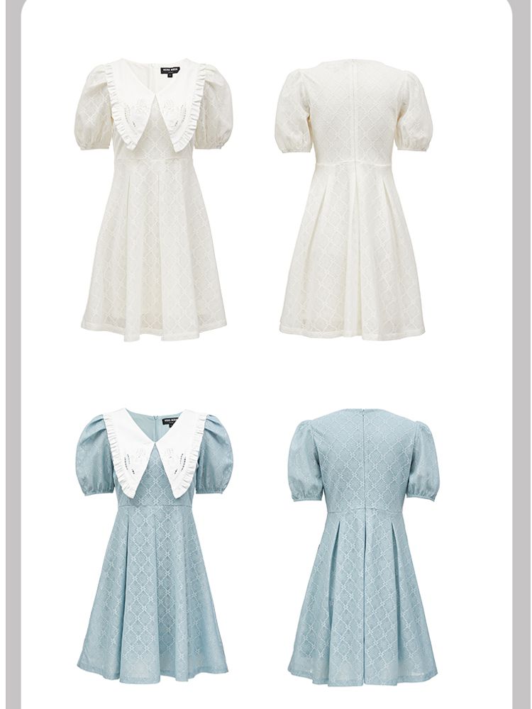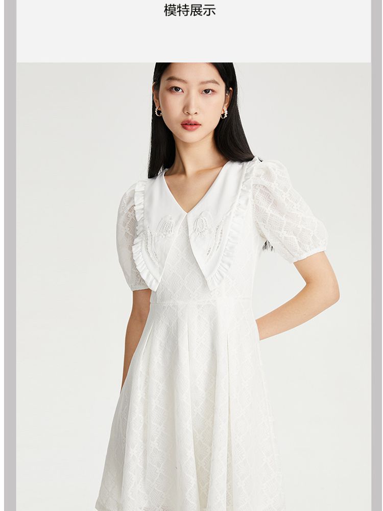 商品名称:【减龄娃娃领】春夏专柜款优雅甜美泡泡袖蕾丝五分袖连衣裙百搭 022353