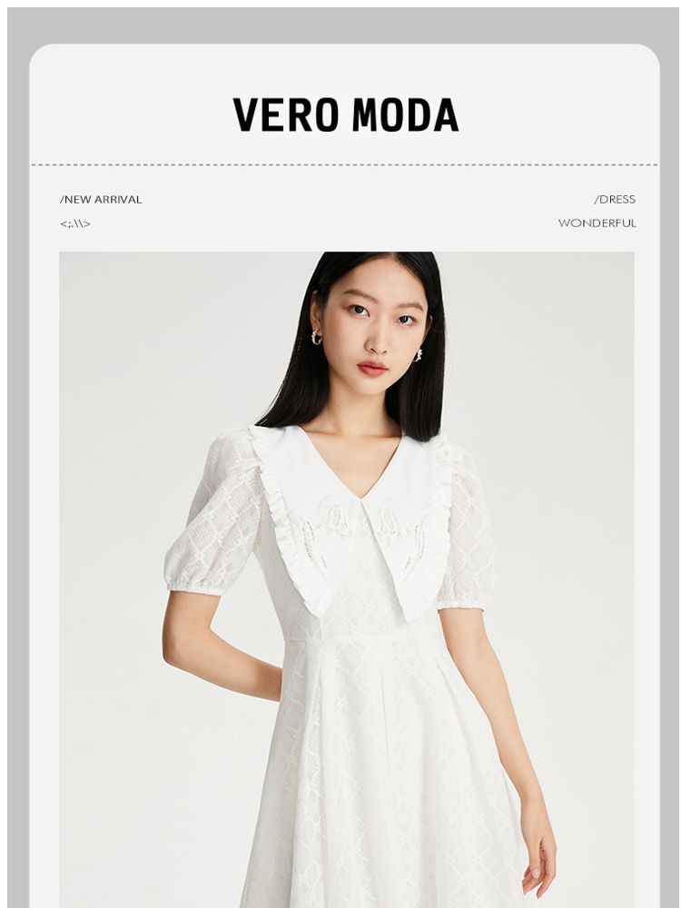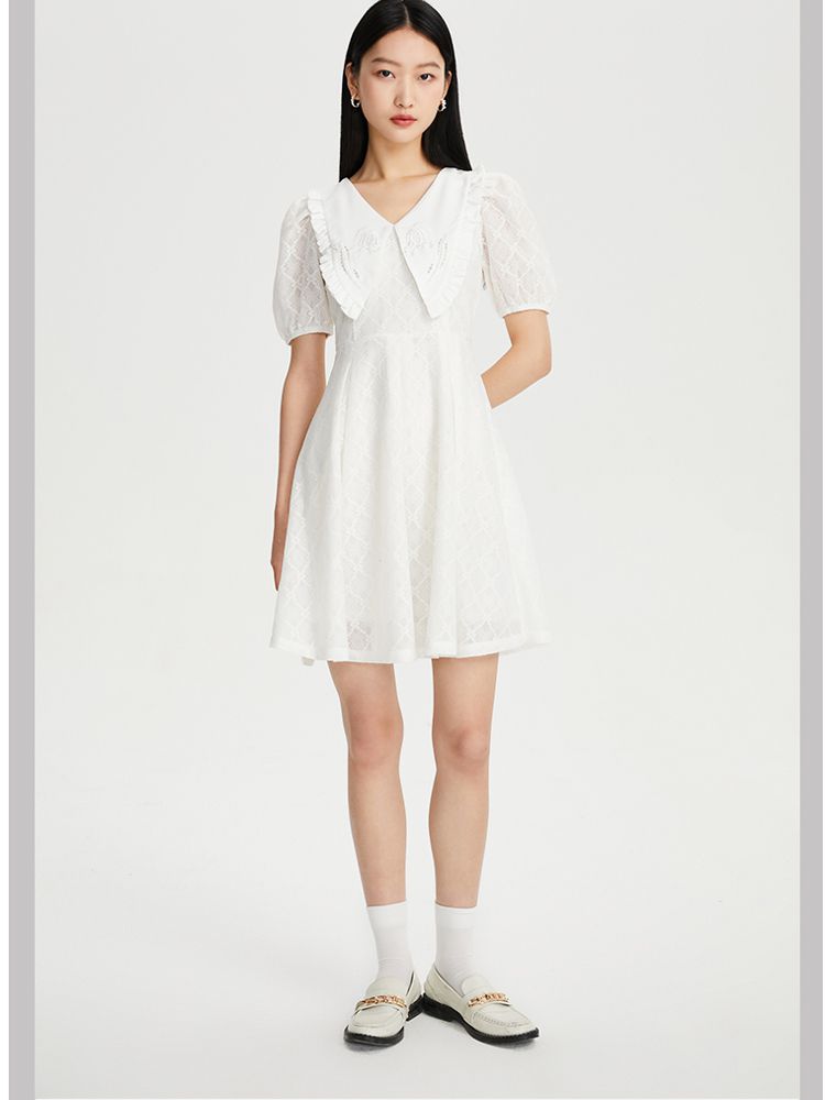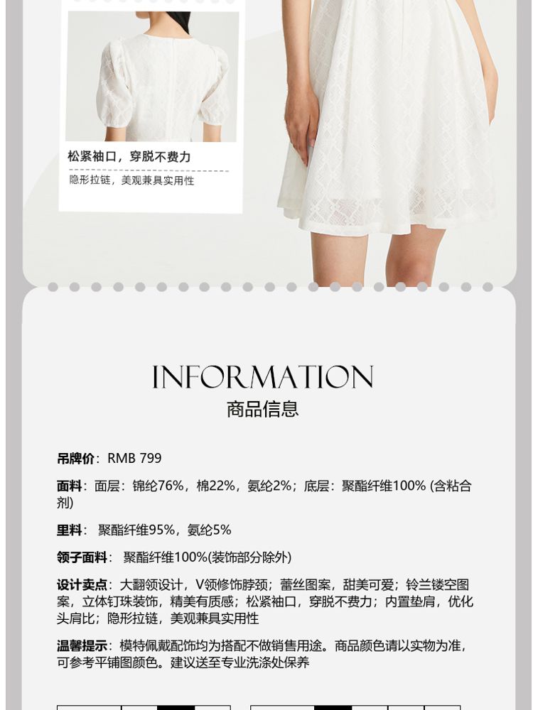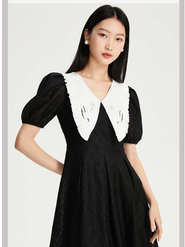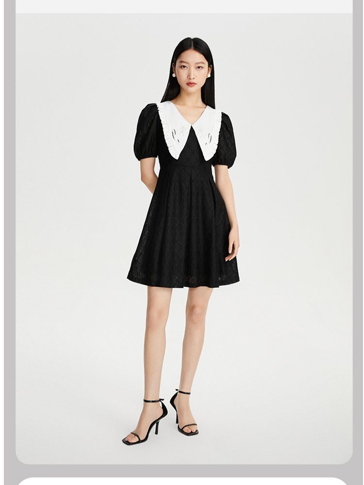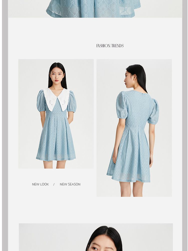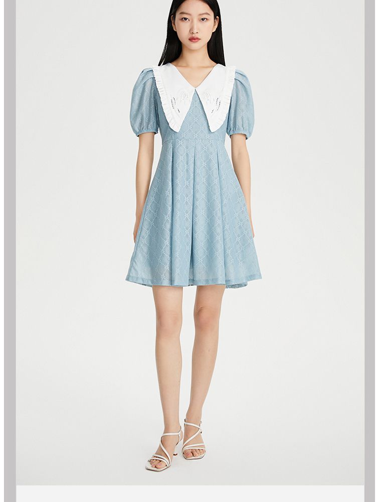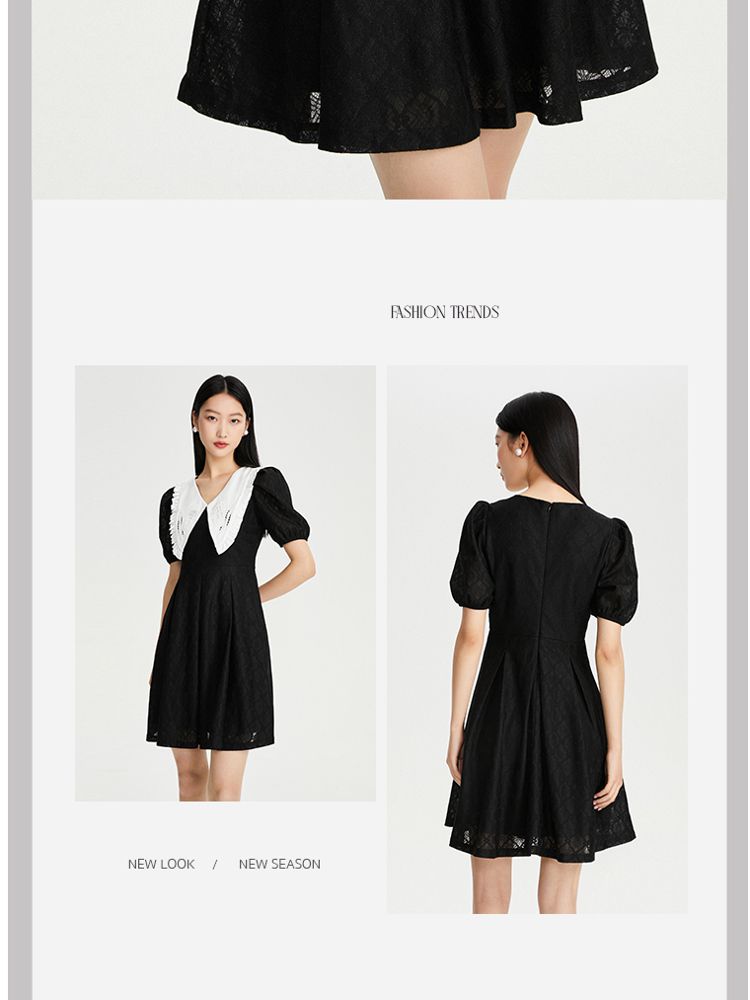 商品名称:【减龄娃娃领】春夏专柜款优雅甜美泡泡袖蕾丝五分袖连衣裙百搭 022353