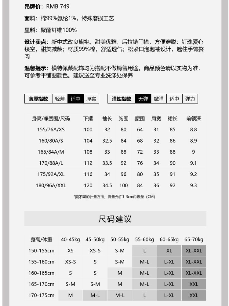 商品名称:【新中式改良旗袍】春夏专柜款夏爱心镂空钉珠盘扣连衣裙百搭时尚 949201