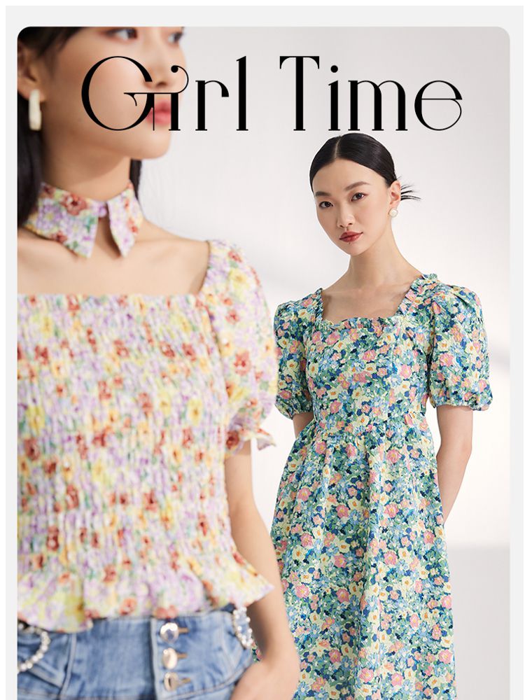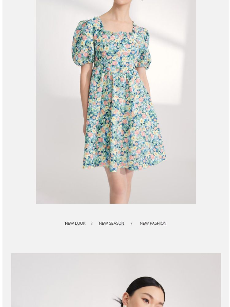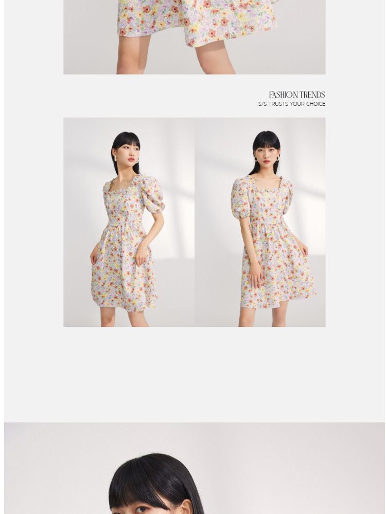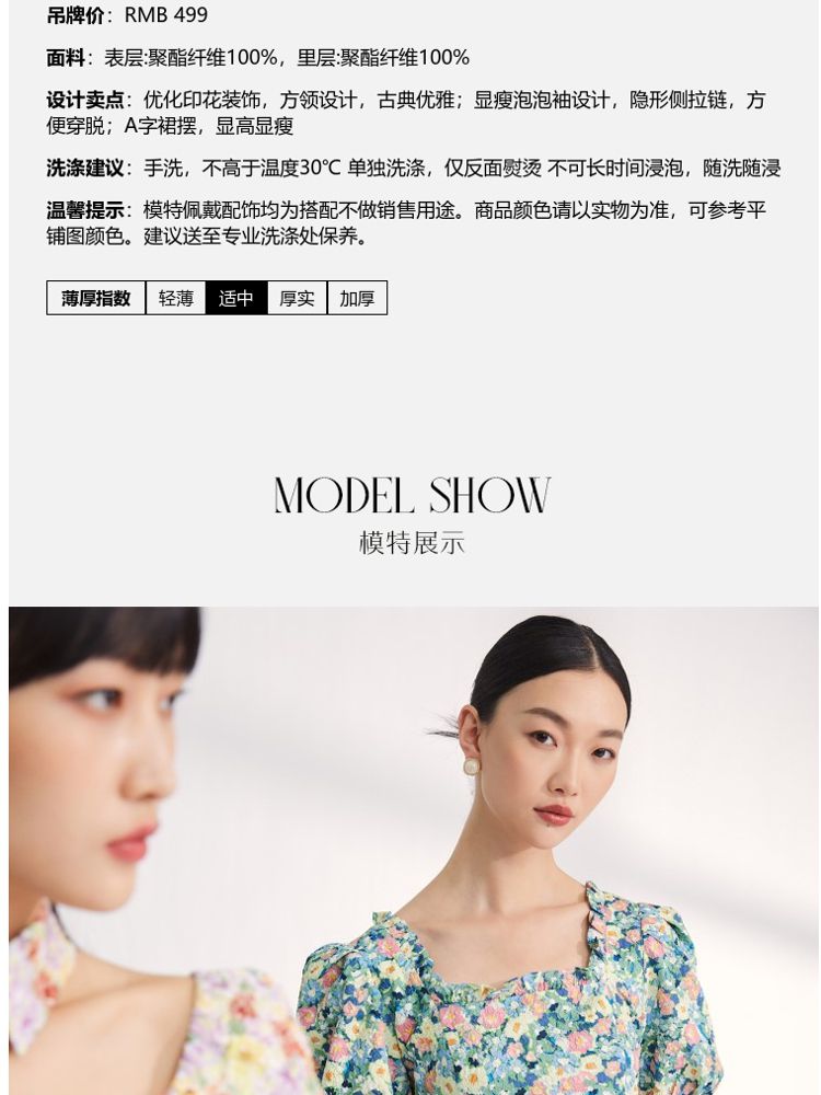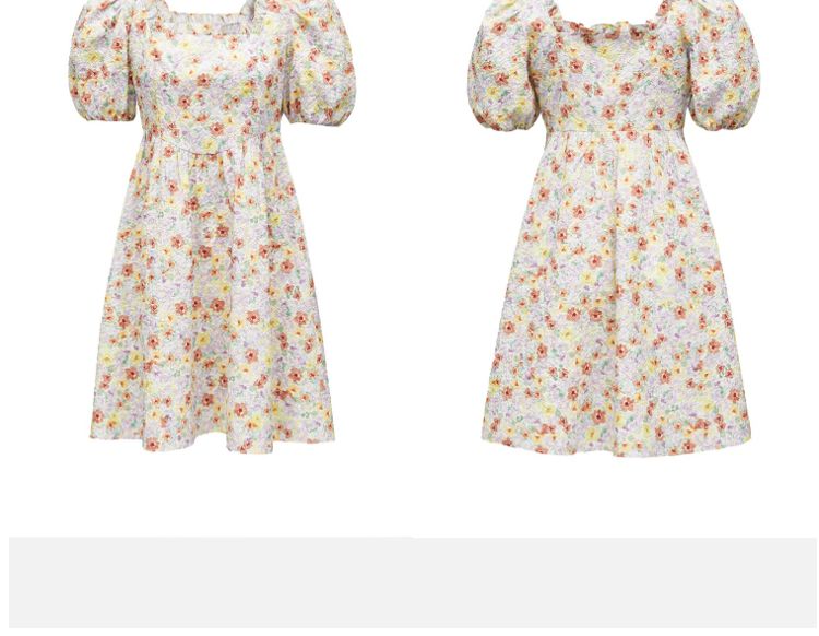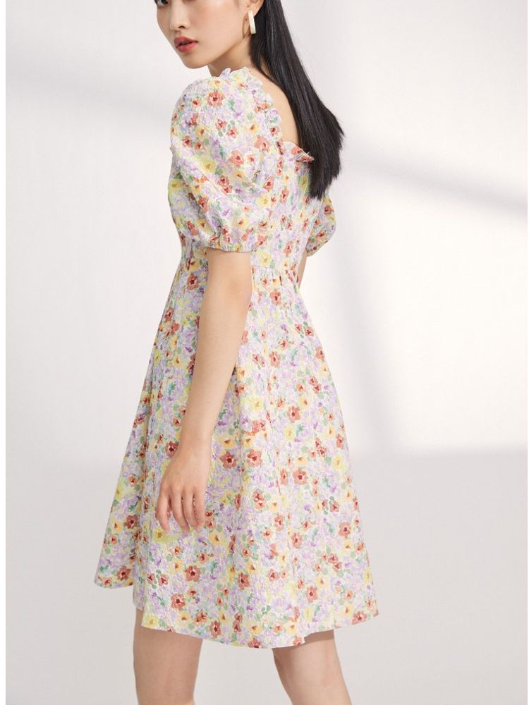 商品名称:【油画碎花】方领泡泡袖修身连衣裙 874577