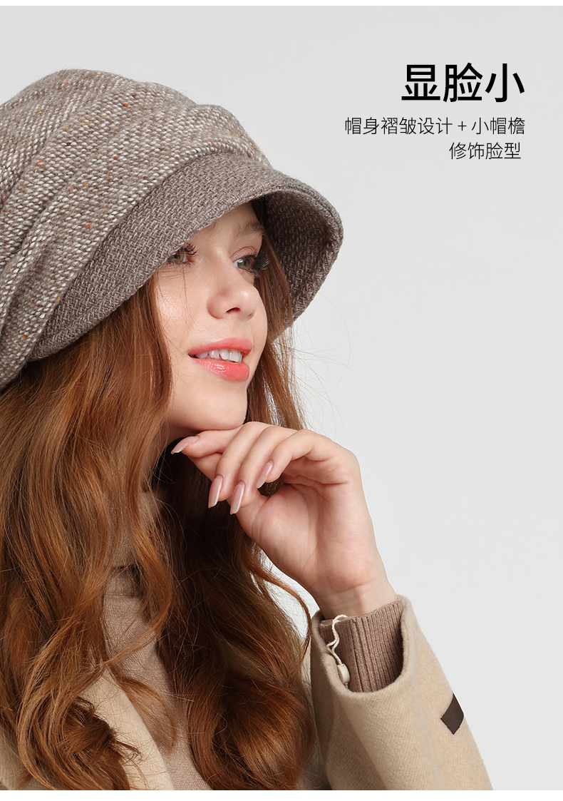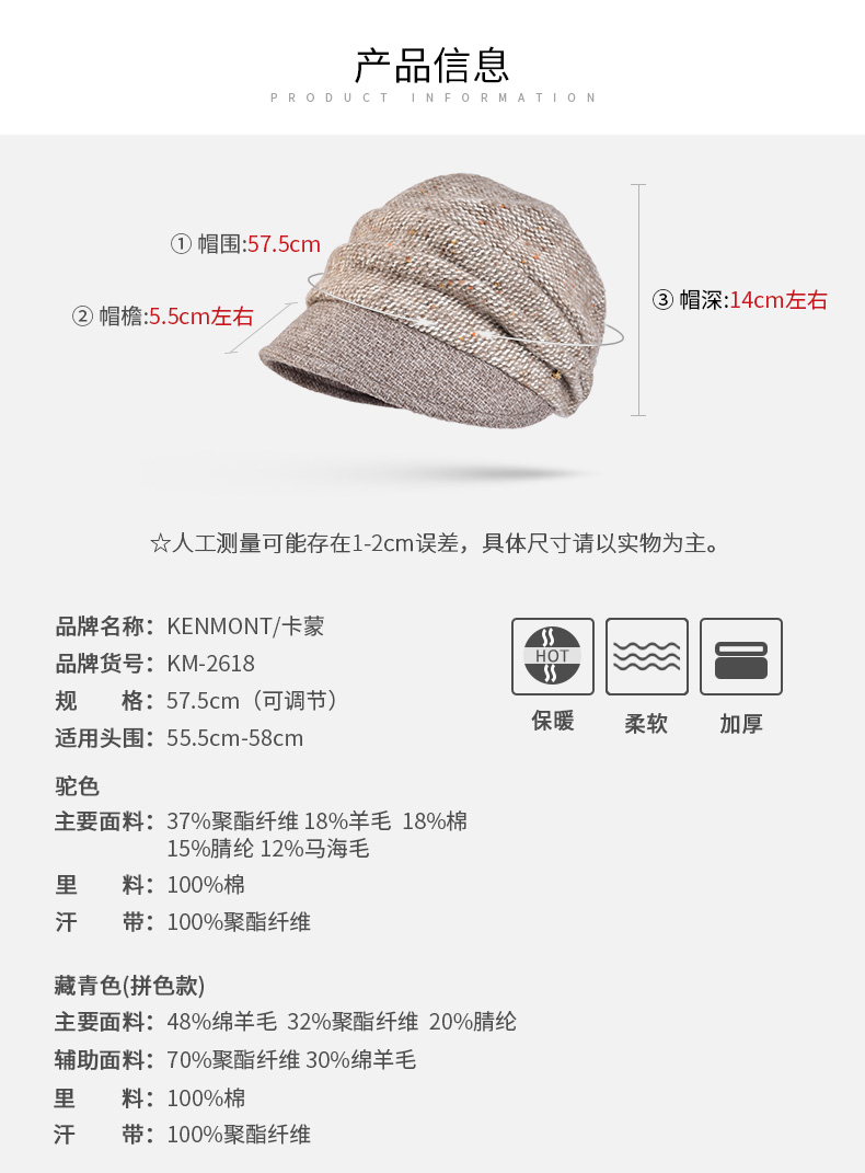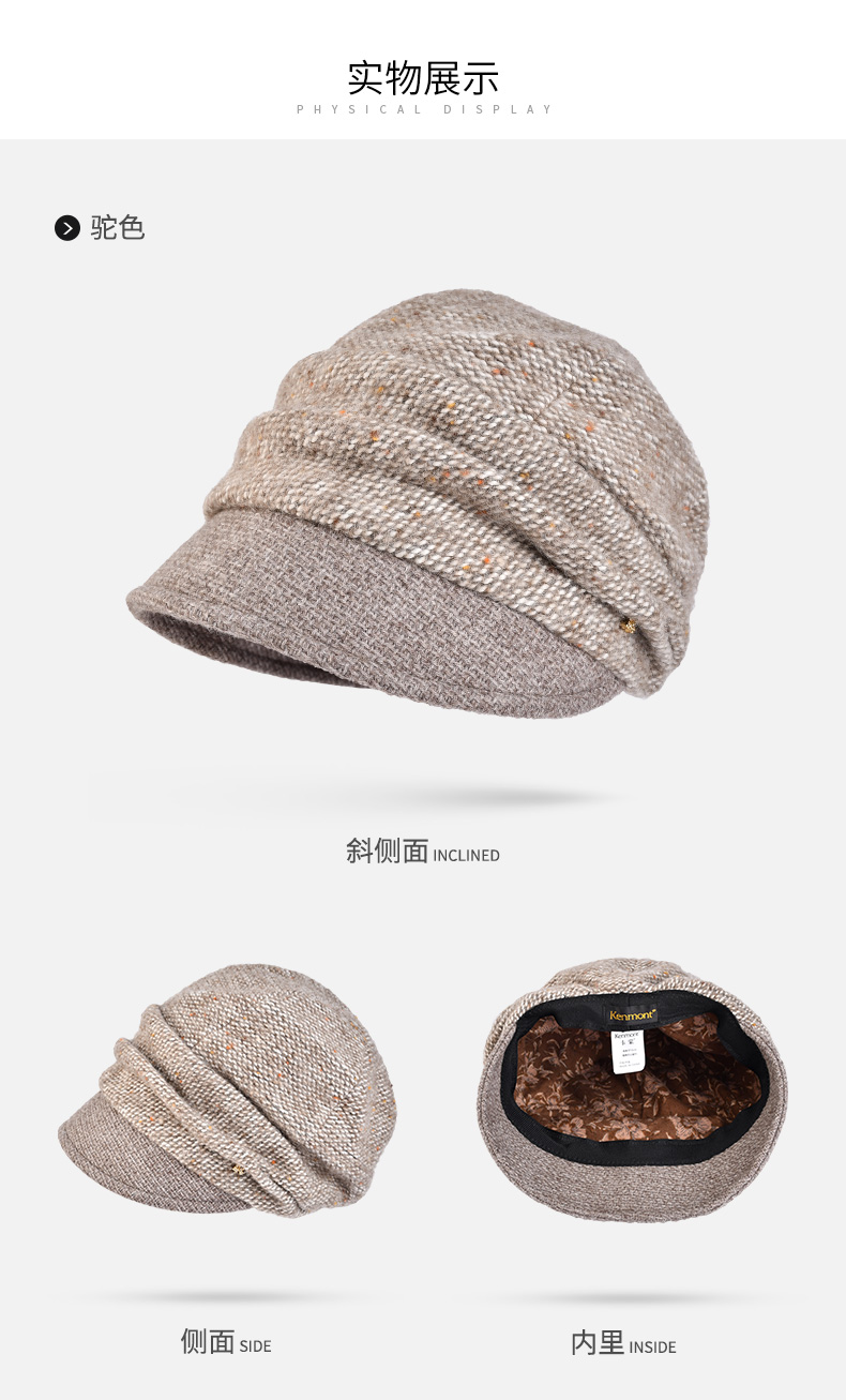 商品名称:卡蒙帽子女冬天韩版英伦潮人鸭舌帽檐毛绒保暖时尚百搭堆堆蓓蕾帽