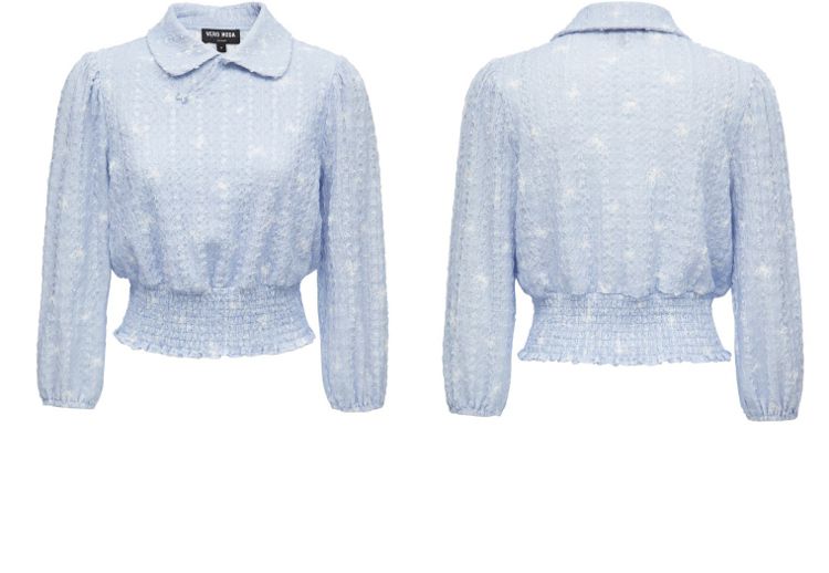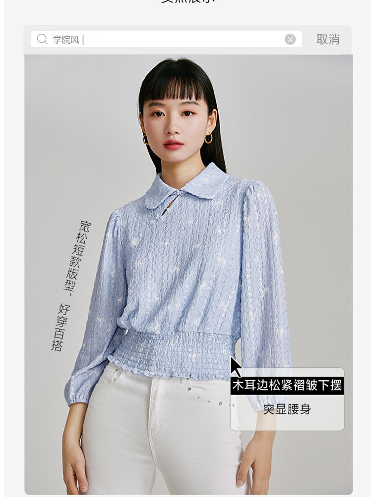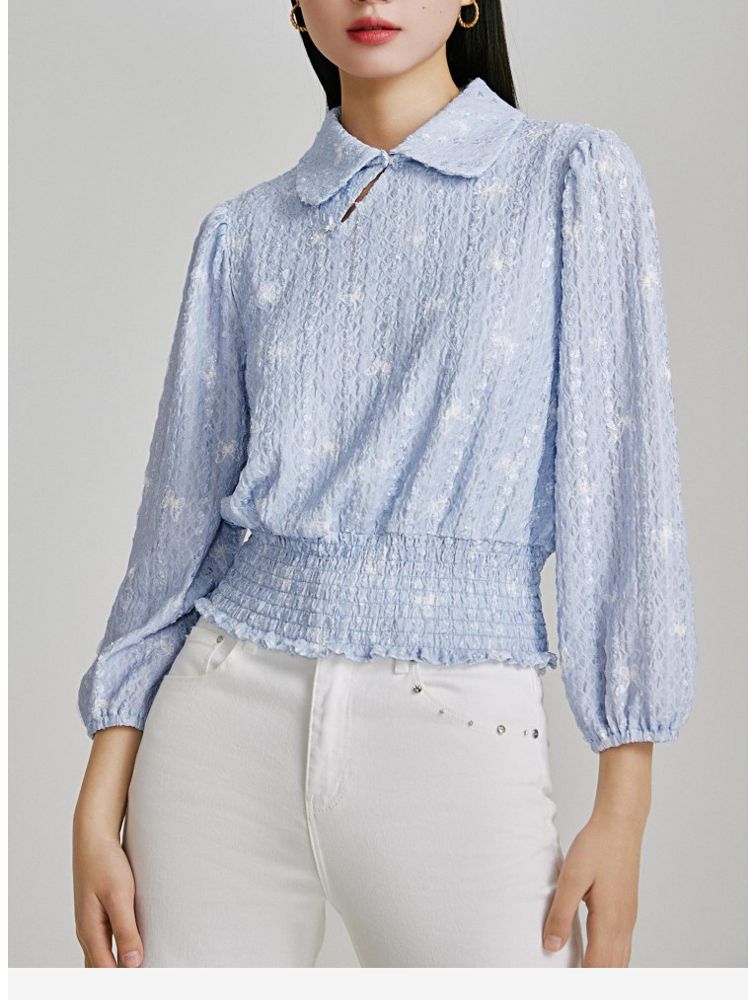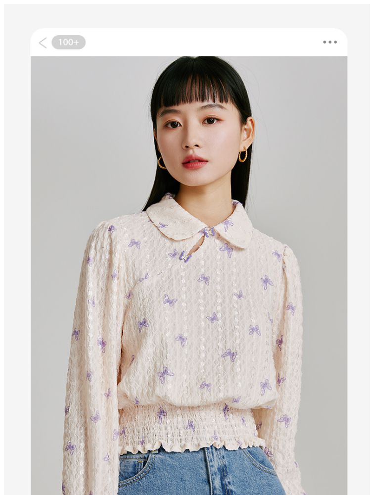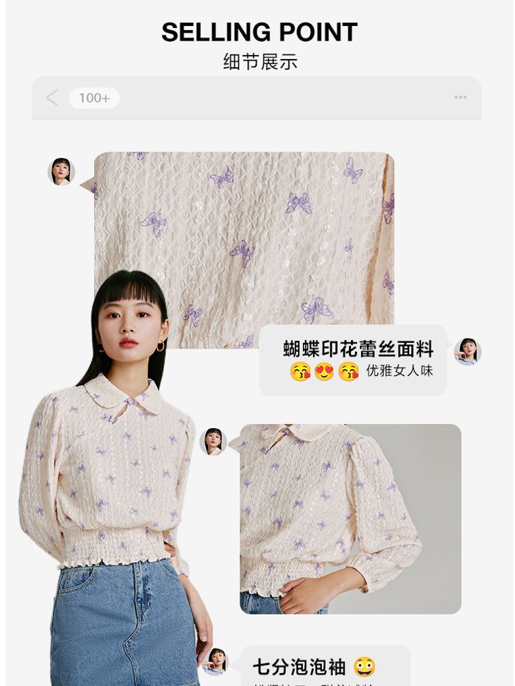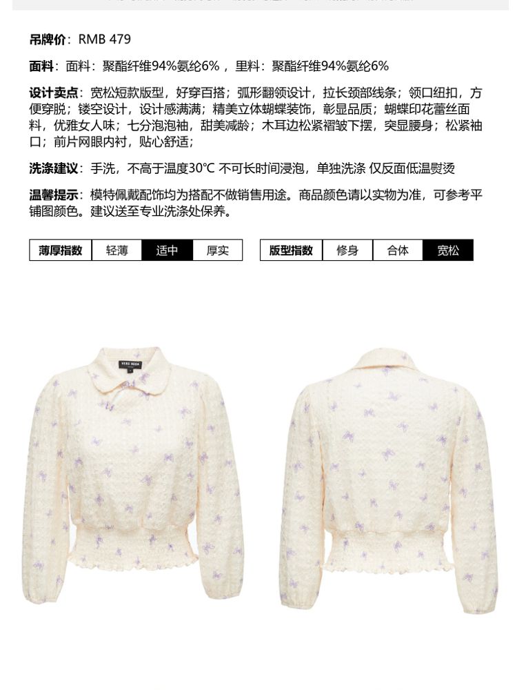 商品名称:【精美立体蝴蝶装饰】专柜同款七分泡泡袖气质翻领印花上衣 118481