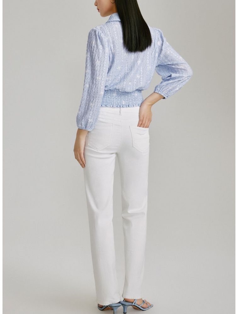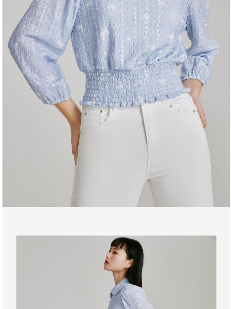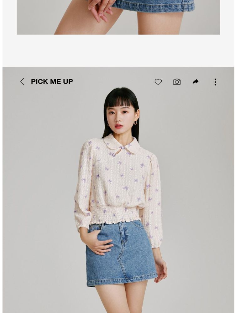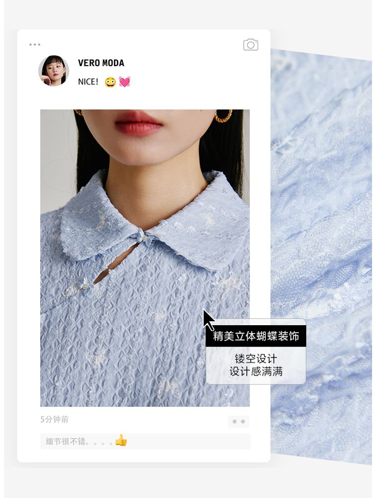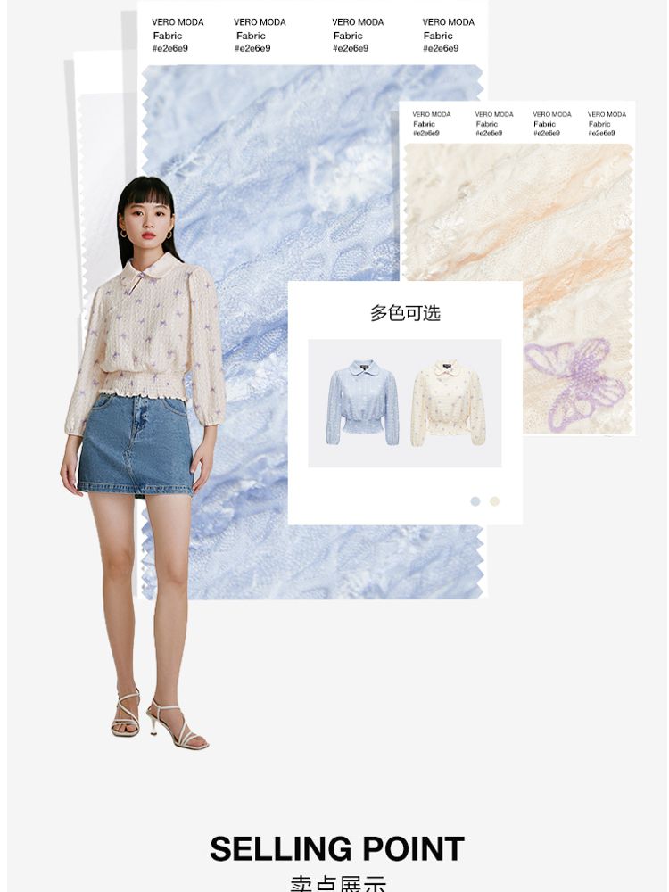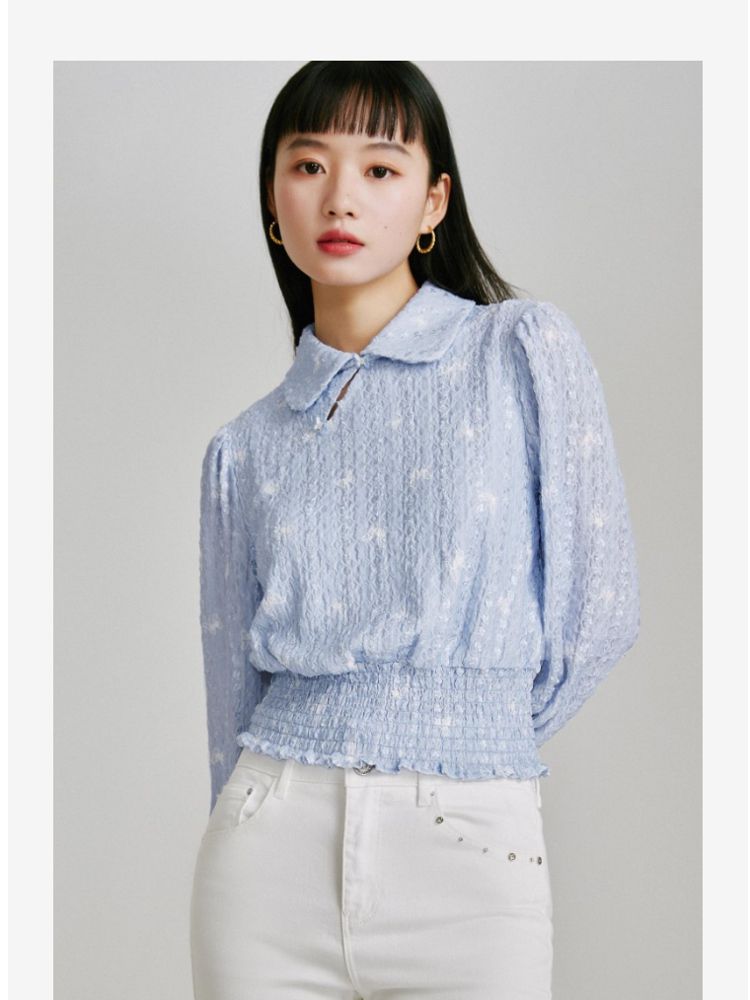 商品名称:【精美立体蝴蝶装饰】专柜同款七分泡泡袖气质翻领印花上衣 118481
