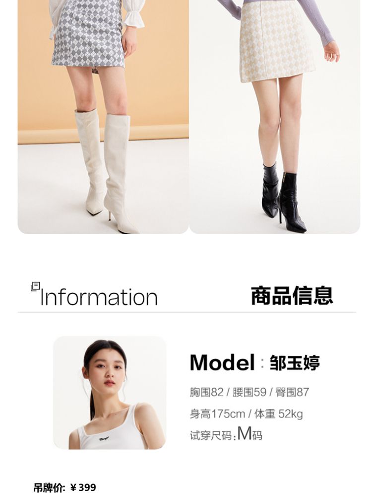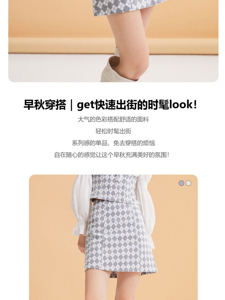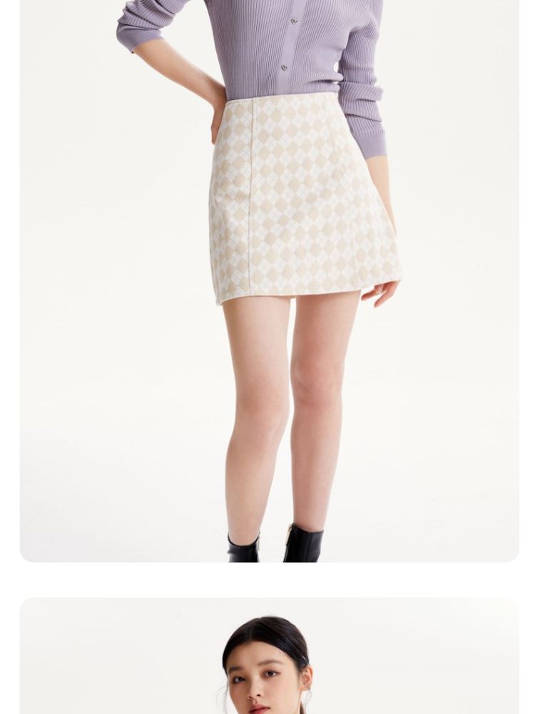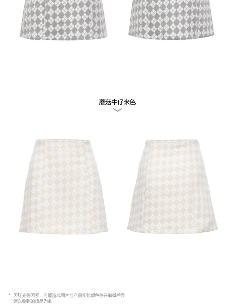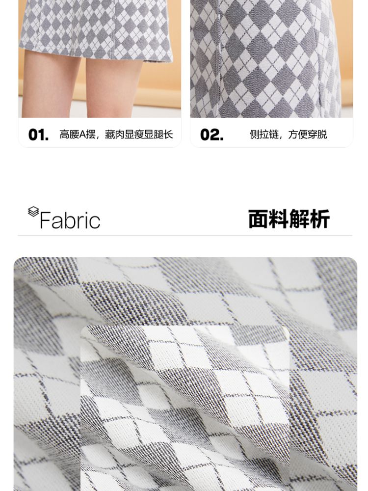 商品名称:【春秋专柜款】高腰A摆格纹印花减龄百搭学院风半身裙 939153