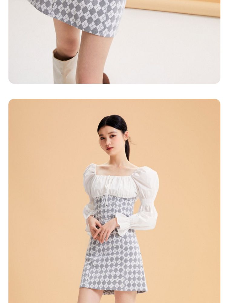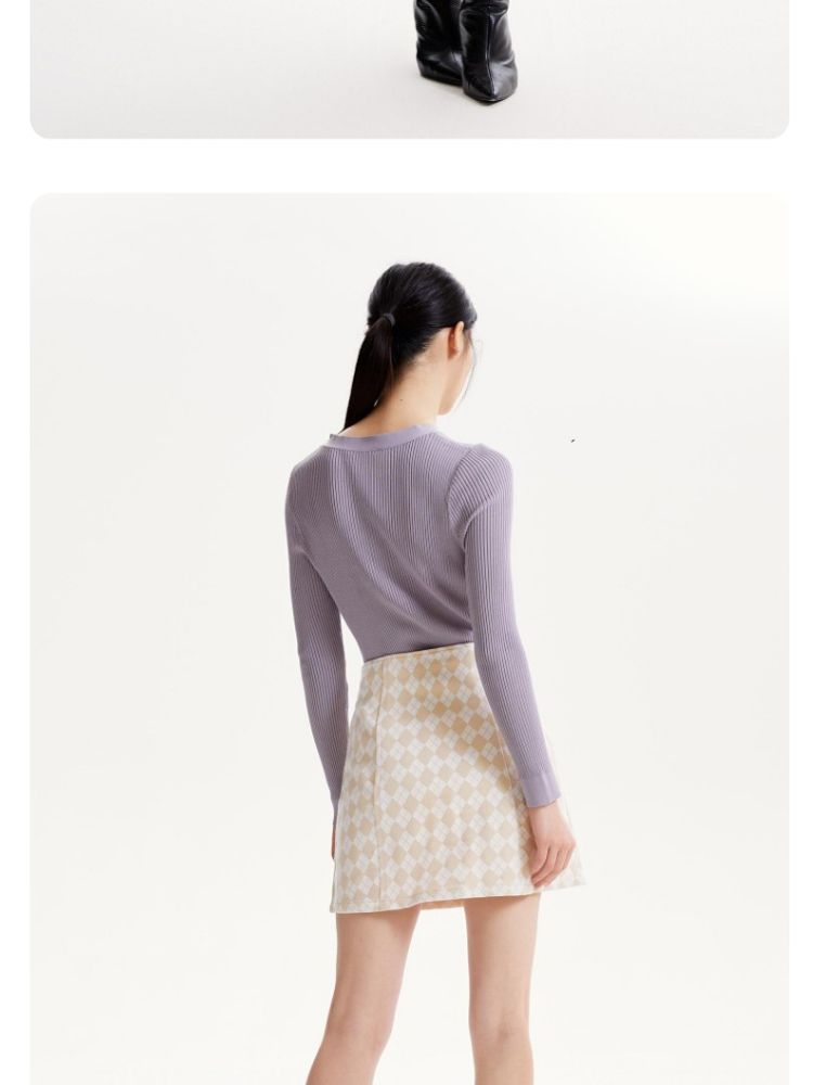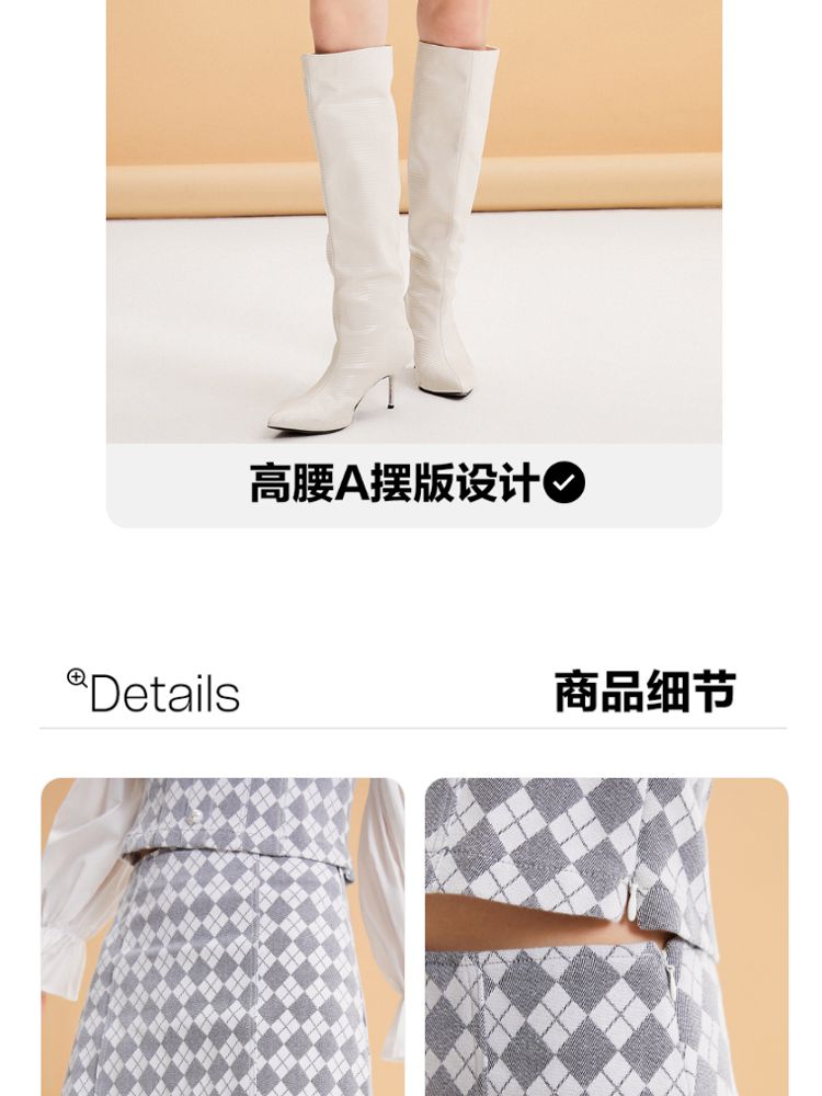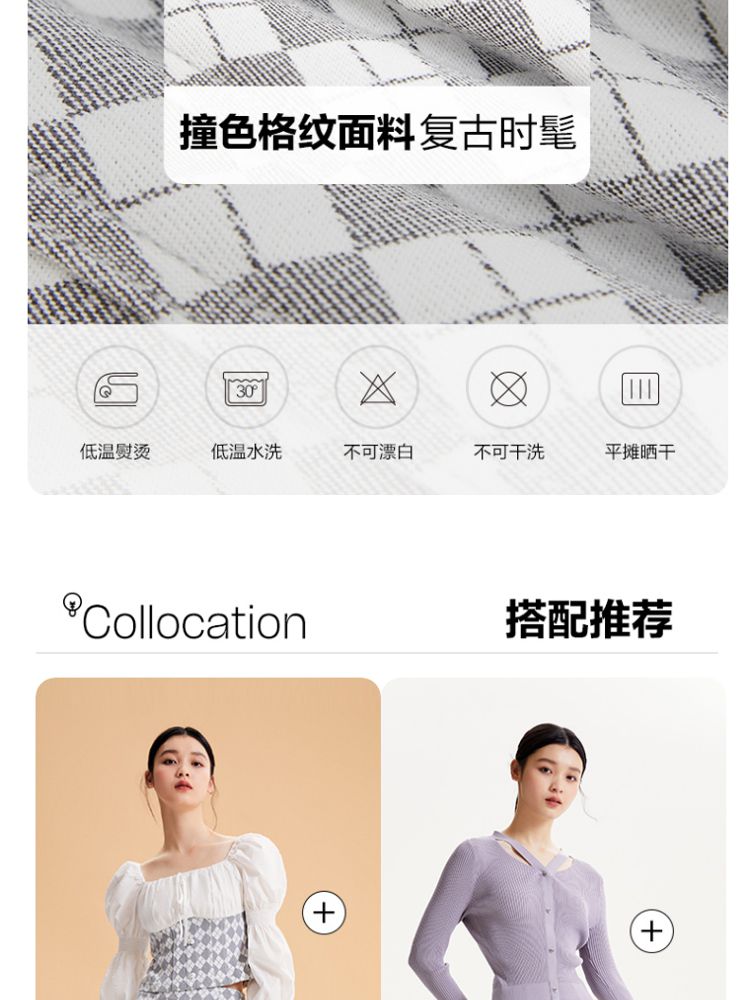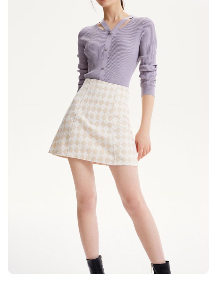 商品名称:【春秋专柜款】高腰A摆格纹印花减龄百搭学院风半身裙 939153