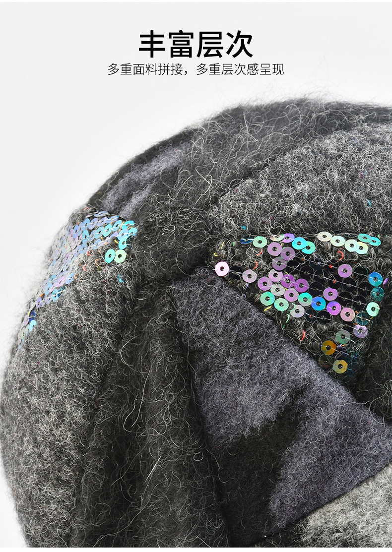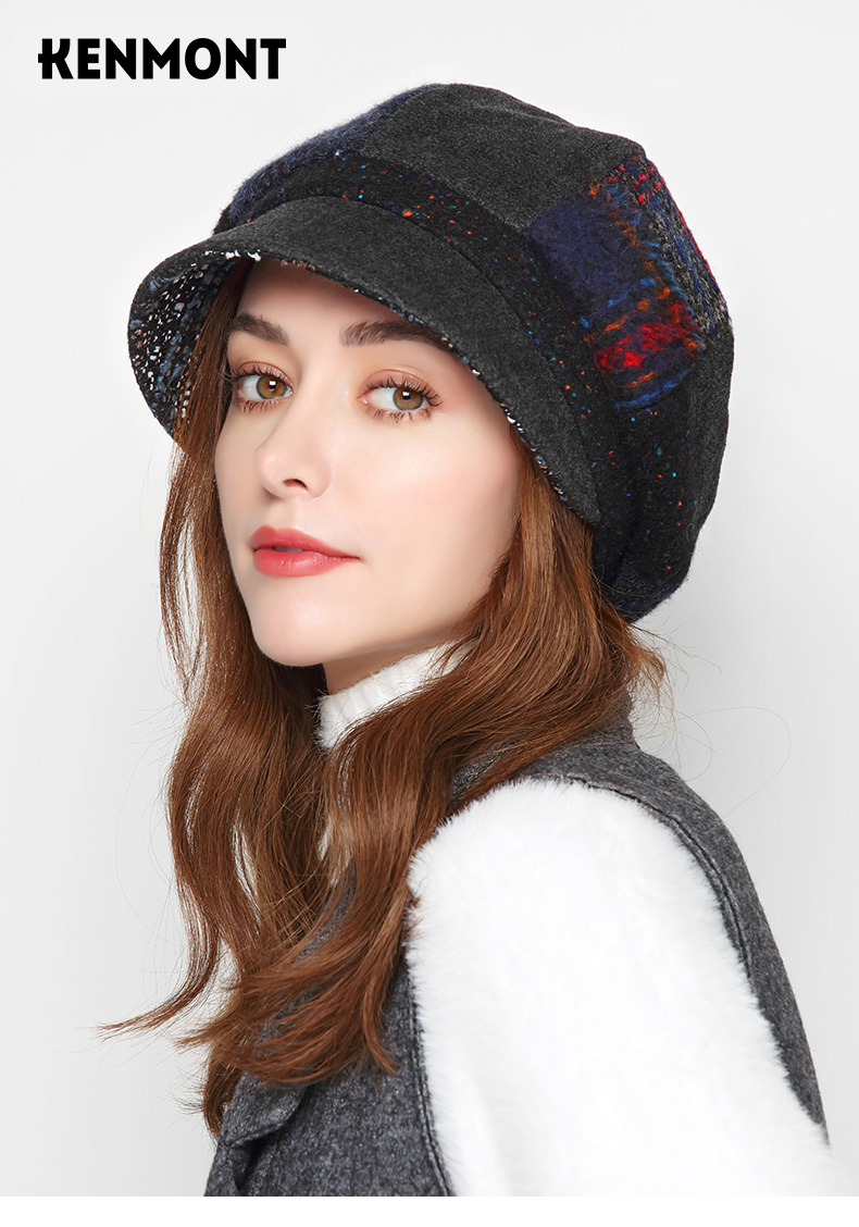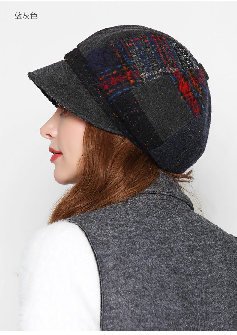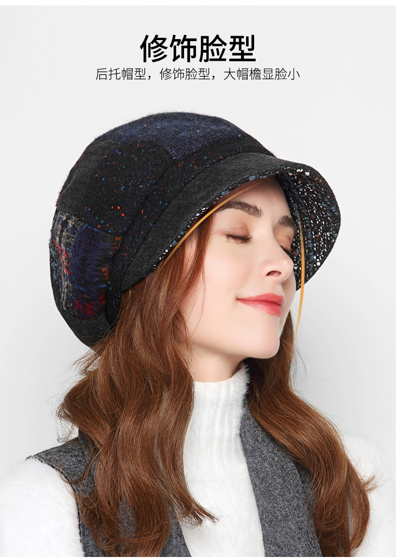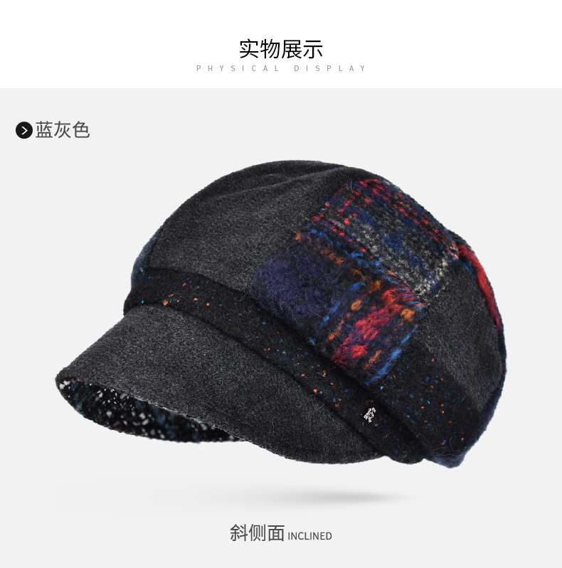商品名称:卡蒙额头抗风毛呢拼接格子八角帽女冬英伦秋季贝雷帽堆堆帽修脸型