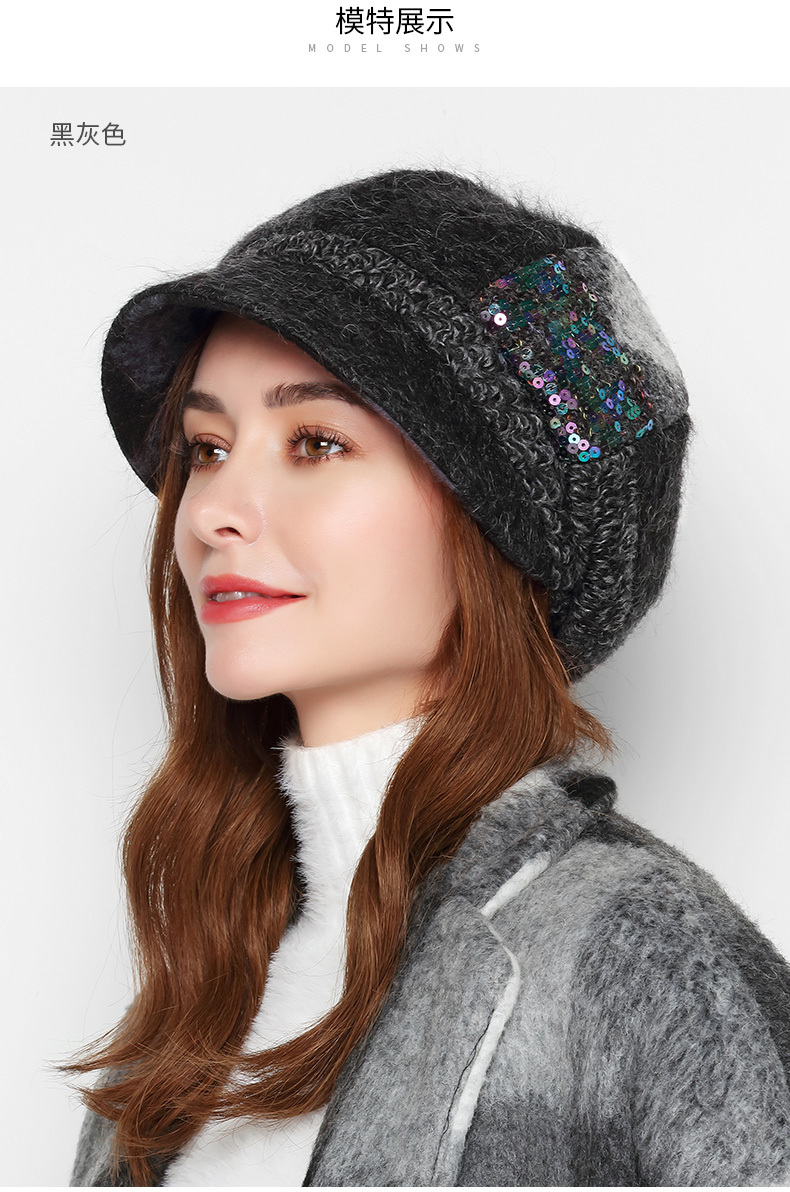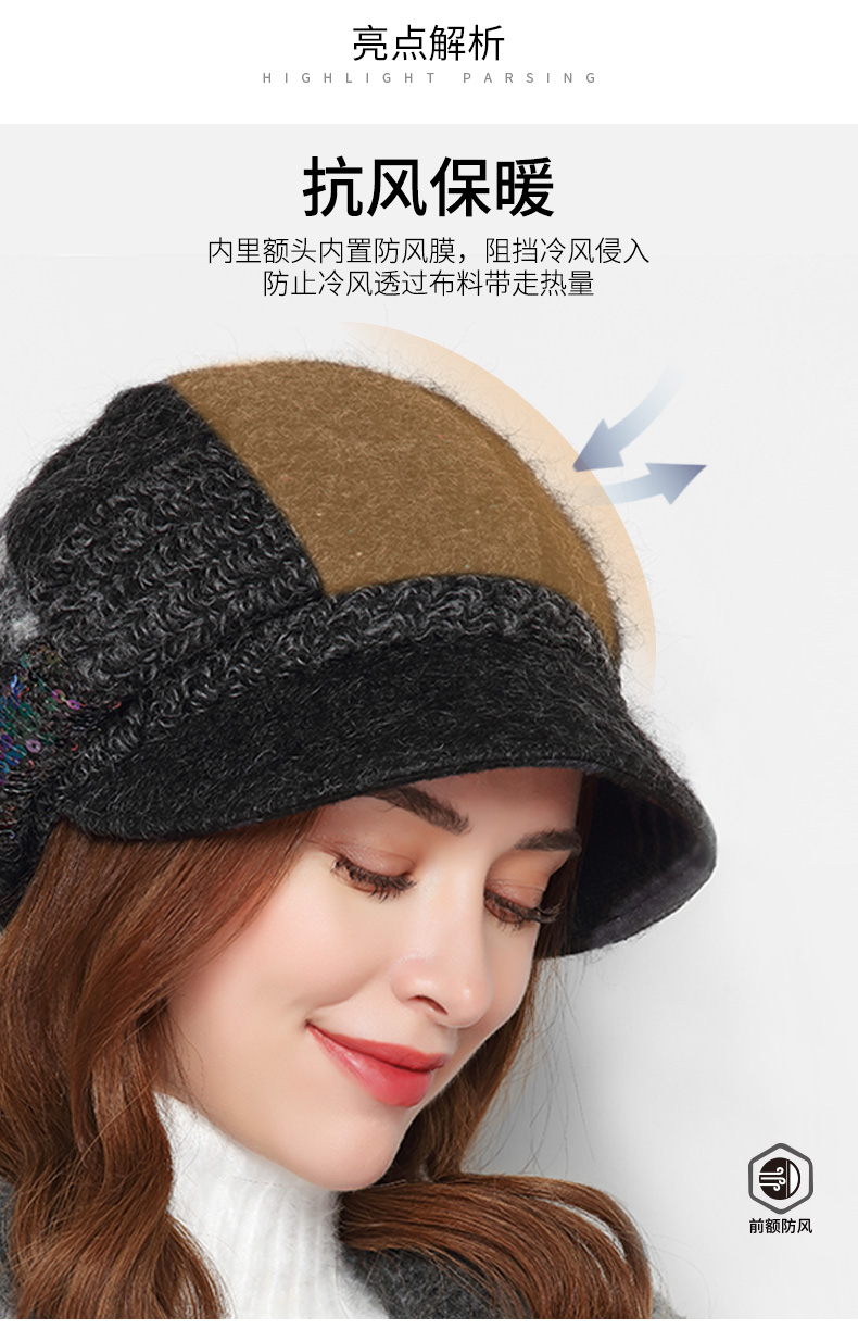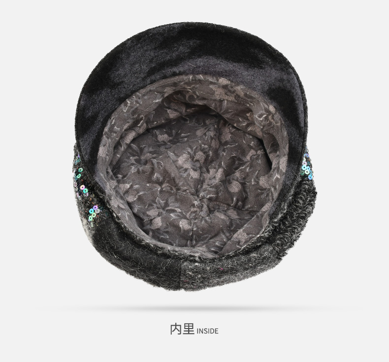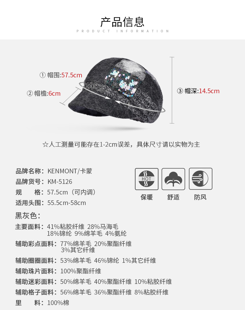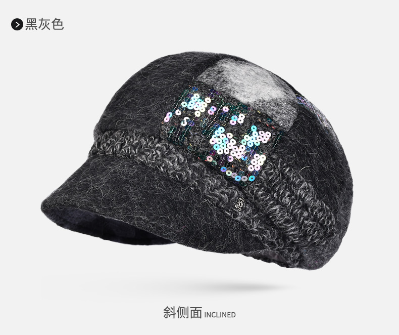 商品名称:卡蒙额头抗风毛呢拼接格子八角帽女冬英伦秋季贝雷帽堆堆帽修脸型