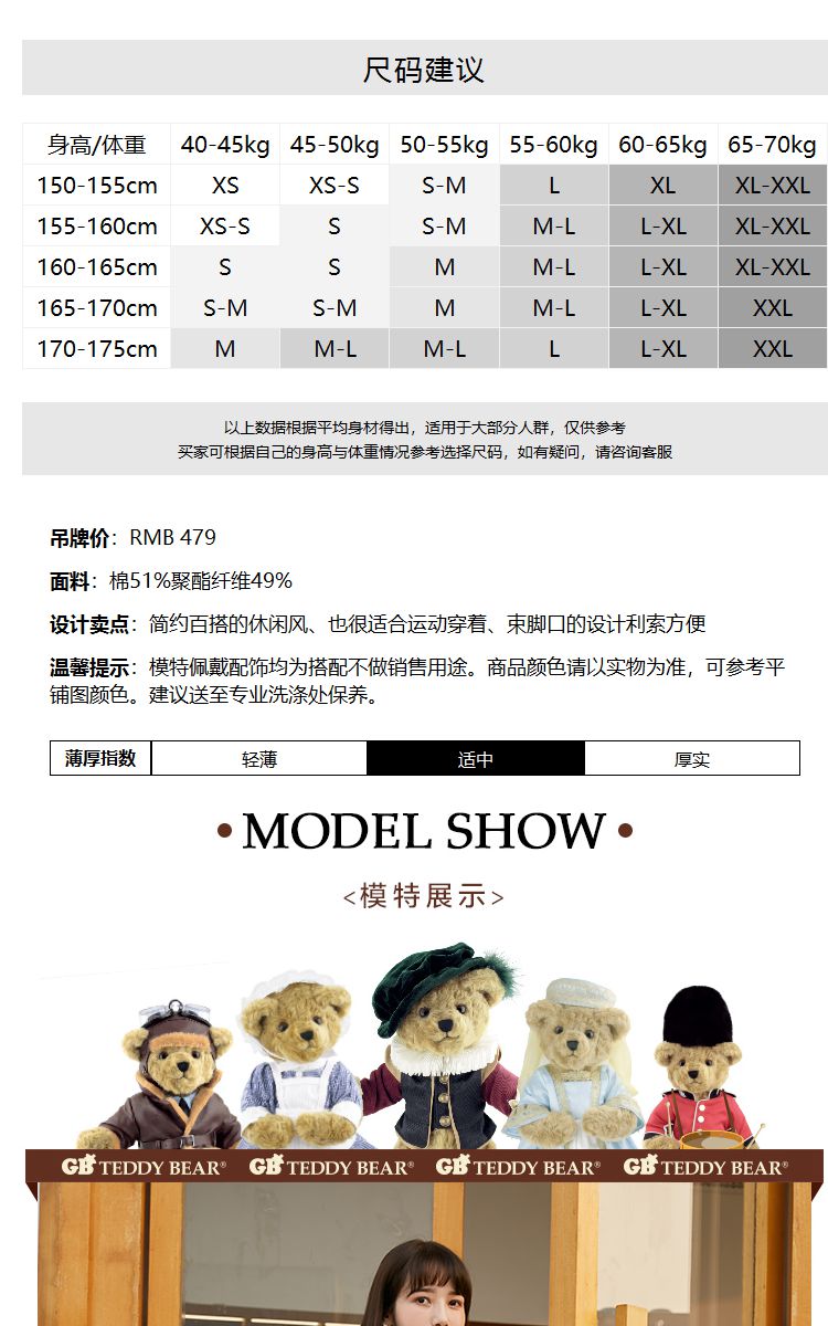 商品名称:【泰迪熊联名】春秋抽绳舒适休闲卫裤休闲裤 889105