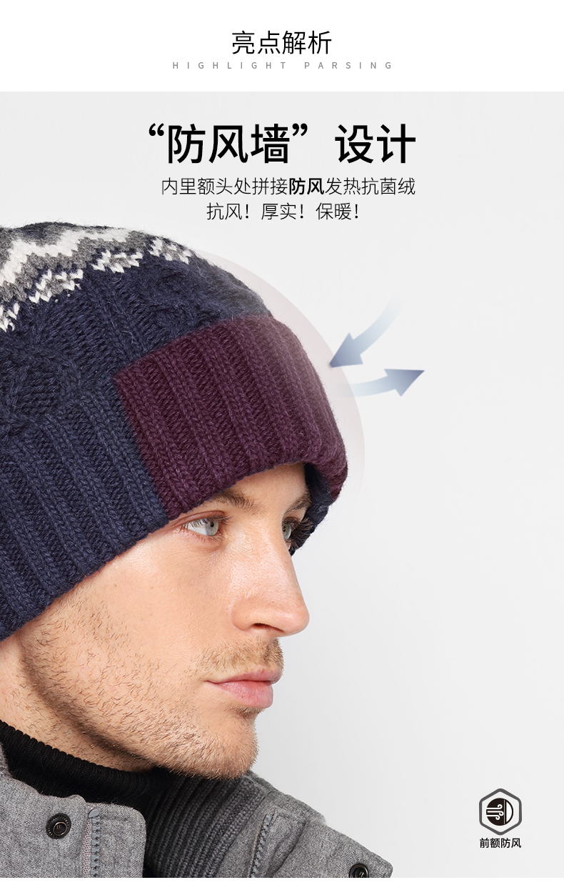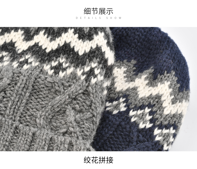 卡蒙发热韩版针织套头帽羊仔毛纱线保暖男帽独特时尚提花毛线帽