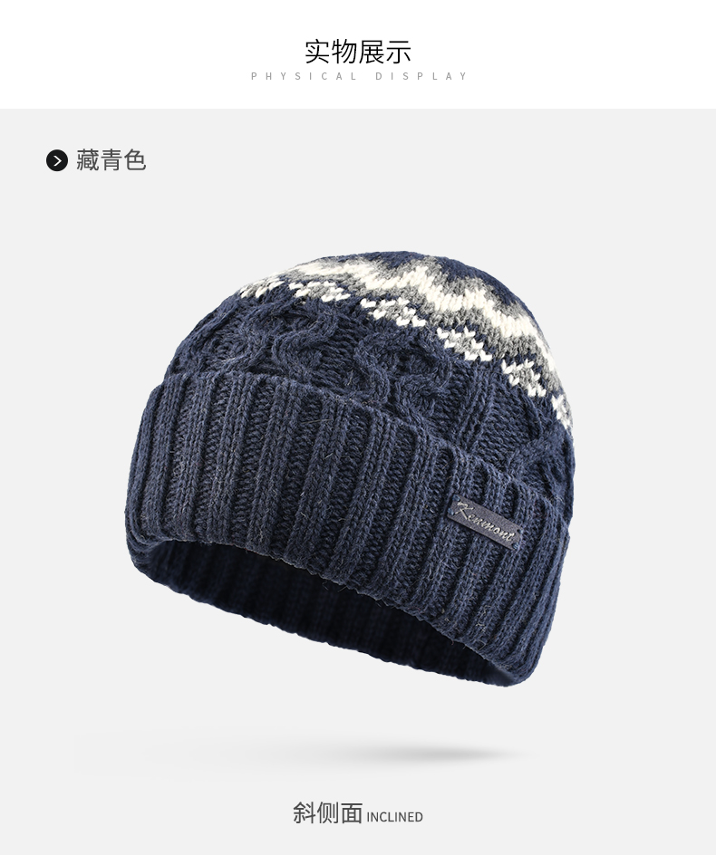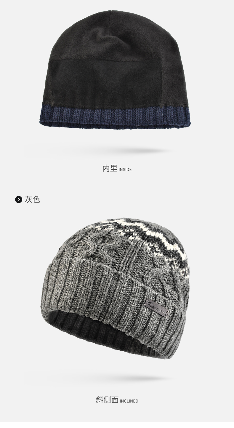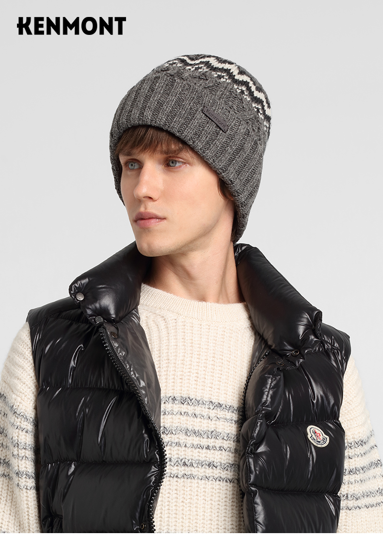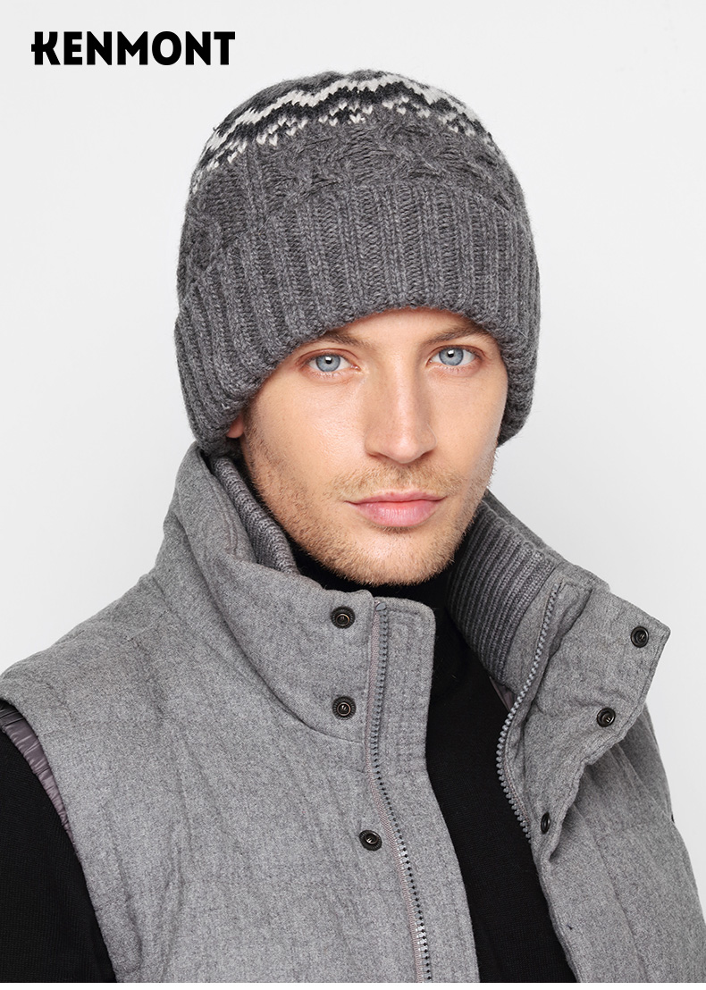 商品名称:卡蒙发热韩版针织套头帽羊仔毛纱线保暖男帽独特时尚提花毛线帽