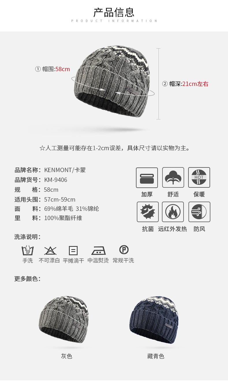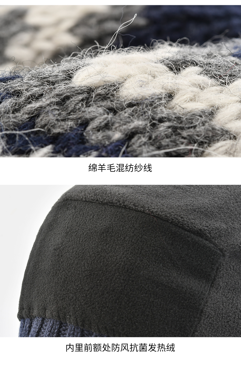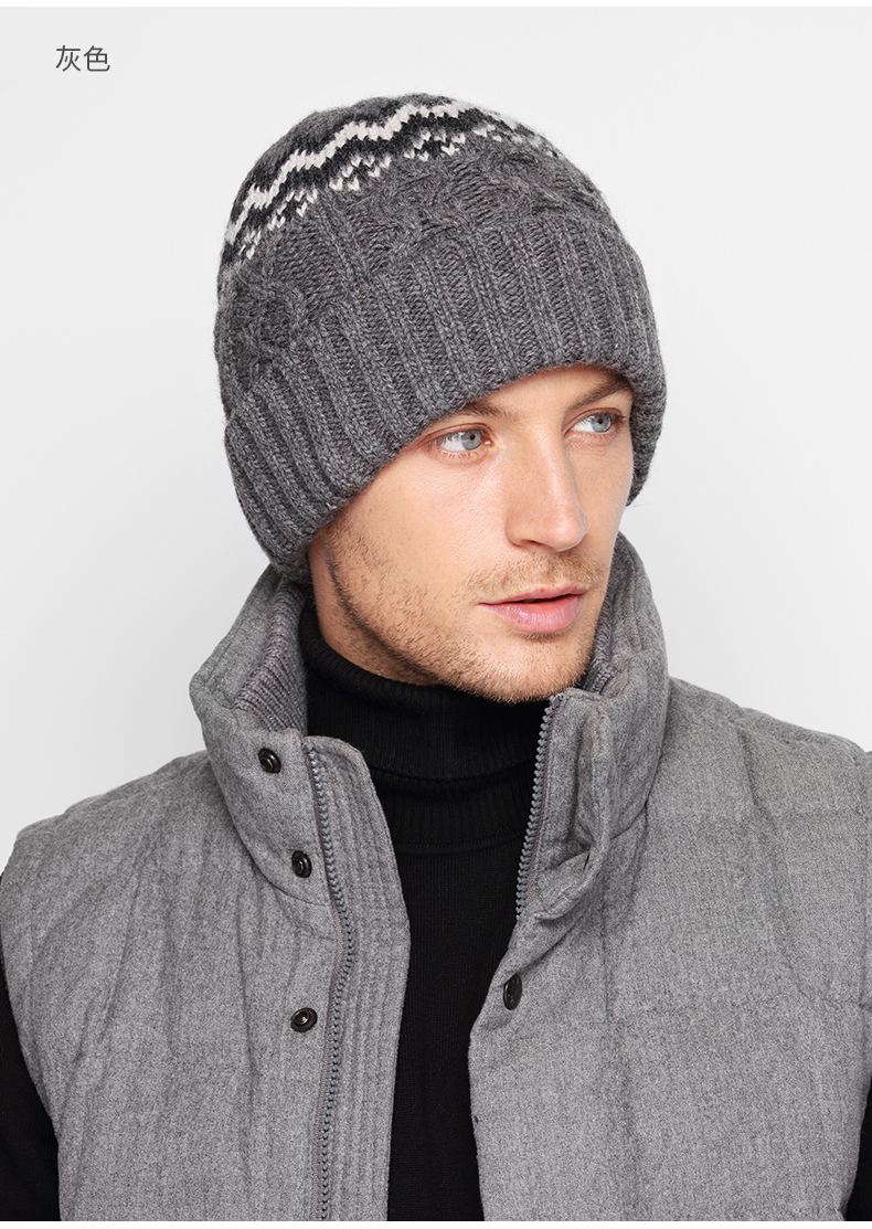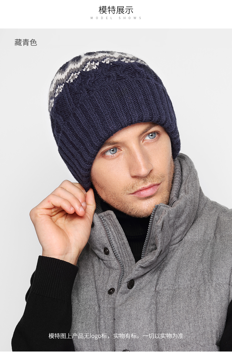 商品名称:卡蒙发热韩版针织套头帽羊仔毛纱线保暖男帽独特时尚提花毛线帽