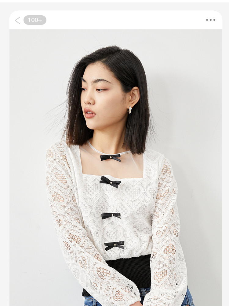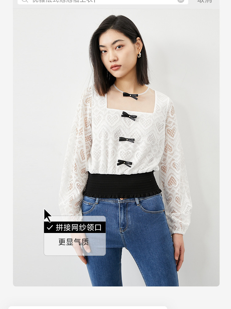 商品名称:【蕾丝优雅】春夏法式泡泡袖收腰专柜同款T恤上衣女气质百搭时尚 197521