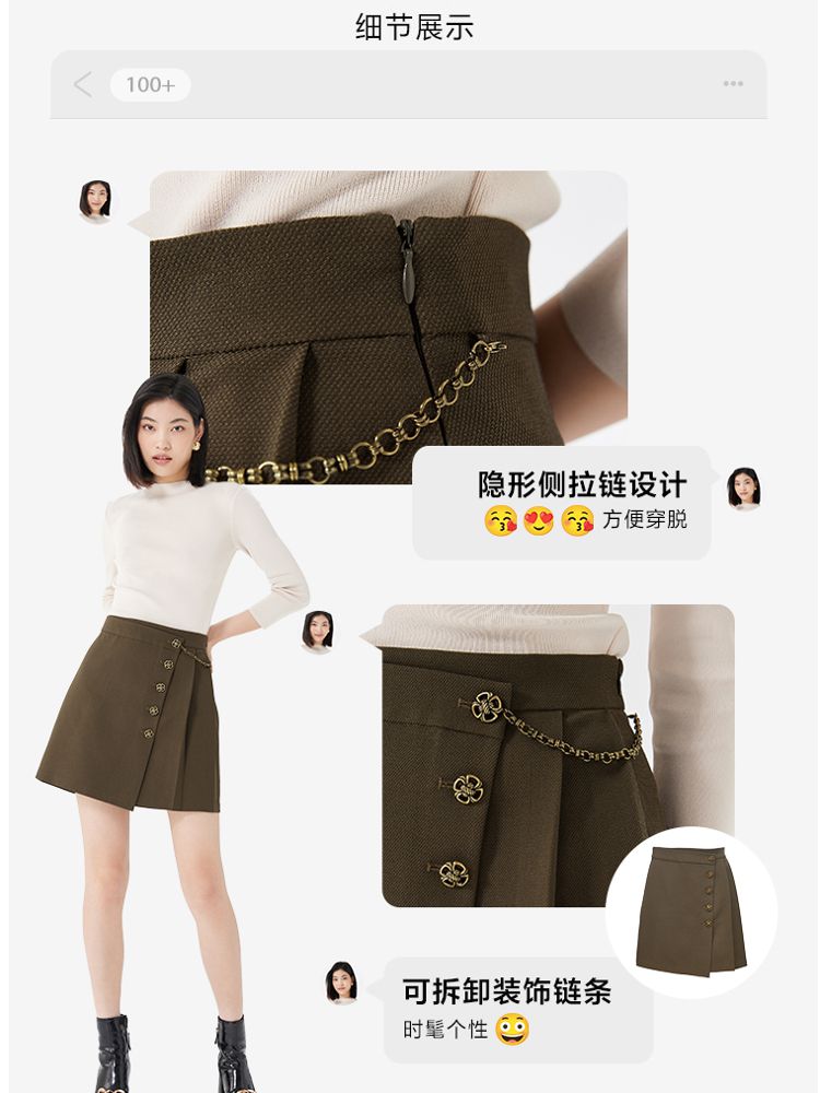 玖姿旗下安娜蔻系列小香风简约优雅中长款A字裙腰裙女装春季 249676