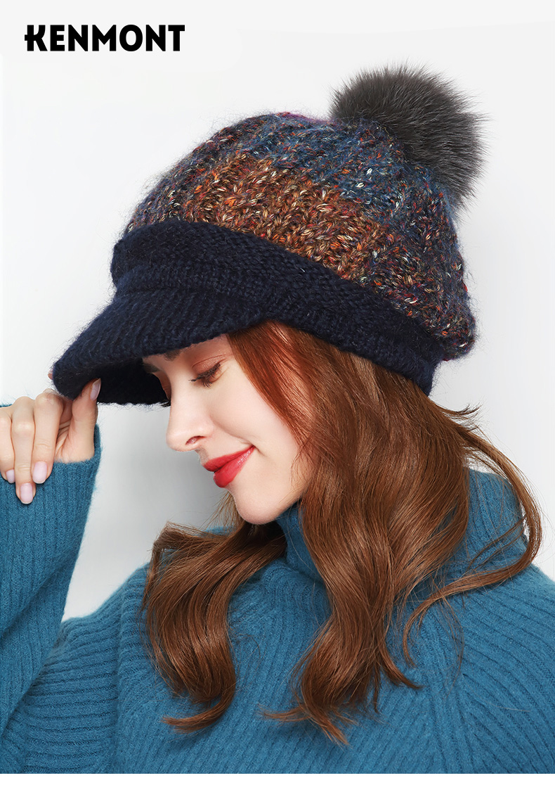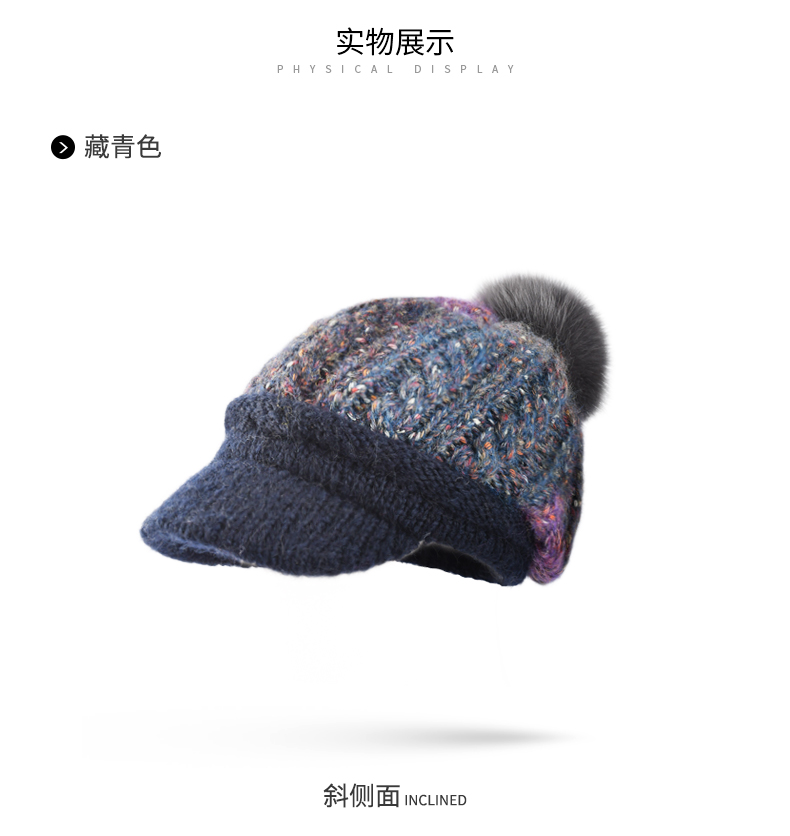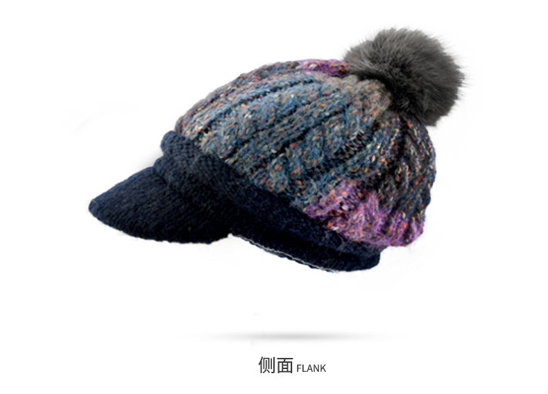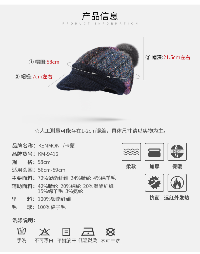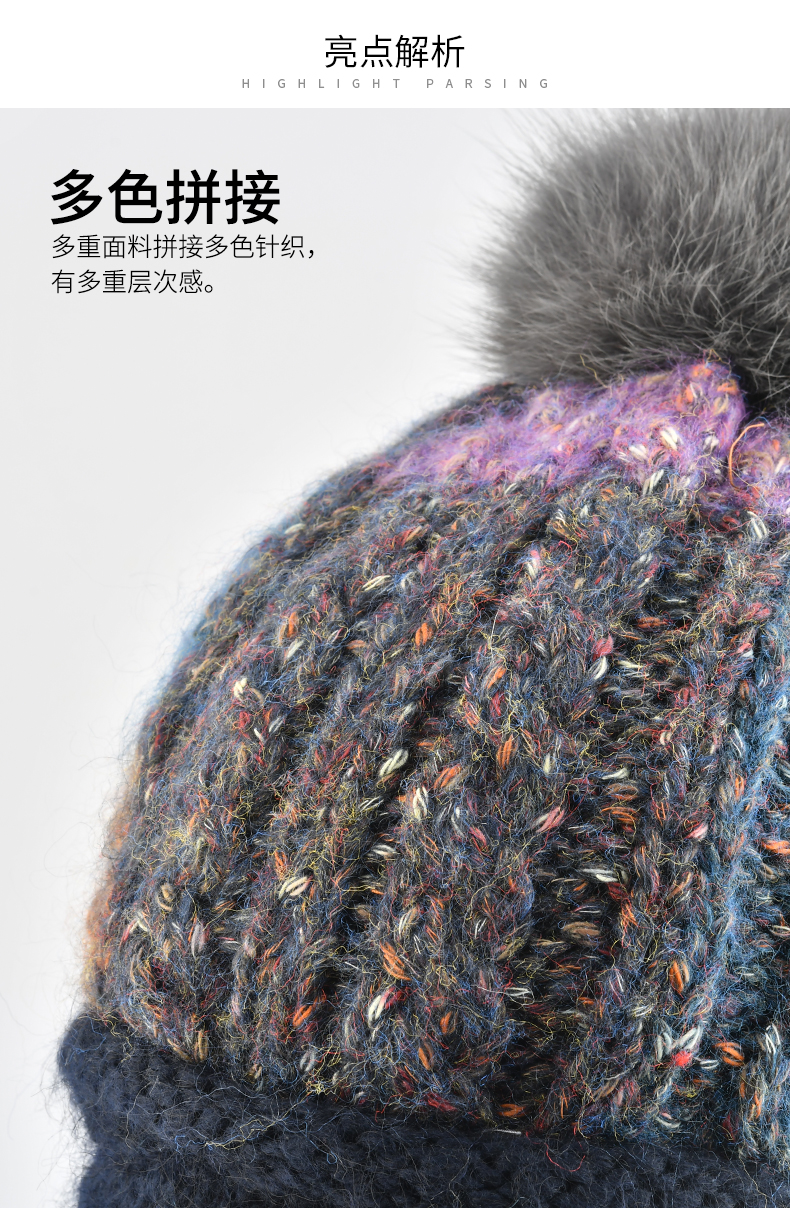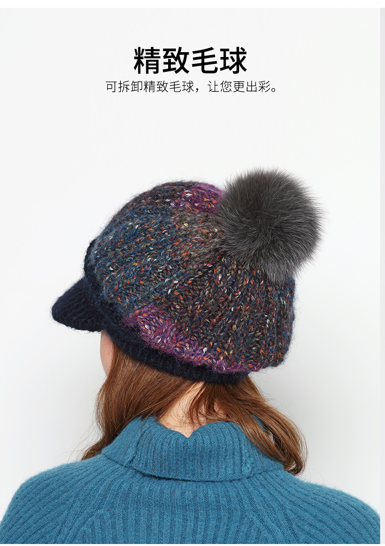 商品名称:卡蒙发热毛线帽贝雷帽子女冬天韩版针织帽百搭后托帽狐狸毛球