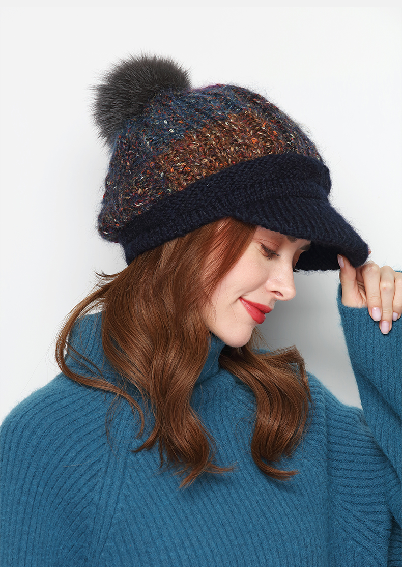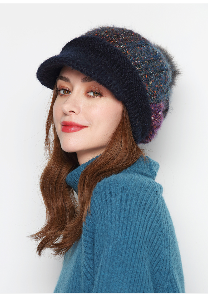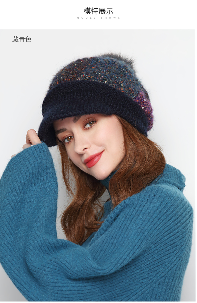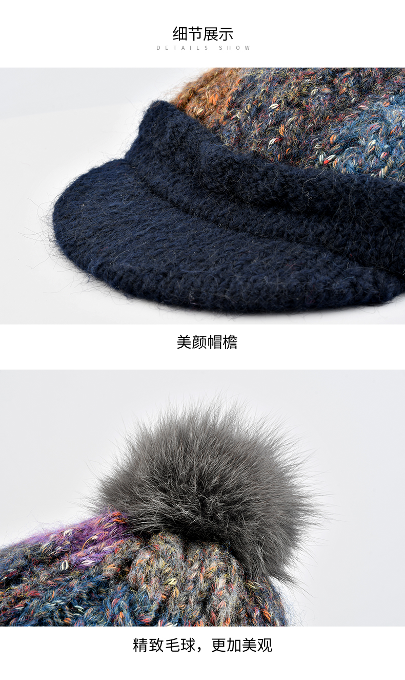 商品名称:卡蒙发热毛线帽贝雷帽子女冬天韩版针织帽百搭后托帽狐狸毛球
