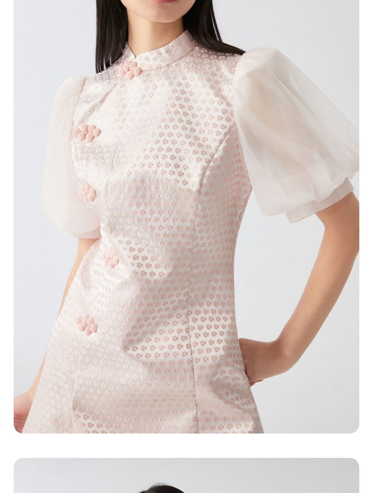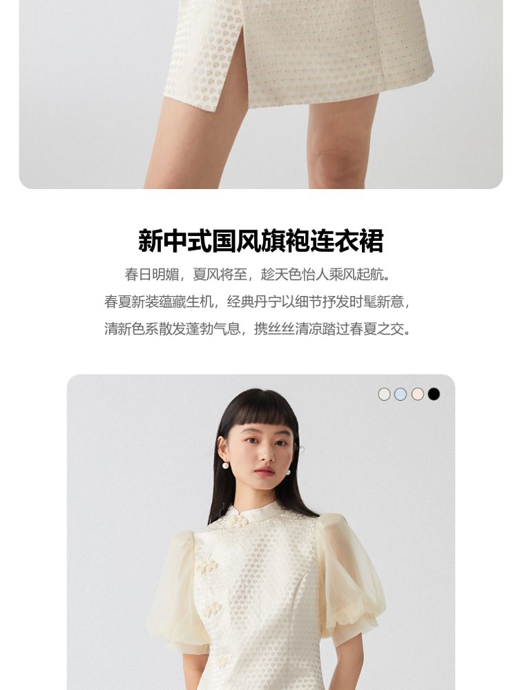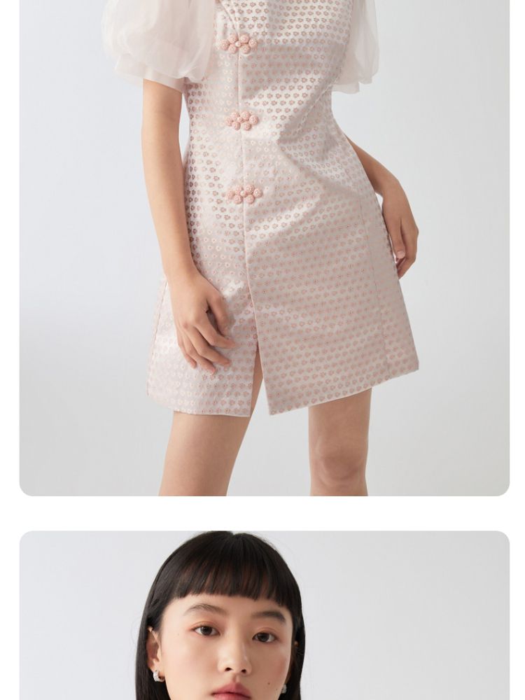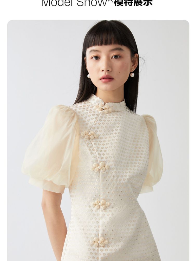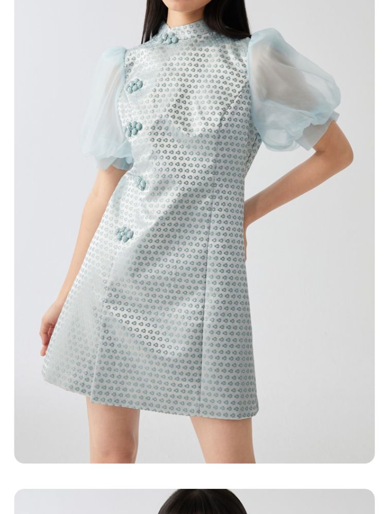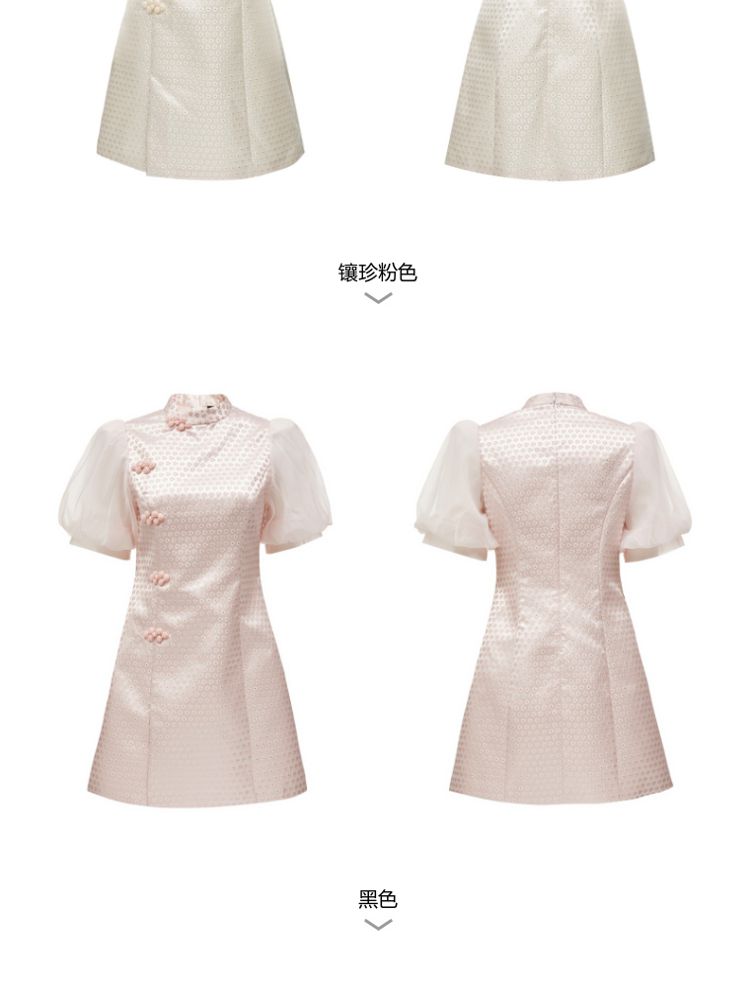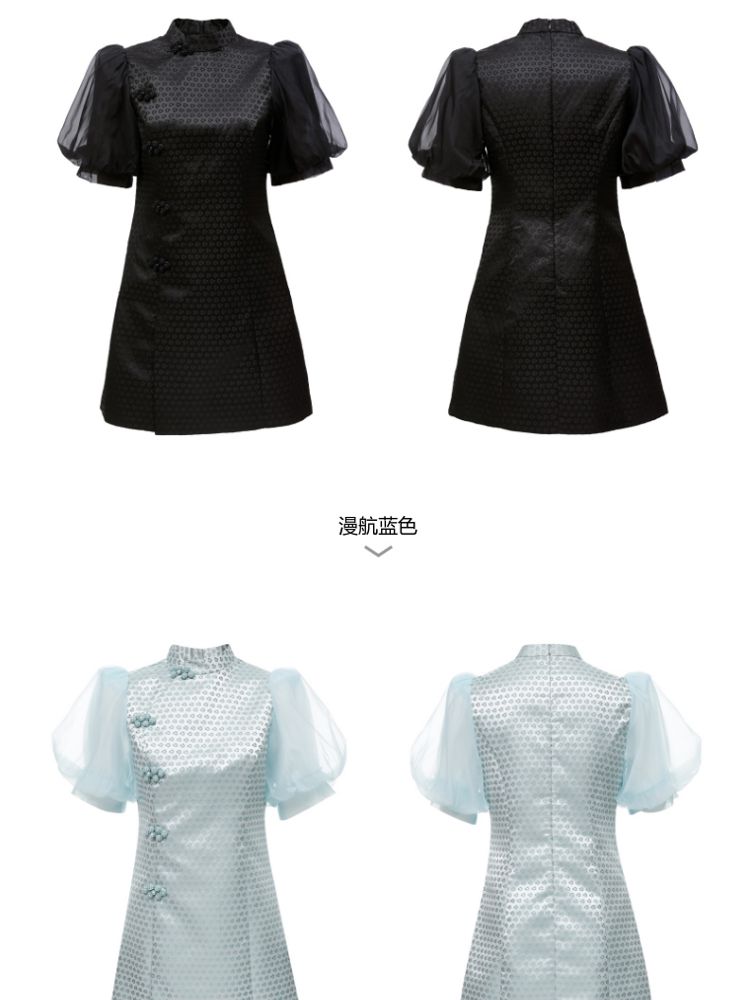 商品名称:【新中式国风盘扣旗袍】专柜减龄泡泡袖连衣裙 971089
